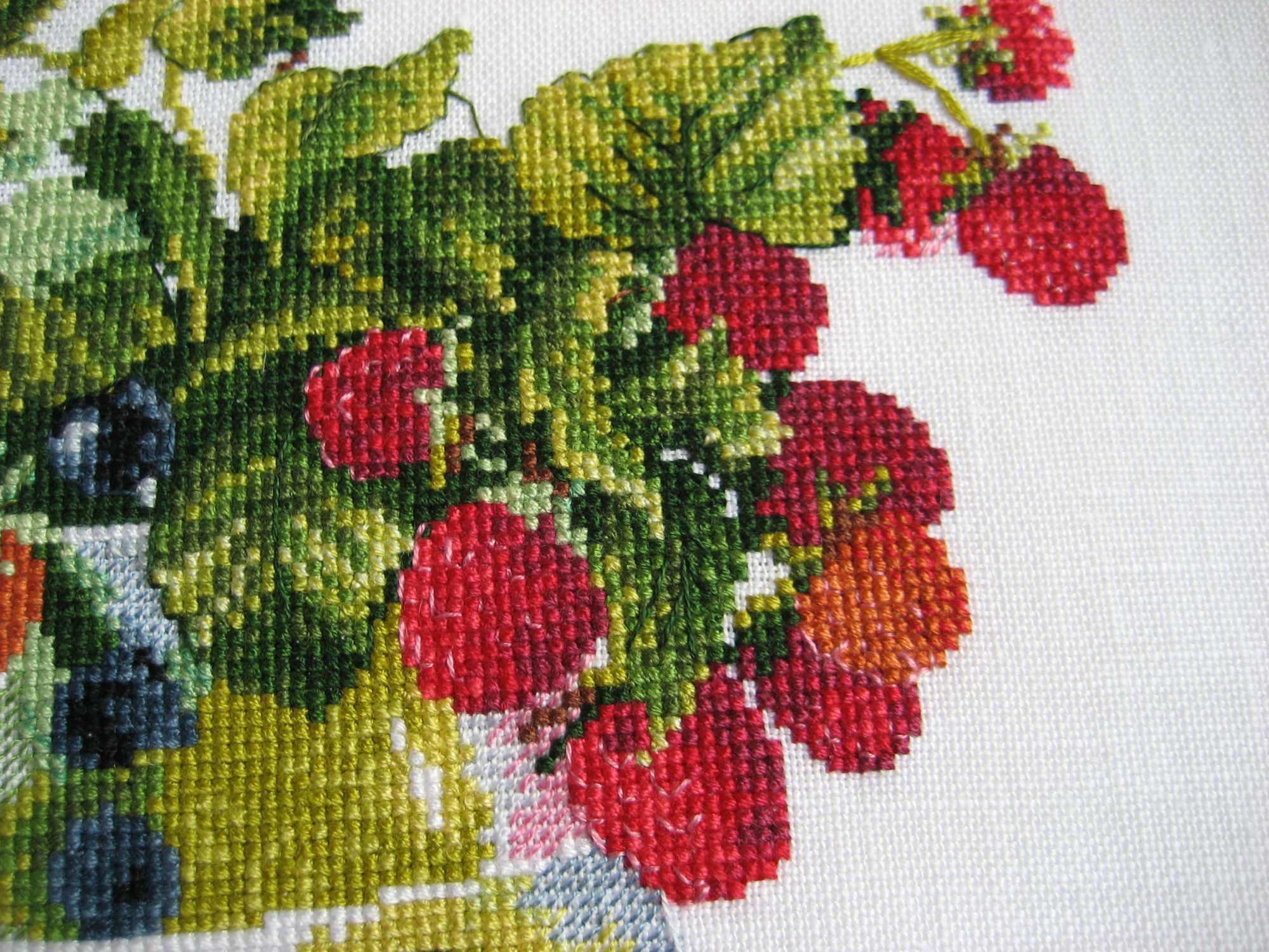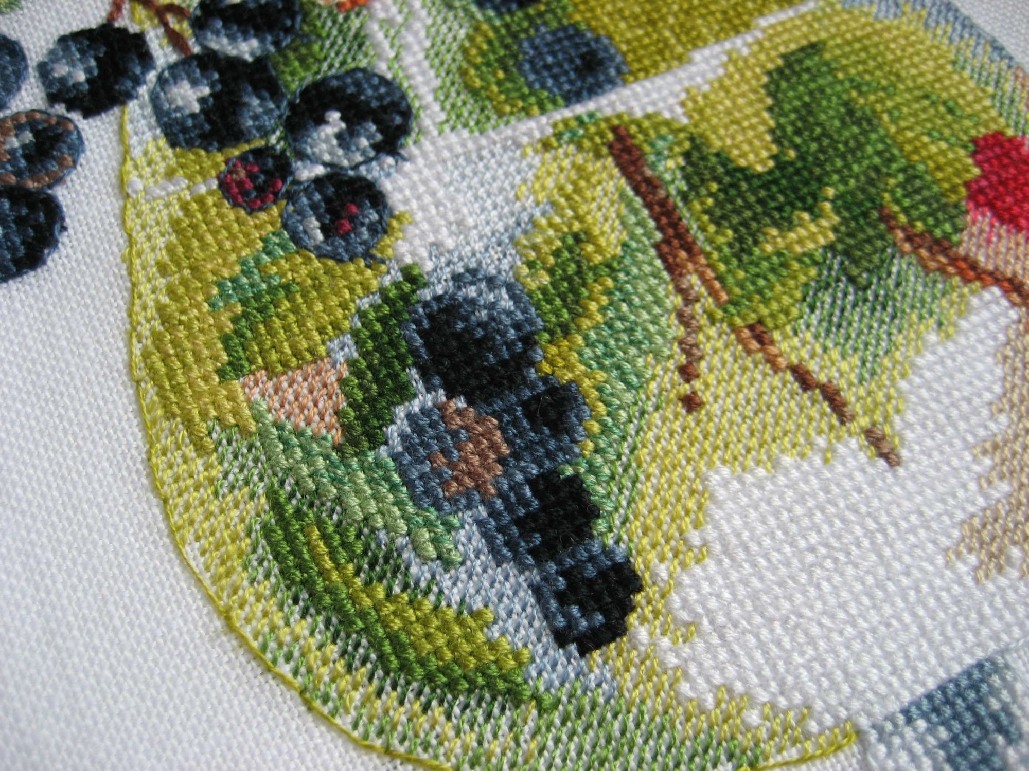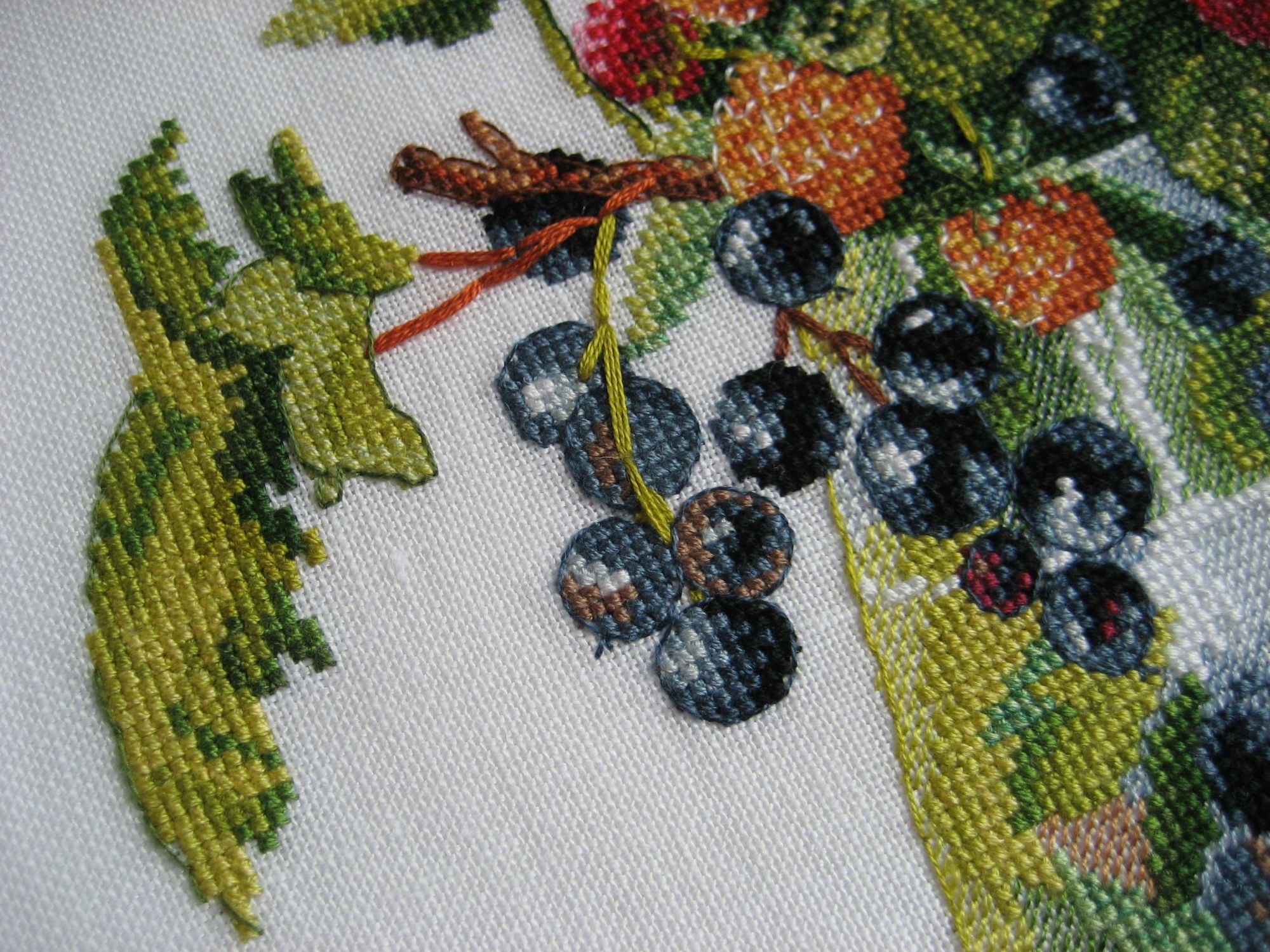 17 июня 2017 2. Овен 968 "Ветка ежевики", 25х15 см, аида 18. Эту вышивку начала спонтанно. Никак не могла окончательно определиться с составляющими сюрприза. Психанула по поводу работы, открыла набор и начала шить. Да, именно так, без всякой подготовки. Аиду заменила на тот же лен, что и в Ягодном ликере - Edinburgh 36. Разметку делать не стала. Перенабора не нашла, шила цветной схеме, которая впрочем. оказалась удобной. Большое неудобство для меня - 1. невозможность закрашивать схему, 2. - невозможность перенести значки на органайзер, пришлось ограничиться цифрами. Это очень тормозило процесс. Схема, также как и в Ликере, великолепно проработана, шить очень интересно. Ниточки тоже ПНК Кирова, очень приятные (если не считать шарушек). И не верьте обложке набора - на ней картинка такая бледноватая и непрезентабельная. Вышивка же получилась яркой. Итак, в процессе: Готовая работа: Вышивка так и осталась неоформленной, лежит пока свернутая в рулончик, дожидается своего часа. Для себя сделала вывод, что шитье на льне без разметки - вполне приемлемый для меня вариант. 3. Не вышивальное Текстильную корзиночку показывала в теме Сюрприза, но решила, что пусть и у меня в теме картинки сохранятся. Мой небольшой швейный эксперимент. Этакая авантюрка, учитывая, что в последние годы кроме подшивая брюк и замены молний ничем подобным не занималась. Ткань - хлопок для квилтинга (американская фирма MODA - очень понравилось качество). Синяя - такая темная, насыщенная по цвету, с легким эффектом потертости. Горчичная (возможно ошибаюсь с названием цвета) - ткань компаньон с изумительными винтажными цветами. Цвета немного ярче, чем смотрятся на фото. В качестве прокладки использовала синтепон и ватин. Результатом довольна. Хочу себе такую же. Nat717, olnikva, ОльгаВл и 34 других сказали спасибо Поделиться сообщением Ссылка на сообщение