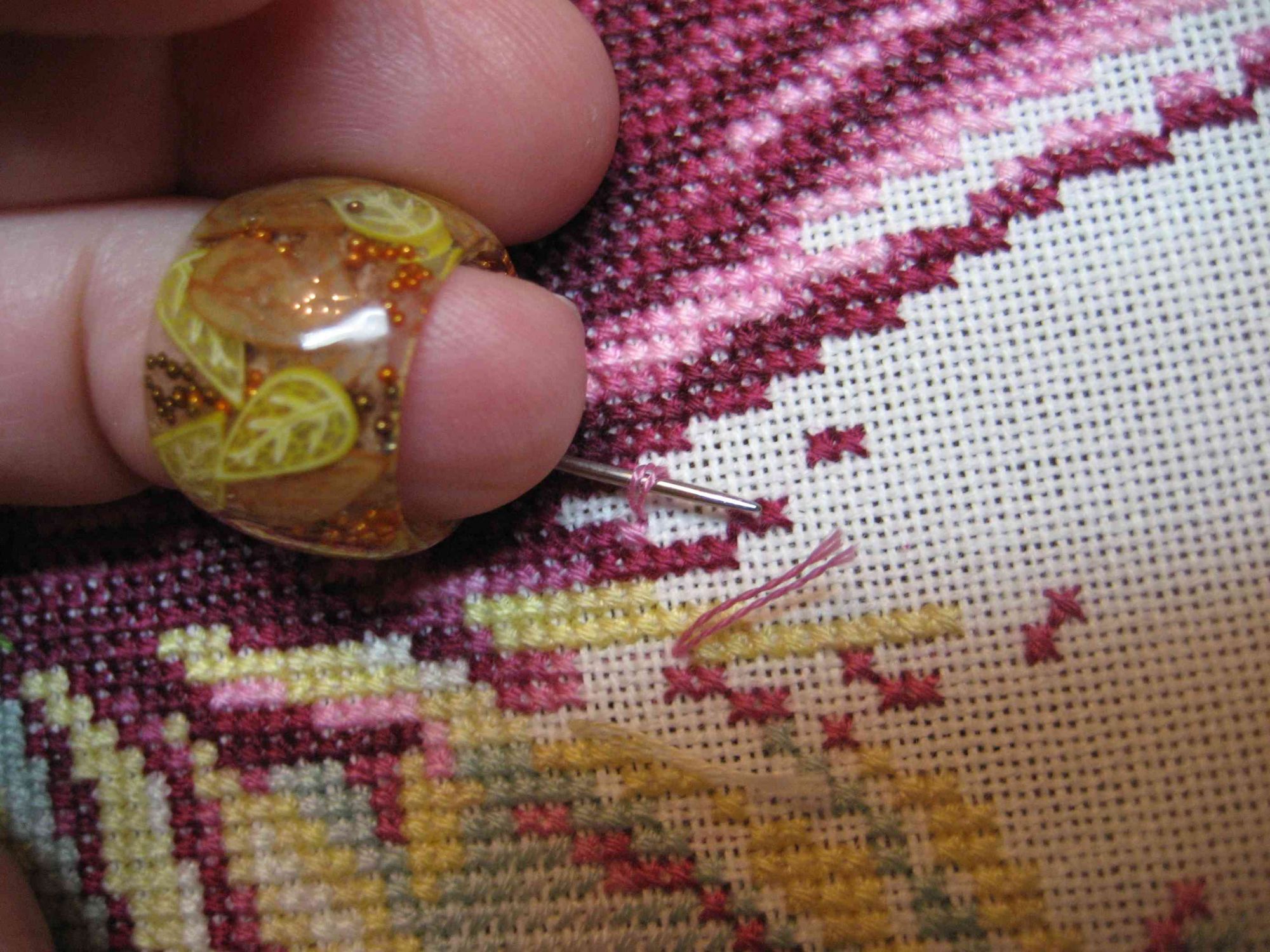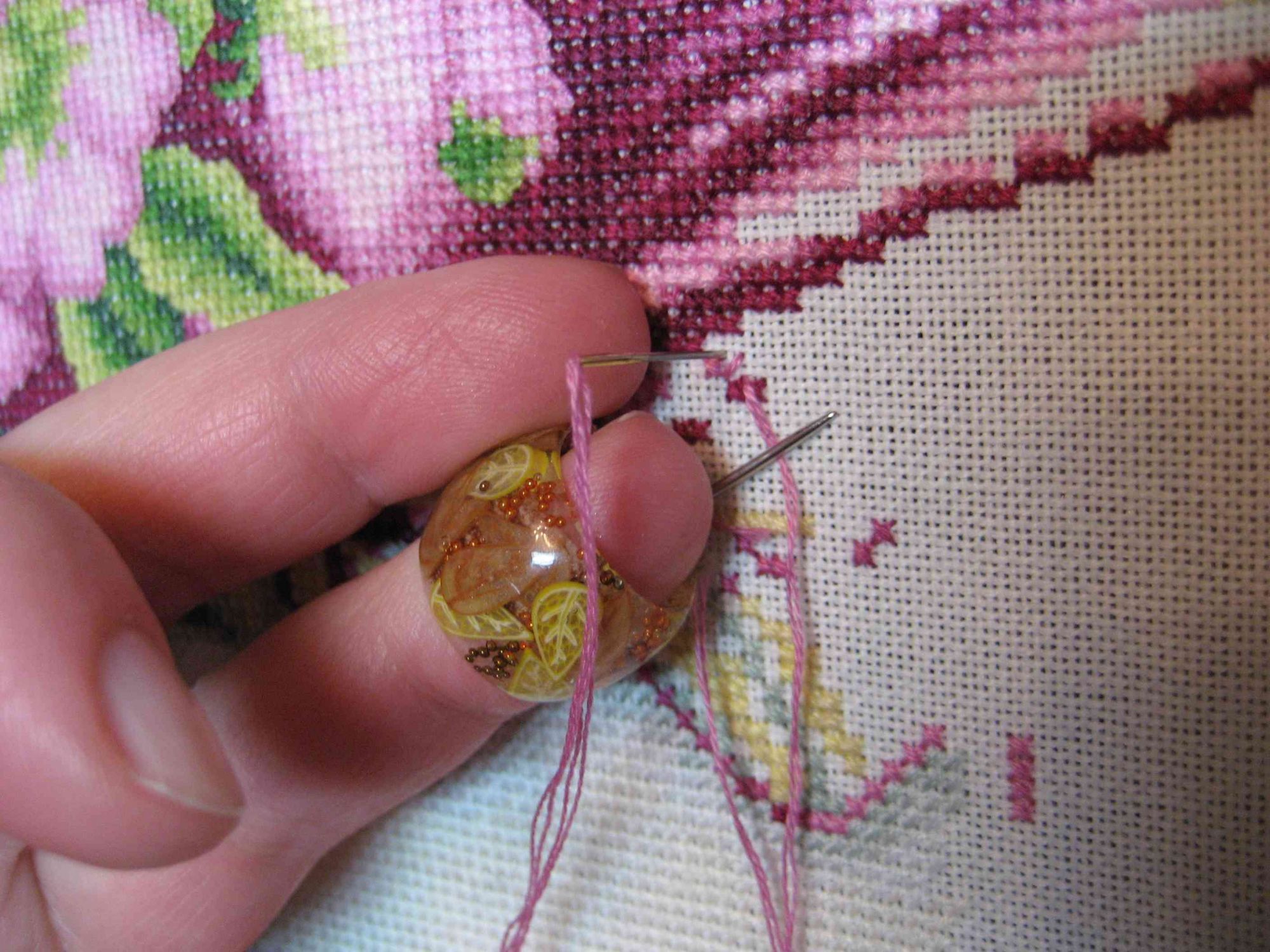 8 февраля 2018 Итак, с чего начать? Первый свой наперсток смастерила сама, почитала у Златы на сайте соответствующую тему и сделала (наперсток покажу ниже). Работать с ним у меня сразу получилось, не знаю, почему, наверное потому, что очень хотелось научиться )) Пользовала его год наверное, точно не скажу, а потом узнала, что девочка одна делает на заказ красивые гелевые наперстки. Сейчас посмотрела, Ирина даже сделала МК по изговлению наперстка здесь: http://zlataya.info/publ/n_uch/org/gel/11-1-0-231 Захотелось мне такой красоты, списалась с Ириной и заказала. Как потом выяснилось, Ирина живет здесь на форуме под ником Ирина1, вот ее профиль https://forum.stitch.su/profile/21725/ Вернусь к работе с наперстком. Как писала выше, вышиваю двумя руками. Я правша, правая рука у меня снизу, а левая сверху. Наперсток на безымянном пальце левой руки. Начинаю шить крестик: вывожу нить снизу наверх, левая рука втыкает иглу во вторую дырочку. На фото 1. зафиксирован момент, когда нижняя рука уже перехватила иглу, а наперсток лег на нитку (прижал ее к ткани). Видно, что ниточки отделены друг от друга: 1. На фото 2. - нить практически полностью ушла вниз, сверху ниточки перекинуты через иглу наперстка, видно, что лежат параллельно. Это момент перед окончательным затягивание нити, когда одновременно игла наперстка выскальзывает из-под ниточек. 2. на 3. фото видно, как располагается пальчик с наперстком, когда он не в работе. Это момент втыкания иглы сверху вниз (простите мне мой хранцузский) : 3. Обратила внимание что у меня оказывается не работает в этот момент указательный палец Итак, еще раз. фото 4 - правая рука начинает тянуть нить вниз, игла наперстка легла на нить. 5. - нить постепенно затягивается. 6. - нить уже плотно натянута. 7. - момент перед тем как наперсток выскальзывает из-под нити и ее окончательно затягиваем. 4. 5. 6. 7. 8. - крупнее момент втыкания иглы сверху. Наперсточек совсем не мешает, я даже не задумываюсь, где он у меня: 8. 9. - а так ложится наперсток, когда перекладинка крестика идет из нижнего угла крестика в верхний. 9. Продолжение следует. Боюсь писать длинное сообщение, т.к. может текст пропасть. apanjul, Каори, Хозяйка смешных зверей и 23 других сказали спасибо Поделиться сообщением Ссылка на сообщение