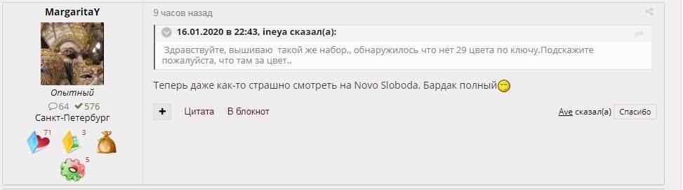 19 июля 2020 7 часов назад, Nadinka-Blondinka сказал(а): Маргарита, вы человек на форуме новый и понятно, что вы хотите как можно больше поучаствовать в жизни форума, наоставлять комментариев, иногда не подумав над тем, как они будут восприняты. Но в каждой избушке свои погремушки. Вы считаете это нормальное обращение? Попросить обосновать оценку и подкрепить фактами, это одно, но вот писать подобное - неуважение и пренебрежение к другим пользователям. "Дедовщина" среди вышивальщиц. MargaritaY, alen_73, Леся Песня и 10 других сказали спасибо Поделиться сообщением Ссылка на сообщение