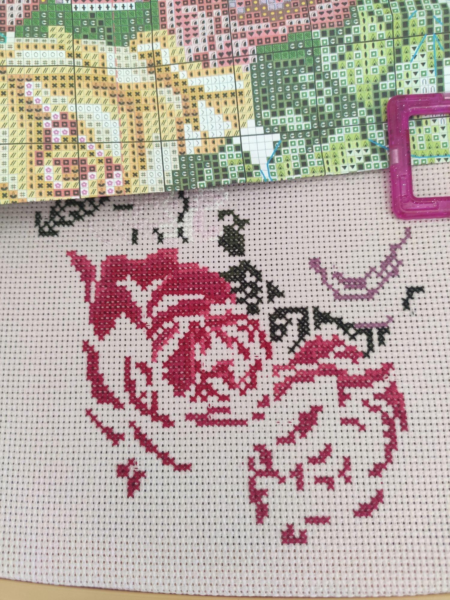 29 июня 2022 (изменено) 29 минут назад, Путешественница сказал(а): Так этим цветом как раз светлые "загибы" и края вышиваются, если я ничего не путаю. К сожалению, нет. Я тоже на это надеялась, что сама перевесила соседние цвета неправильно. Вот кусочек схемы с центральной розой и превью. #4 и #8 (❤️)очень близкие оттенки, основные цвета лепестков. А светлые загибы - там я уже дальше вышиваю, все правильно получается. А вообще где-то можно найти карту цветов Пальмира180? Весь инет перерыла безрезультатно. В ключе НС указывает # цвета. Только фиг эти нитки купишь у нас. А дизайн прям в душу запал и цвета ниток очень приятные. Изменено 29 июня 2022 пользователем poddelenka Поделиться сообщением Ссылка на сообщение