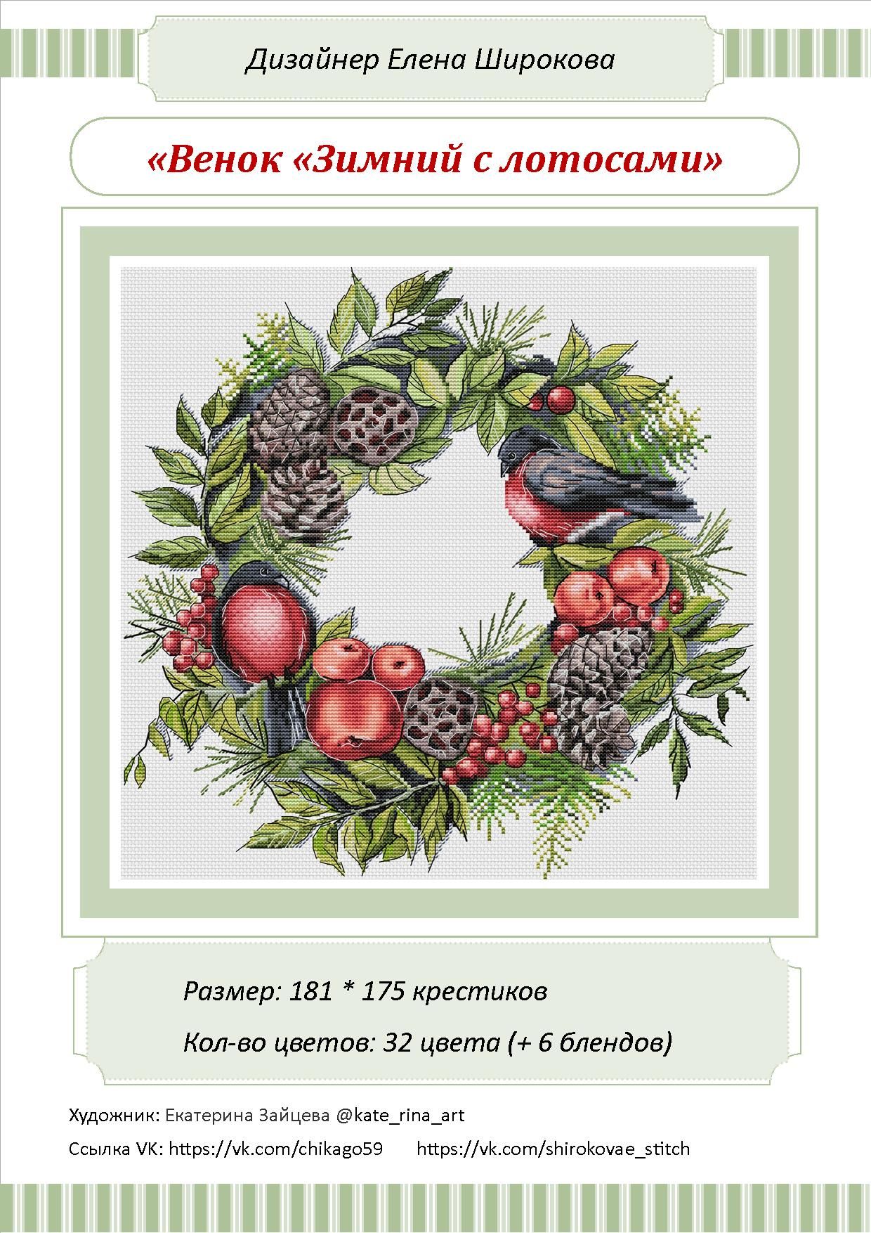 14 июня 2019 Венок "Зимний с лотосами" Размер 181х175 крестиков, 32 цвета + 6 блендов из них, ДМС. Крест, полукрест, бэк. Венок "Зимний с шишками" Размер 181х175 крестиков, 32 цвета + 6 блендов из них, ДМС. Крест, полукрест, бэк. Пумочка-13 сказал(а) спасибо Поделиться сообщением Ссылка на сообщение