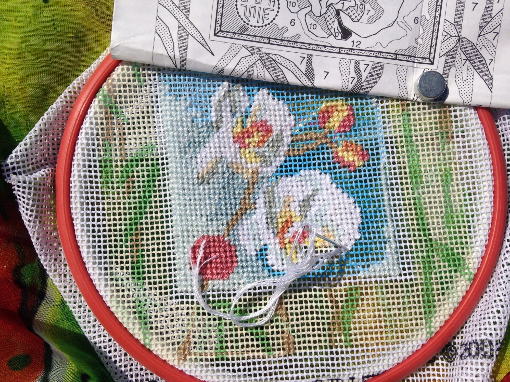 10 октября 2017 Я давно не обновляла свои процессы! И все потому, что решила немного заняться своей фигурой, и вечером частенько ходила на йогу. Очень классно, мне понравилось! Но пока трехмесячный абонемент у меня закончился, а новый я еще не купила! Зато с каким воодушевлением я взяла в руки вышивку! Но продвижения пока небольшие. 1. РТО "Романтичные розы" немного продвинулись! Я уже очень привыкла и привязалась к этому процессу. Не для гаечки! Хотелось бы закончить их в этом году, надеюсь мои планы сбудутся! 2. Азиатские орхидеи от Дим совсем немного продвинулись. Последняя фотография аж даже на черноморском пляже сделана , правда удалось там повышивать совсем чуть-чуть! 3. Очень интересная история вот этого малявочного наборчика от Ланарт (Lanarte miniatuur 33539)! Я нашла его в магазине секонд-хенд. Стоил он совсем копейки, рублей 60 вроде, и я, конечно же, спасла малюточку! Несколько вышитых по центру на канве крестиков я распорола, и начала заново! Так интересно! Ни до, ни, пока что после я в секонде такого не встречала! Вышивается он мелкокрестиком через одно переплетение, вроде бы Лугана, написано только, что 100% хлопок. Он такой простенький, и совсем не современный, но от этого не менее прикольный! 4. Еще я начала котейку на дереве Dimensions Too Pooped 35087. Притом начала на примету, пятого августа в особо благополучный день! Конечно же на учебу детки своего! Но продвижений по нему почти нет, закончу розы, и свое внимание переключу на него! Вот такие дела! Буду рада вашим комментариям! sette venerdi, TheSunniestDay, Catopuma и 4 других сказали спасибо Поделиться сообщением Ссылка на сообщение