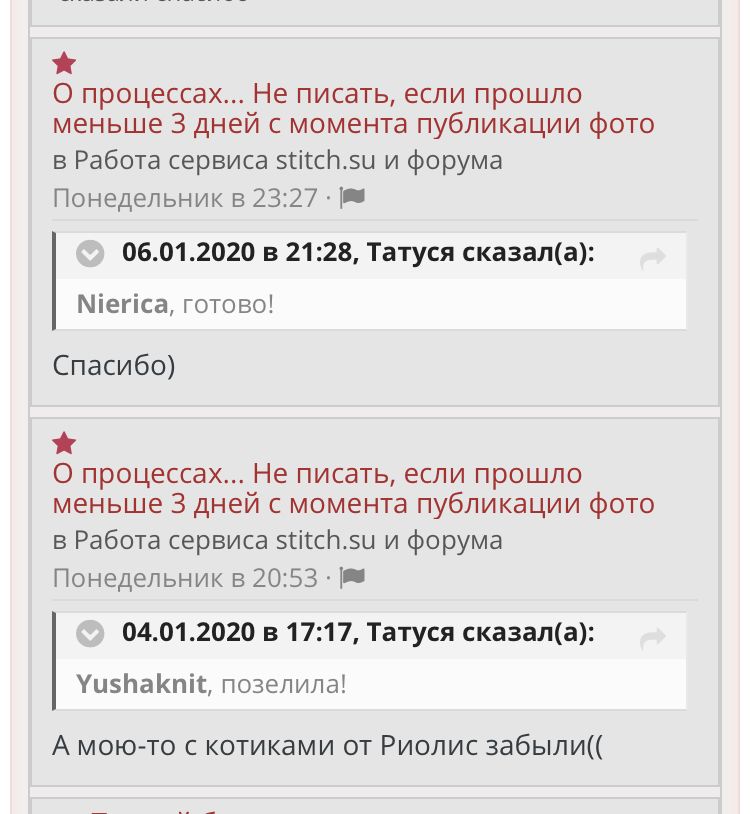 13 января 2020 12.01.2020 в 00:12, ната16 сказал(а): Часто дарю на праздники маленькие вышитые работы от ВС . Их покупка тоже карается штрафами? Нет, если набор изначально покупается в подарок, он не штрафуется. Только у меня просьба, если вы его показываете в завершенных, говорите, что это подарок, он будет идти в отчете как неучтенка и НЕ БУДЕТ уменьшать ваши запасы! Marti, kleona, ната16 и 9 других сказали спасибо Поделиться сообщением Ссылка на сообщение