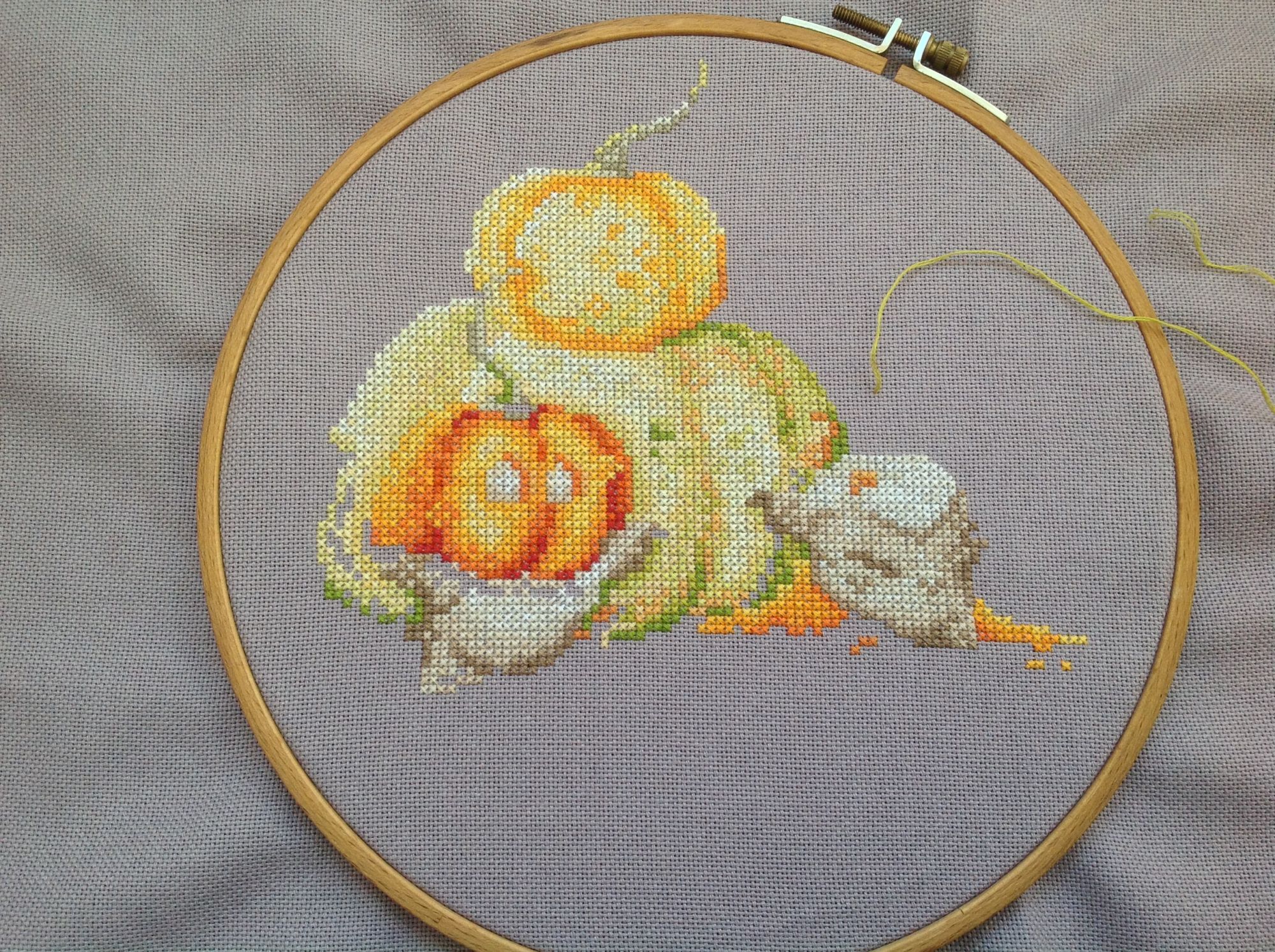 19 сентября 2020 ОТЧЕТ Цвет настроения Лиловый) Или как я спасаюсь осенью... Обо всем по-порядку. Прошел добрый месяц с моего последнего отчета и я решила, что созрела для еще одного. Один из интересных дизайнеров для меня является Нагорная Надежда, и я долго присматривалась к ее работам, искала для себя ту самую вышивку, которую вышью. И нашла, нашла я ее еще в прошлом году, но вышила только сейчас, хотя что такое год, если дело касается вышивки? Нагорная Надежда Pumpkin party закончена Для этой схемы лиловая канва, то что доктор прописал. Я получила море удовольствия от каждого крестика и каждого мгновения, которые провела наедине с собой и вышивкой. Будет непременно оформлена в круглую рамку, и станет частью моего осенней экспозиции когда дите позволит таковые делать, а это будет еще.... понятно.. Так же хочется вас познакомить с целой частью этой работы. К котам я как бы равнодушна, дракон не впечатлил, поэтому я решила вышить самое интересное, но в процессе кое-что изменила. А именно левый бок тыквы, не увидела смысла в этой тыквенной шляпке, к тому же очень люблю лаконичные круглые формы в интерьере, вышивке этой тоже передалось. Даже жалко расставаться с этим процессом, но идем дальше. А дальше, я решила, что остался небольшой кусочек лилового цвета, которого мне хватит что бы вышить Петунова Анна Урожай закончен. Первый раз вышиваю Петунову, понравилось, точно не последний, учитывая, что мой запасливый хомяк припас в своей норке еще схемы Анны)) Маленькие вышивки приятно шить, но применение им сложно найти. В моем случае это будет дорожка на стол, с обоих сторон от пони хочу вышить по тыковке! ПОка жду свою тыковку и потираю ручки, так не хочется расставаться с лиловым цветом! Люблю тыквы, сов, и еще наверное лис! С радостью присоединилась к вышивальщицам, которые захомячили или начали шить лис, они такие нереальные! Даже моя ненавистная шерсть меня не остановила, похоже смерилась, ведь ко всему люди привыкают, ведь для красоты нужно и пострадать... Риолис Лисы в листве. Хочется сказать риолис я тебя люблю, давай горшочек вари еще похожее. На лис лиловой канвы не хватило)) Счастье было не долгим)) Осенью решила пересмотреть красавицу и чудовище, и как то вдохновил меня фильм что бы потянуться к одному набору, не знаю помните ли о нем. Два года, упорно его не вижу не вышиваю)) Решила отпраздновать вторую годовщину не вышивания как следует! Мережка. Винтажные розы. Было Стало Празднование прошло на ура, открылось второе дыхание. В каждом отчете розы явно не будут, но поняла, что дошью их) Завершить отчет я решила небольшой рубрикой Не буду вышивать, однако нравится( Схема екатерины бесперстовой. В начале разработки я была просто её очарована околдована, не малую роль здесь сыграли цвета, и так же карнивал роу, который я смотрела. Цвета так и остались абсолютно моими, однако, нагромождение элементов, а именно крыльев как у бабочки, перьев, поняла что для меня это слишком, правда заставкой на рабочий стол поставила. Девочки, всем желаю хорошей Зимовки. пережить осень. (и почему нет такого же слова зимовка, но про осенью, мне вот зимовать легче чем осенивать)) Пить чай, ловить запах травы, хрустеть листьями, кутаться в длинных шарфах от ветра. Берегите себя! Путешественница, _littlemisss_, Камма80 и 31 других сказали спасибо Поделиться сообщением Ссылка на сообщение