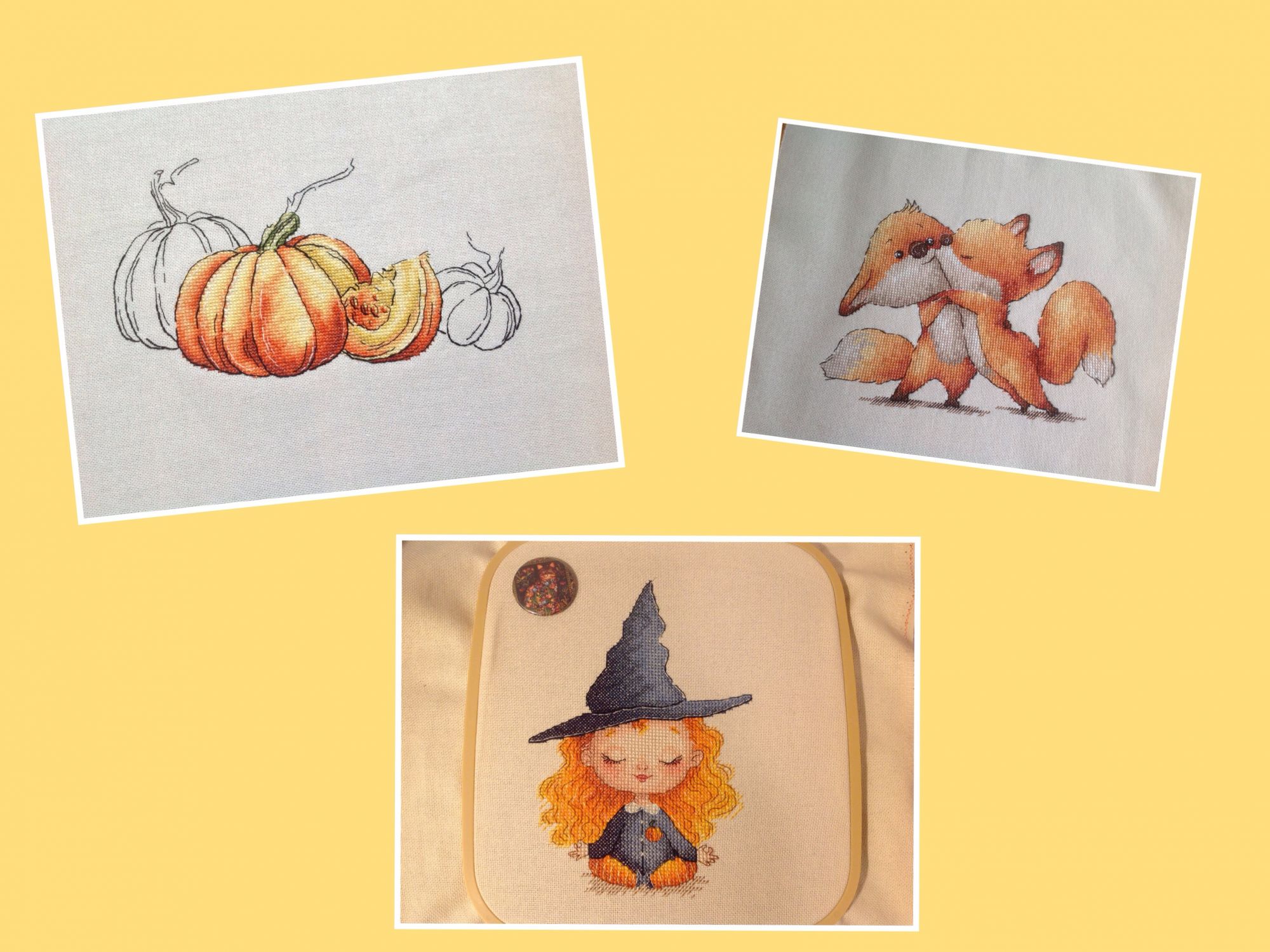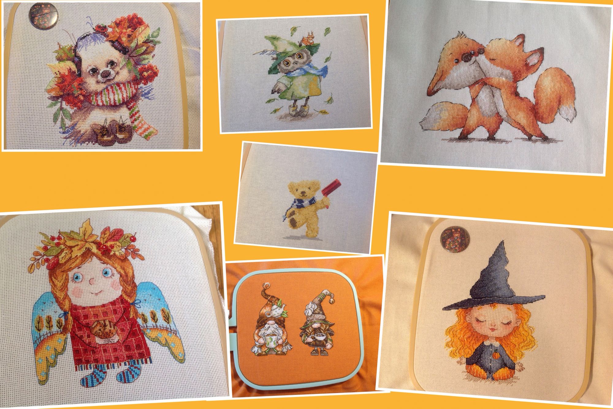 17 октября 2023 Шурша осенними листьями, я таки решилась смахнуть пыль со своей темы, здравствуйте) этой осенью, до меня добралось писательское осеннее настроение, шло конечно долго, но опоздавшим оно не бывает) за это время я не успела сделать "красивые" фотографии, так как вся жизнь проходит в движении, на самокатах, трамплинах, бассейнах и других развлекательных-познавательных и энергозатратных детских местах. И это на самом деле здорово. А теперь о вышивке, то, зачем мы все собрались. Этой осенью я дала себе полную творческую свободу, и решила не участвовать во всевозможных вышивальных проектах с постоянными отчётами, так как это сильно меня тяготит, хотя с радостью раз в месяц отчитывалась на протяжении всего года со своим долгостроем у Яны (ворчание бобра), однако осенью покинула проект, но было одно единственное условие моих осенних процессов- начинать и заканчивать, а так же задумываться об оформлении вышивки. Задумываться и оформлять, как вы понимаете это разные вещи мой осенний коллаж, захотелось собрать своих осенних цыпляток всех вместе, а где это сделать как не в своей теме. Началось мое осеннее настроение в средине августа, да осеннее настроение не всегда совпадает с календарным временем года,началось оно с вышивки осеннего ангела от овна и понеслось, ангела пока не знаю как оформить. Думала, что знаю, но передумала. Потом появился малыш Жоржик, он в шарфике, утеплился осенью, вообщем это второй мой медведь от херитаж, понятно что ему нужна компания. Лисички от митякиной это чистый позитив, увидела влюбилась, здесь и обнимашки и осень, которую я здесь увидела Потом я решила реализовать давнюю мечту вышить пёсика от Овен, давно так не плевалась. От бека, еле закончила его, пёсик удивительно тискательный его хочу оформить в подушку, поэтому бек и не вышивала. Листопад совёнок от рто, давно хотела вышить, собственно почему не этой осенью, каждый год откладываю уже лет 5. И гномы кофеманы, которые оказались кофе чай и какао. гномы кофе чай какао процесс закончен. Третьего гномы вышивать не будут мне не нравится, вдвоём им очень уютно. И вижу я в них осень, решилась подчеркнуть это Мурано оранжевого цвета. Гномы сейчас находятся в поисках недвижимости, надеюсь что то подберу для них. А гном какао чистая ведьма. Ивченко Виктория " ведьмочка дзен" процесса закончен Давно хотела вышитьведьмочку, но никак не находила свою, и вот этой осенью у Виктории я Ее нашла, мне очень понравилось, что. Дизайнер решила не использовать тривиальный чёрный цвет, а сделала Ее шляпку и костюм темно синими. Люблю Хэллоуин, но нестрашный. Хочу сделать с ней небольшой семплер на стене , вообщем может быть когда нибудь получится. закончила я ведьмочку, и ожидала, что осеннее настроение меня покинет, и придёт на смену настроение новогоднее, но нет, не уверена, так и хочется начать ещё один осенний процесс, а для этого нужно купить схему, и заказать нитки, а для новогодних процессов все готова, вообщем одна вышивальная неопределенность впереди. Прощаюсь, пусть у вас будет то вышивальное настроение, которое вы хотите. Гало4ка, Catopuma, nogres и 13 других сказали спасибо Поделиться сообщением Ссылка на сообщение