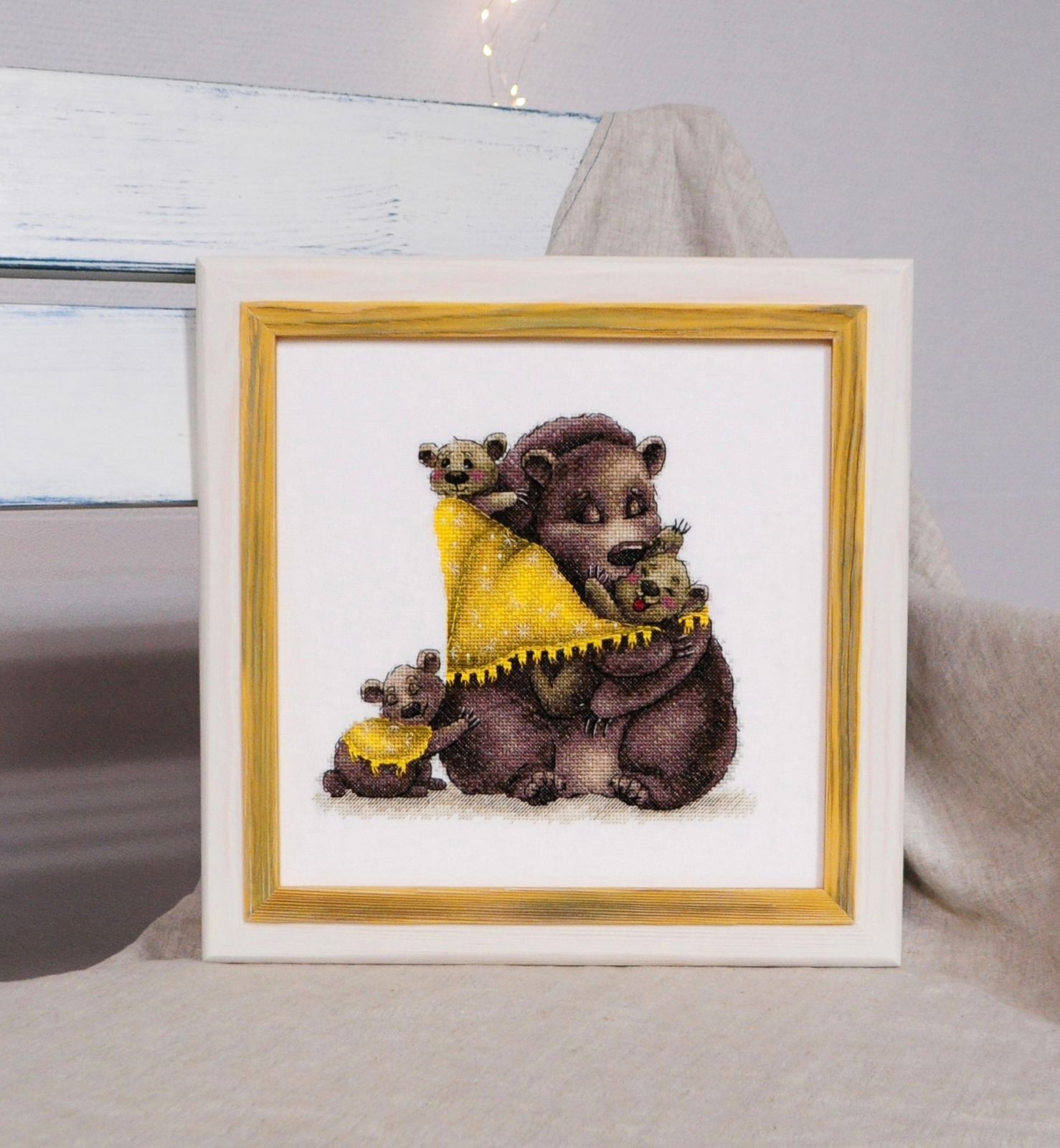25 января 2024 Часть вторая оформительская все не в гаечку. на самом деле, у меня такое впечатление, что медведя я вышивала ну очень давно, много событий случилось и много воды утекло. Желание оформить Мишку у меня переодически возникало, но не решалась, не знала с кем его повесить рядом. Я сначала вышила медведицу от панны, а без всяких планов, а потом увидела многодетную медведицу от ореховой и мой пазл сложился. Теперь смеюсь над медведем, понимаю почему он закрыл глаза)) вынуждено сменила багетную мастерскую, и оформление ну очень довольна! Кисюня, Забава_, Охотница и 10 других сказали спасибо Поделиться сообщением Ссылка на сообщение