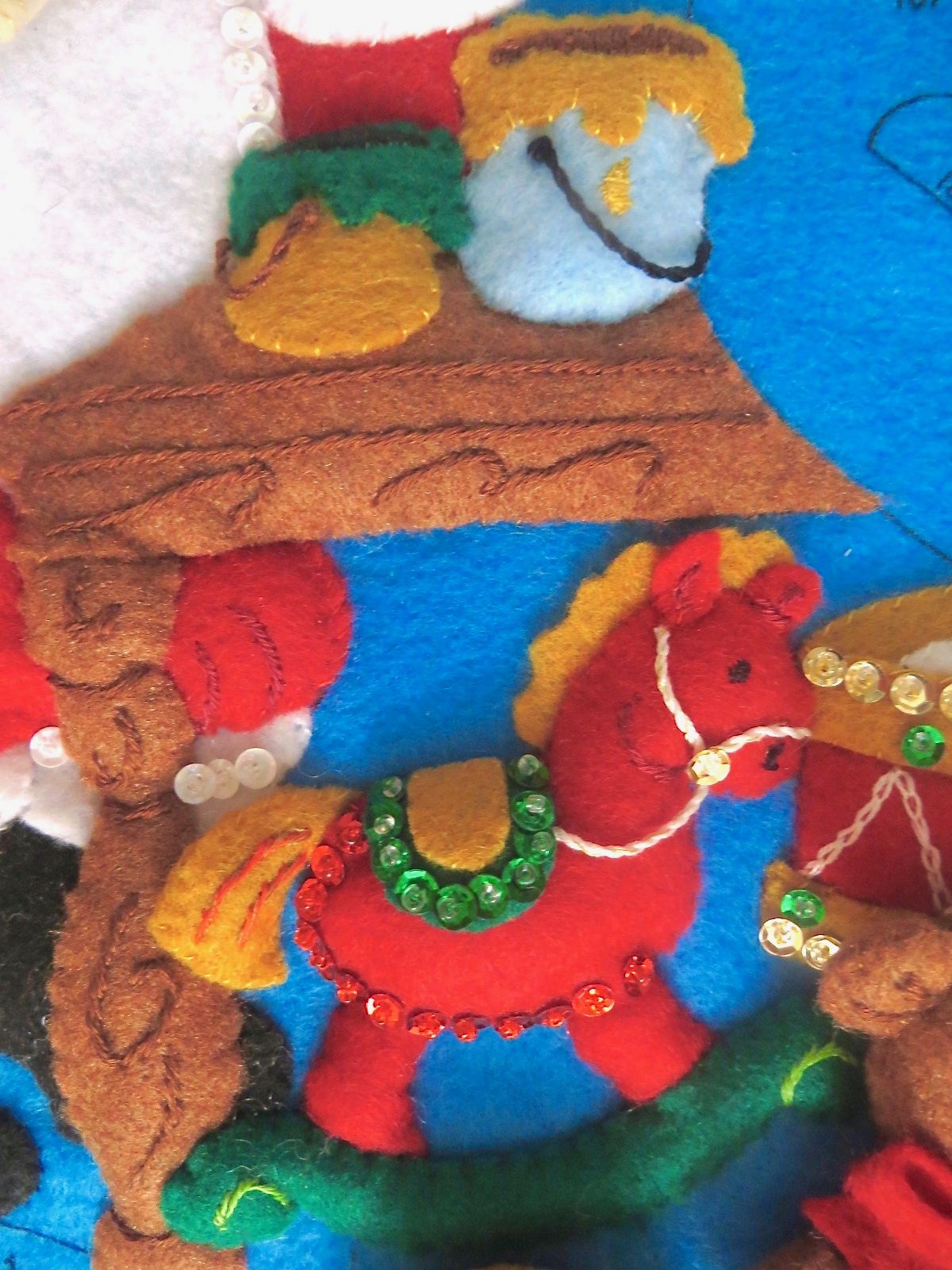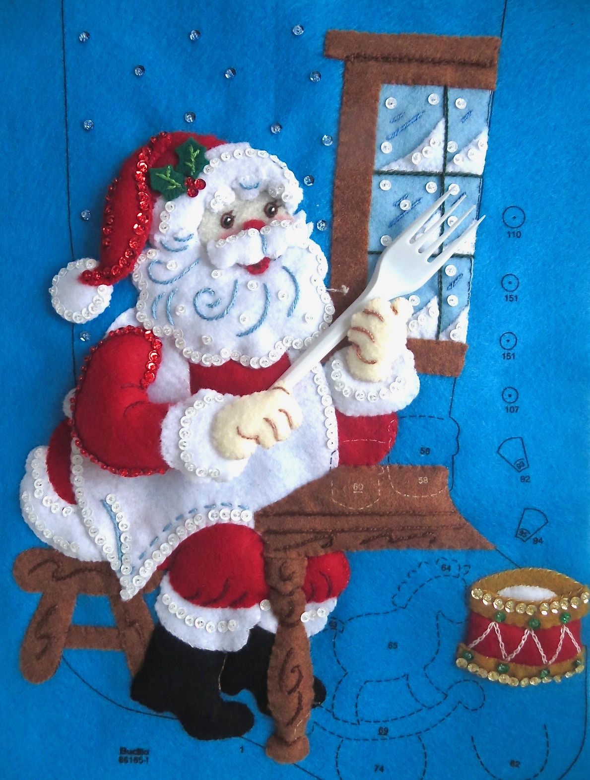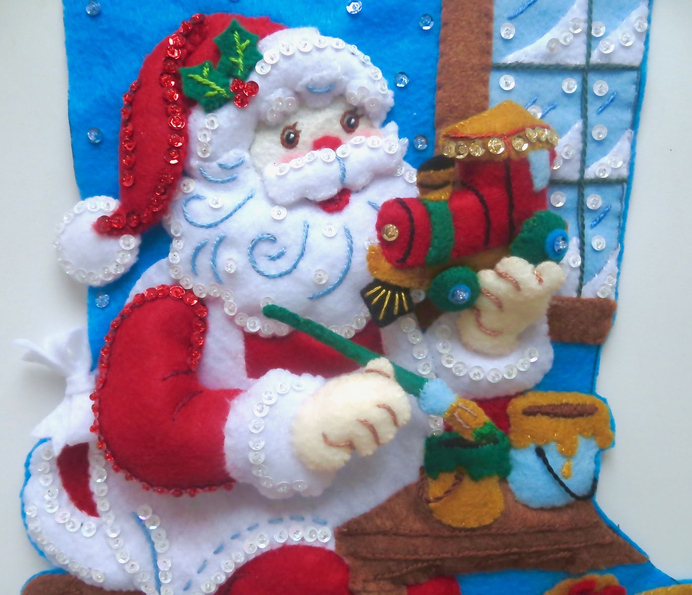 14 ноября 2017 В 06.11.2017 в 22:40, Raduga777 сказал: Катюшик, Санта благодарит тебя за добрые слова и, выпив, закусив и вдоволь потыкав канву иголочкой, показывает последнюю часть сериала За праздники дошила сапожок! Сшила игрушки, оформила верх сапога, вышила этикетку, а Санта обзавелся кокетливым бантиком на фартуке Этот сапог предназначен папе. Шить крохотные игрушечки (каждая 5-6 см в длину) доставило огромное удовольствие! В инструкциях к набору содержался шрифт. Правда, букв предложенного размера на этикетку можно при большом усилии втиснуть не больше трех. Производитель любезно предлагает буковки уменьшить (а если под рукой нет сканера? ), перевести с помощью копировальной бумаги и составить нужное имя / слово, которое нужно вышить прямо по бумаге (!), а по окончании вышивки бумажку постараться вытащить из-под вышитых буковок. Ну не знаю... Думаю, что насилие подобного рода работе явно бы навредило. Поэтому я плюнула, написала от руки сама прямо на этикетке и вышила. Делов-то! В остальном впечатление от набора отличное! Продуманные инструкции, идеальные выкройки, удобные иголки. Ниток, бисера и пайеток осталось огромное количество. Их вполне хватило бы еще на один такой сапог. Задник сделала из фетра, вложенного в набор. Поначалу чисто-белый цвет показался мне скучноватым. В магазине присмотрела белый фетр в голубой горошек, но смутила цена -- 400 руб за пару листочков! Решила, что это уж слишком, и сама нарисовала снежинки синим маркером для росписи ткани. Все же лучше, чем ничего. И еще показалось странным, что производитель даже не заикается о возможности вшивания подкладочной ткани. За узлы и небольшие протяжки вложенные в сапожок подарки вполне могут зацепиться и нарушить тем самым всю композицию. Выкроила из кусочка белой ткани подклад и соединила фетр и ткань обметочным швом. Шов получился не очень аккуратным, так как я в первую очередь следила за лицевой стороной. Очень прошу не судить строго На машинке прошить невозможно, так как на сапог уже было пришито множество фигурок. В целом, результатом довольна. Наташенька, сапожок потрясающий, хочется на него любоваться бесконечно!!! А как изумительно ты его доработала, и так аккуратно, получилось сказочное творение!!! Настоящее новогоднее чудо!!! оленек, СветланаМ и Raduga777 сказали спасибо Поделиться сообщением Ссылка на сообщение