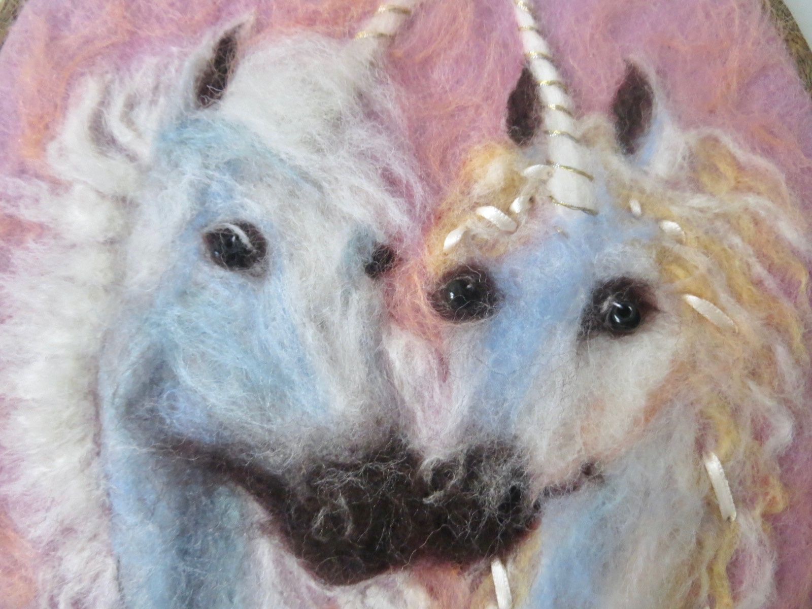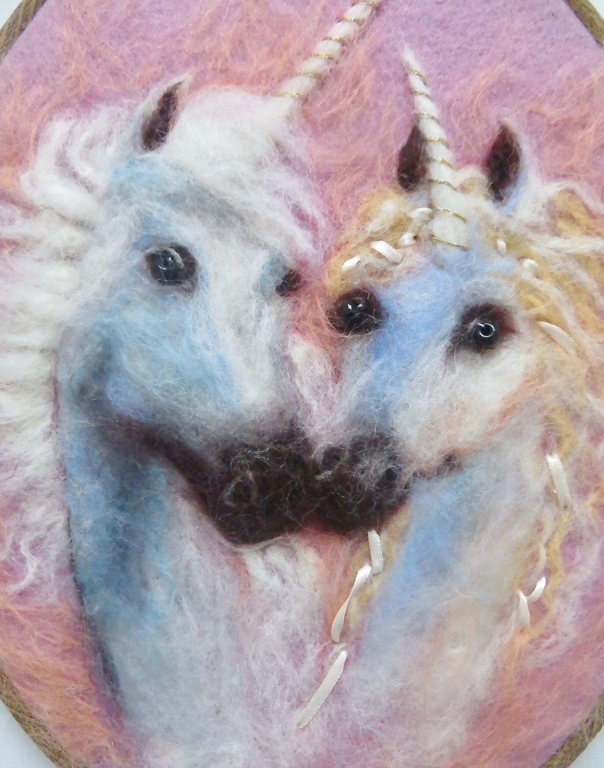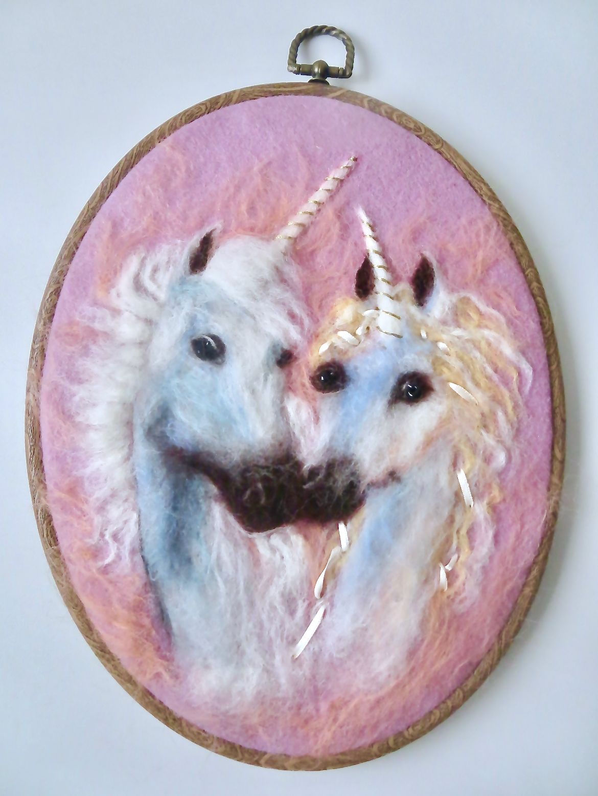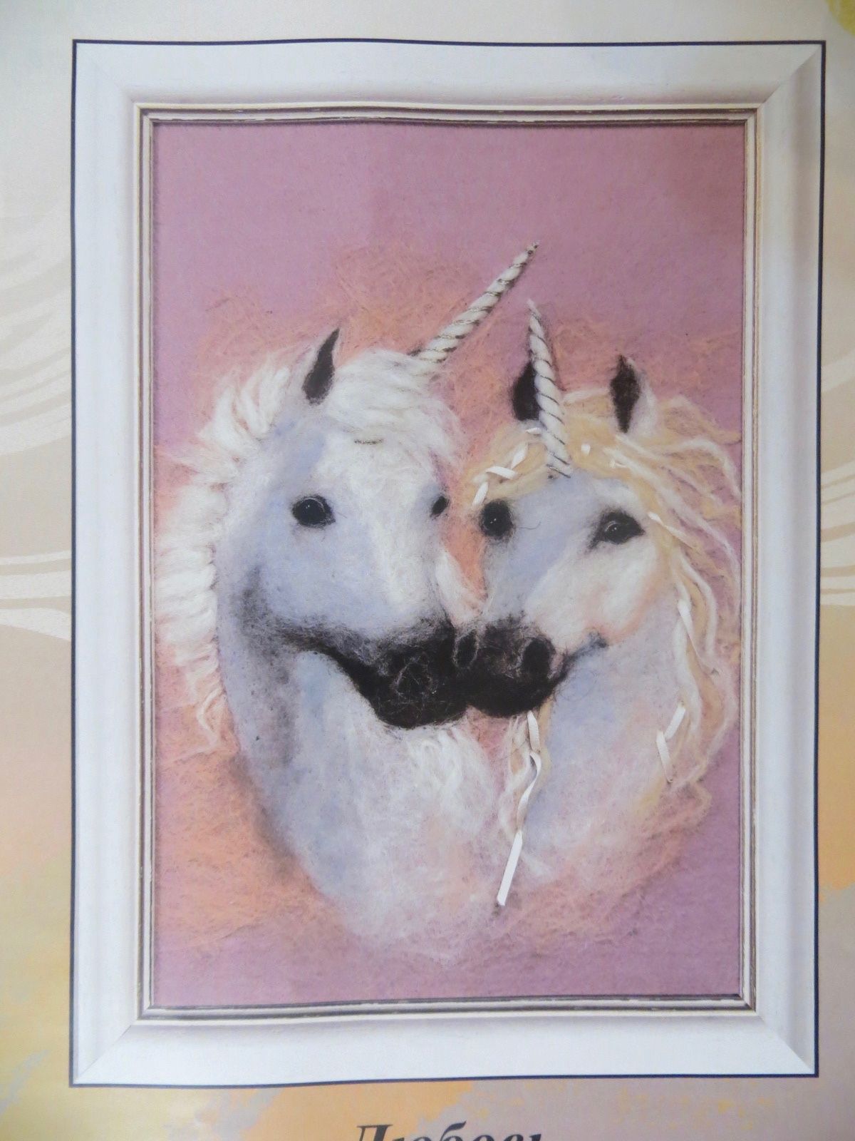 2 декабря 2017 А вот и я с маленьким отчетиком. Много сделать за прошедшую неделю не удалось, так как она выдалась очень напряженной и нервной. В результате всех неприятностей сейчас я в поиске нового места работы. Вышила открытку для папы. Небольшой сюжет от Luca's привлек тем, что он неплохо сочетается с предназначенным для папы сшитым недавно фетровым сапожком с Сантой Этот же иностранный гражданин, Санта то бишь, изображен и на открытке, поэтому мне захотелось внести небольшое изменение и вместо неприлично коротенькой курточки вышить шубку, облагородив таким образом Санту до уровня Деда Мороза И только гляньте на эти голые, тощие куриные ножки, торчащие из-под куртки! Они напоминают мне голые щиколотки некоторых молодых людей, даже по морозу щеголяющих в кроссовках без носков (кто-нибудь знает, что это за новое веяние моды такое? ) Разочаровали вложенные в набор нитки. Они не имели совершенно ничего общего с картинкой! Это даже не различные оттенки, а совершенно другие цвета мулине. Закралось подозрение, что нитки предназначены не для этого набора. Кроме того, их оказалось на один оттенок больше, которым не поняла вообще, что нужно было шить. Для куртки Санты было вложено мулине морковного оттенка (красный цвет подобрала из своих запасов), а посмотрите на мешок и бороду! Светло-бежевого оттенка для бороды в наборе не нашла совсем, а в имеющихся у меня ниточках Anchor нужного цвета не оказалось. Плюнула и вышила тем, чем предлагалось. Фото для сравнения (слева -- рисунок на обложке набора): Шапочку тоже надо было изменить, но опомнилась уже, когда дедулька был готов. Вот такой гибрид Санты и Деда Мороза получился у меня в итоге: От себя на открытку прикрепила шармик-снежинку, чтобы было повеселее и поснежнее Девочки, постаралась выполнить ваш наказ и сотворить единорогов! Начала в правильный лунный день. Для ускорения действия приметы выбрала не вышивку, а валяние шерстью. Знакомьтесь: набор для валяния "Любовь" от фирмы "Чаривна Мить" В набор вложена шерсть 9 оттенков, фетр-основа, рисунок с контурами единорожков, золотистые и серебристые ниточки, бусины-глазки, ленточка. Всех материалов осталось еще на одну такую парочку единорогов, если не больше. С цветами опять разочарование. Картинка на обложке приведена в приятных пастельных оттенках. При покупке повелась именно на необычный, волшебный серо-голубой оттенок лошадок, достичь которого со вложенной в набор шерстью оказалось невыполнимой задачей. Обложка: И мой процесс: Заменить кислотные оттенки шерсти на более спокойные не смогла, поскольку шерстью не валяю, и ее запасов у меня нет. А покупать в магазине шерсть для валяния в том количестве, в котором она продается, мне не хотелось. Куда мне потом с ней? Прясть и вязать носки и варежки? В целом же процесс рисования шерстью довольно увлекательный. На любом этапе можно вносить правки, добавляя или удаляя какие-либо оттенки. Особенно понравились рога, обвитые золотисто-серебристыми ниточками. А какая кокетка эта единорожка-дама! Гриву она однозначно завивала и вплела в нее ленточки Единорог же выглядит, на мой взгляд, настоящим защитником и опорой, на которого можно во всем положиться. Картинку оформила в овальные пяльцы. Размер получился 20 х 25 см. Жду сбычи мечт! Naduh, АлёNка, Гало4ка и 20 других сказали спасибо Поделиться сообщением Ссылка на соо
