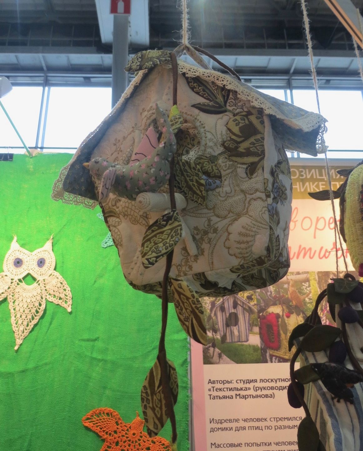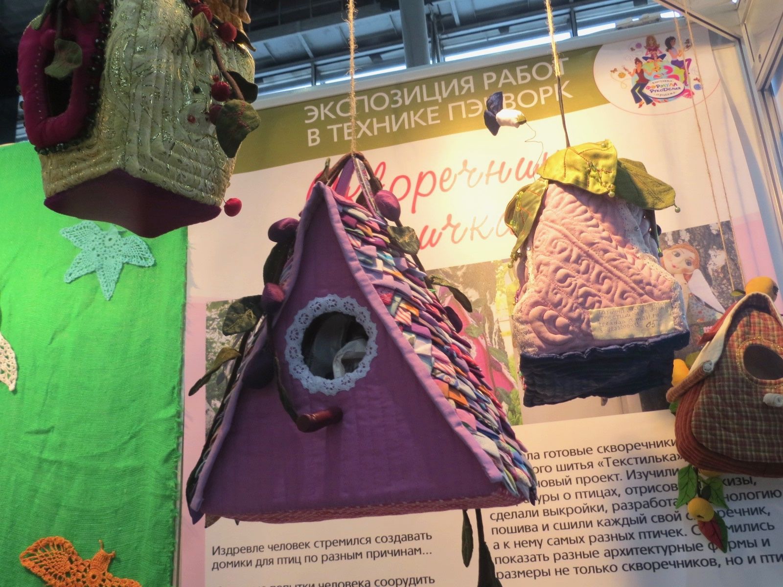 16 февраля 2018 Итак, очередная выставка "Формула рукоделия. Весна 2018". Часть 1. Впечатление, как всегда, подпортила вечная проблема с транспортом. Приехала в Сокольники в 9:45. На остановке уже стояла очередь, махавшая приличным хвостом, удлинявшимся с каждой минутой. Простояли ожидаючи минут 25, когда кто-то робко сказал, что вроде стоим не там (возле метро идет ремонт дорог), и мы нестройной толпой двинулись в путь. Шли до самого входа в парк. И опять -- ни указателей, ни каких-либо иных опознавательных знаков, что здесь будет останавливаться транспорт от "Формулы рукоделия". Организаторы решили поиграть с посетителями в угадайку. Раньше до павильонов ходили вместительные автобусы, которые некоторое время назад заменили маршрутками. В них вмещается очень мало пассажиров, и естественно, в первую я не попала. При этом водитель хамил женщинам, и причем делал это не в первый раз (я его хорошо запомнила еще с прошлых выставок именно по причине крайней грубости). Пришлось продолжать стоять, клацая от холода зубами. Наконец через минут через 15 подошла вторая маршрутка. Едем, и что мы видим? На обочине стоит и выжидает время маршрутка № 1, в то время как на остановке ее ждет огромное количество замерзающего народа! К слову сказать, и обратно была та же проблема - отсутствие транспорта и длинная очередь из уставших рукодельниц, нагруженных до зубов пакетами. А ведь среди них были и пожилые люди, и с дамы детьми. К счастью, мне удалось поймать такси, и я благополучно доехала до метро, пожалев свои ноги (накануне поскользнулась по дороге с работы и сильно ушибла колени). Организаторы упорно не хотят решать транспортную проблему и делают все возможное, чтобы число посетителей с каждым разом сокращалось. К слову сказать, это им удается -- на выставке не было привычной толпы. Не перестаю удивляться, отчего весенние выставки регулярно проводятся в зимние месяцы. Чтобы хоть как-то сгладить это недоразумение и напомнить о весне, организаторы решили провести флэшмоб "Весенний ручеёк", когда всем желающим в "красивых платьях, весенних ободках и аксессуарах" предлагалось открыть выставку очередным хороводом. Не знаю, состоялся ли ручеёк 15 февраля, поскольку ходила на ФР в пятницу, но в прошлый раз осенью в "хороводе", взявшись за руки, вяло проскакало едва ли с десяток человек. Тему весны поддержали яркие текстильные скворечники в стиле пэчворк, явившиеся своеобразными предвестниками весны. Только посмотрите на эти милые уютные птичьи домики, тему которых поддержали "Лоскутные картинки из глубинки" , а музей-усадьба "Ясная поляна" представил выставку "Дети цветов". Все работы выполнены из цветов, собранных на территории музея В ходе выставки были организованы и другие интересные спецпроекты: - "Школа резчиков" представлена разнообразной экспозицией с деревянными арт-объектами. Деревянные кружевные узоры и филигранные фигурки покоряют с первого взгляда - Проект "Текстильный витраж" представлен квилт-студией из Подольска. Не верится, что это не роспись по стеклу, а яркие кусочки ткани, умело собранные рукодельницами в декоративные подушки, покрывала, панно - Клуб кружевниц "Коклюшечка" потряс выдающимся мастерством искусниц, плетущих невесомые, будто снежинки, кружева. Запечатленная на фото рукодельница занимается этим видом искусства уже около 20 лет. Почти все з