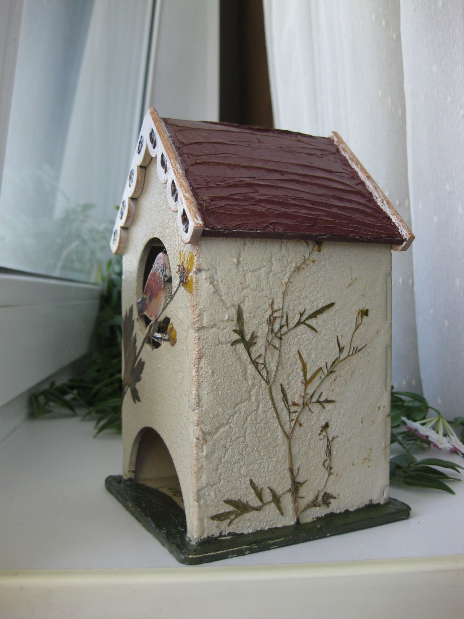 12 мая 2018 5 минут назад, Raduga777 сказал: Ну еще бы! Такая красота! Птичка живет в очень уютном домике! Травки с цветочками , я так понимаю, засушенные? Сама сушила? А сверху лаком покрыто? Прекрасная идея, которую я нагло утащу в свою копилку И внутри домика очень красиво! Очень понравились резные украшения крыши. Поняла, что не знаю, как называются эти элементы. Оказывается, "причелины" или "крылья". Фотографии чудесные! Желаю обеим птичкам долгой и радостной жизни у новой хозяйки! Светулик, ты такая молодец, чайных домиков творец! Декабрист прекрасен! Аленький цветочек! Домик из "Леонардо"https://leonardohobby.ru/ishop/good_38285804192/ Старалась замаскировать-закрасить все места сборки, крышу крыла предварительно подкрашенной текстурной пастой, а причелины (слово "причелина" мне тоже было не знакомо, звучит очень красиво) постаралась сделать похожими на кружево. С декорированием домика не могла определиться до последнего момента, но всё решила птичка, вспомнила про остатки рисовой бумаги, фасад домика пришлось перевернуть и ориентировать под воробьишку. Засушенные травки ты правильно опознала! На ФР как-то увидела небольшие панно с цветочками-травинками, вот и решила поэкспериментировать, насушила всякой всячины, а приклеивала декупажным клеем. поверхность домика покрыла финишным аэрозольным лаком... Недавно Ёжику "сеяла" травку, прижилась. Очень рада, что моя идейка тебе приглянулась!!! Каждая травинка сама по себе неповторима, на днях притопала на работу с букетиком сурепки, замуровала в старую кипу бумаг сушиться. Скрытый текст оленек, nata2017, irisheckin и 9 других сказали спасибо Поделиться сообщением Ссылка на сообщение
