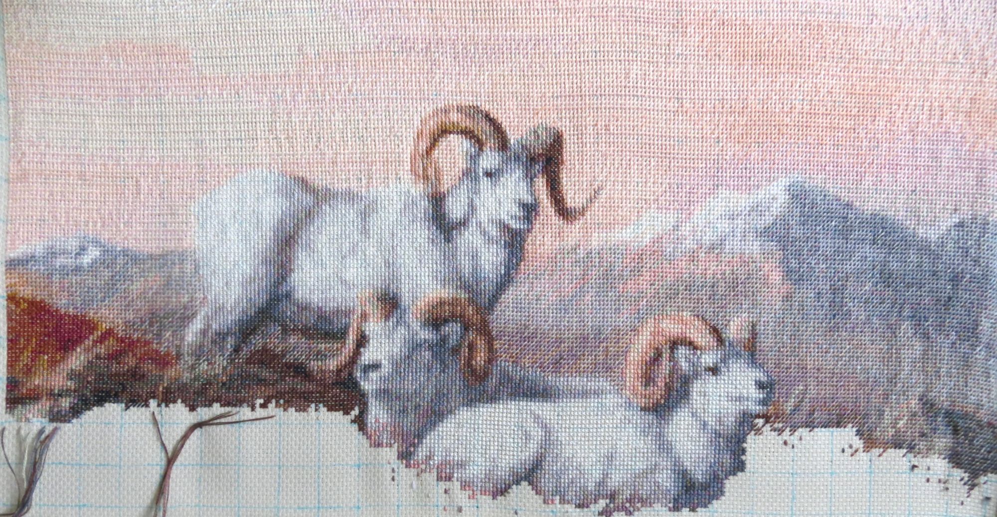 1 июля 2018 Спасибо всем, кто еще помнит моих козлов! Я ими вплотную так долго не занималась, что не удивлюсь, если о них уже позабыли. Если бы не мое обещание показать их к этому понедельнику, я бы воздержалась сегодня от показа, так как вышито немного, и показывать, собственно нечего. Причин много: отвлекалась на посторонних зайцев, на цветочки, на переезд, последствия которого до сих пор расхлебываю . Поначалу, сразу по переезде, все вещи по-быстрому распихала по шкафам и ящикам, а сейчас надо наводить порядок, на что требуется время. Поэтому успехи мои в козлах очень и очень скромные: вышила за это время всего полтора камушка и цветочки вверху слева. Больше хвастаться нечем. Правда, меня оправдывает еще и то, что в камнях сплошная шахматка, и у меня постоянно задействовано до 25-28 иголочек. Еще набралась наглости внести от себя изменение в оттенке красных цветов, сделав те, что на первом плане, чуть-чуть, всего на полтона поярче, а то вживую оригинальный оттенок смотрится не то что бледновато, но как-то темновато, производя слишком угрюмое впечатление. Сами можете оценить. Те цветы, что вдали слева, -- вышиты DMC по ключу. А те, что ближе к среднему козлику, -- оттенком поярче. Итак, для сравнения то, что было (не для гаечки): и то, что имеем на настоящий момент (фото для гаечки): Сегодняшние фотки, в отличие от прежних, сделаны вечером при свете свечи при искусственном освещении, поэтому выглядят темнее. феня777, kreolka, kas_julia и 16 других сказали спасибо Поделиться сообщением Ссылка на сообщение