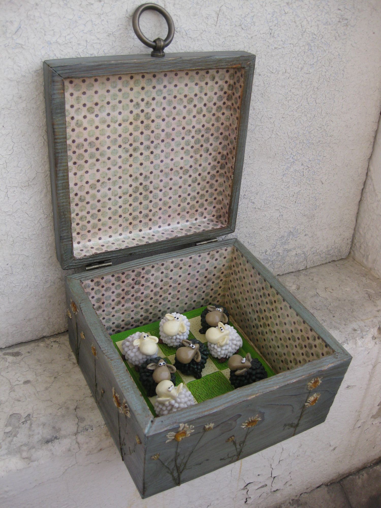 12 сентября 2018 3 часа назад, SvetlanaM сказал: Загончик - это вообще отдельная тема........ты же знаешь мою слабость к овечкам Знаю-знаю, Светик!!! Спасибо, дорогая!!! Вот вернулась я с дачи, посмотрела на своих бедных овечек и стало мне их жалко... их сородичи давно живут в тепле и уюте, обласканы и накормлены, а мои беспризорные... но у меня была затырка с винтом, который крепит ручку-кольцо, слишком уж он короткий... на даче муж все железяки переворошил и нужной длины не нашёл... вернувшись домой, муж продолжил поиски и , о, чудо, нашёл!!! В прошлые выходные обклеила загончик "обоями", покрыла защитным лаком и на следующий день моя отара справила новоселье!!! Светик, а когда порадуешь оформленными овечками, которые питаются нарциссами?!! Хозяйка смешных зверей, irisheckin, lvvoron и 6 других сказали спасибо Поделиться сообщением Ссылка на сообщение