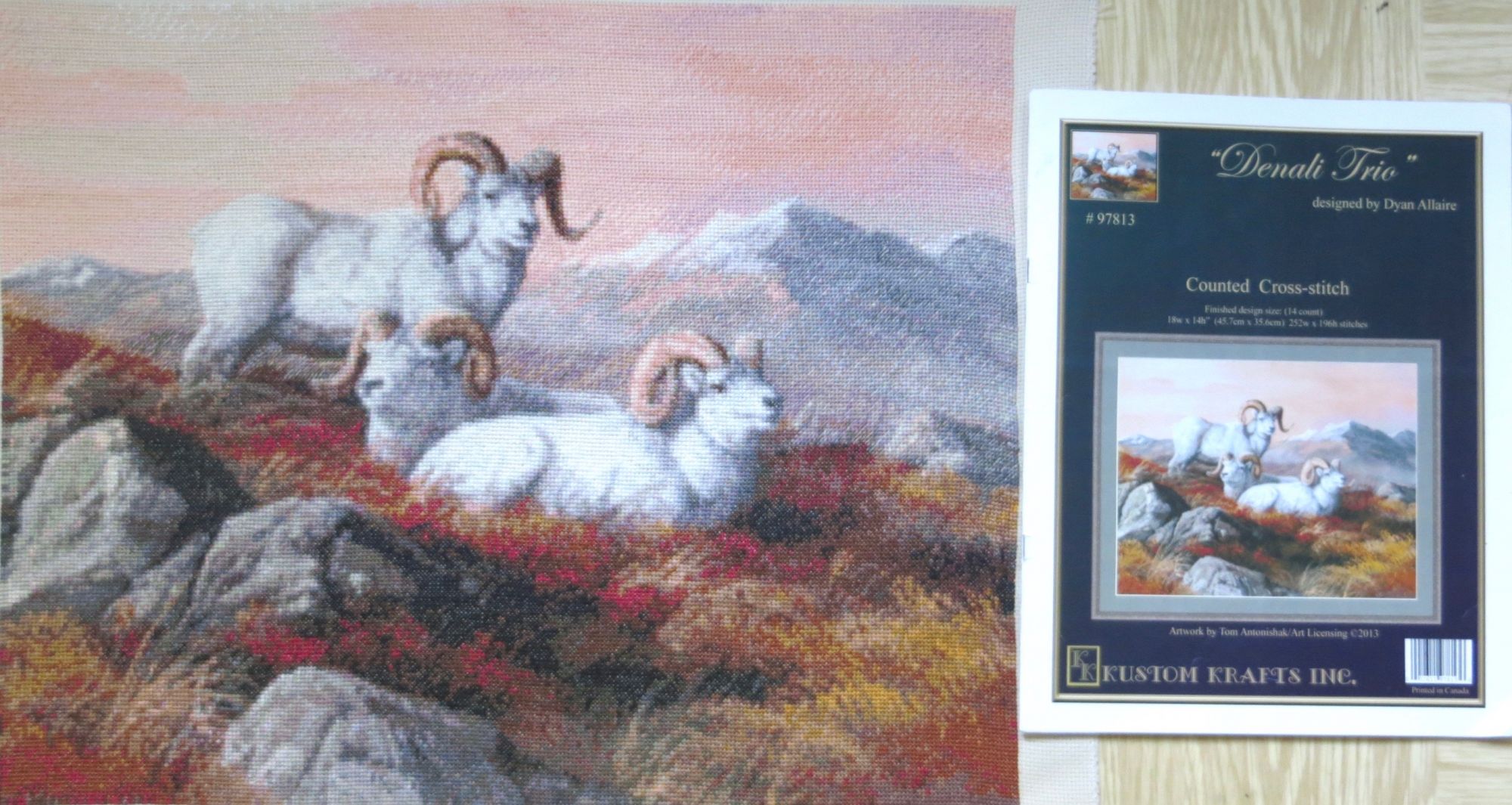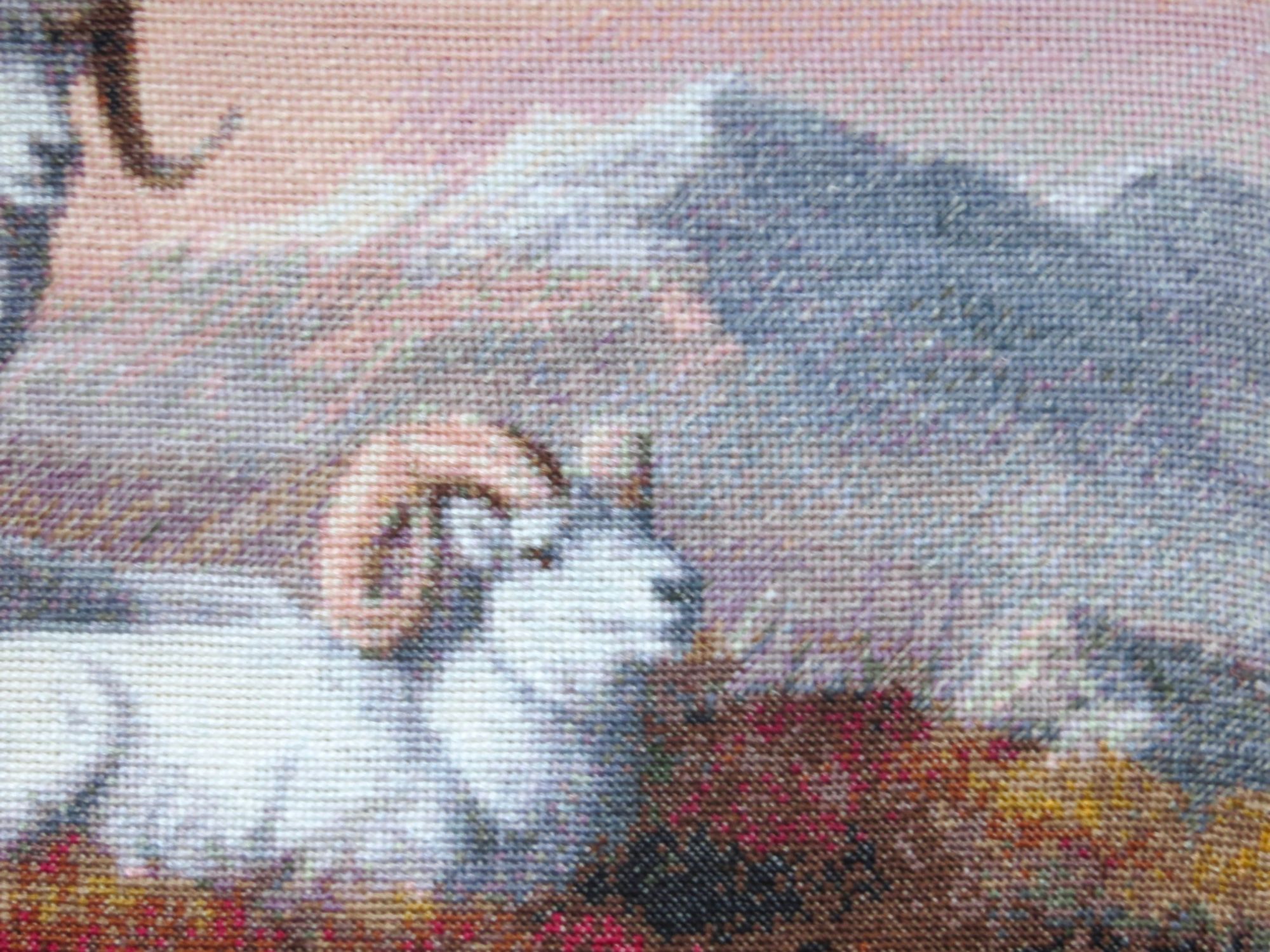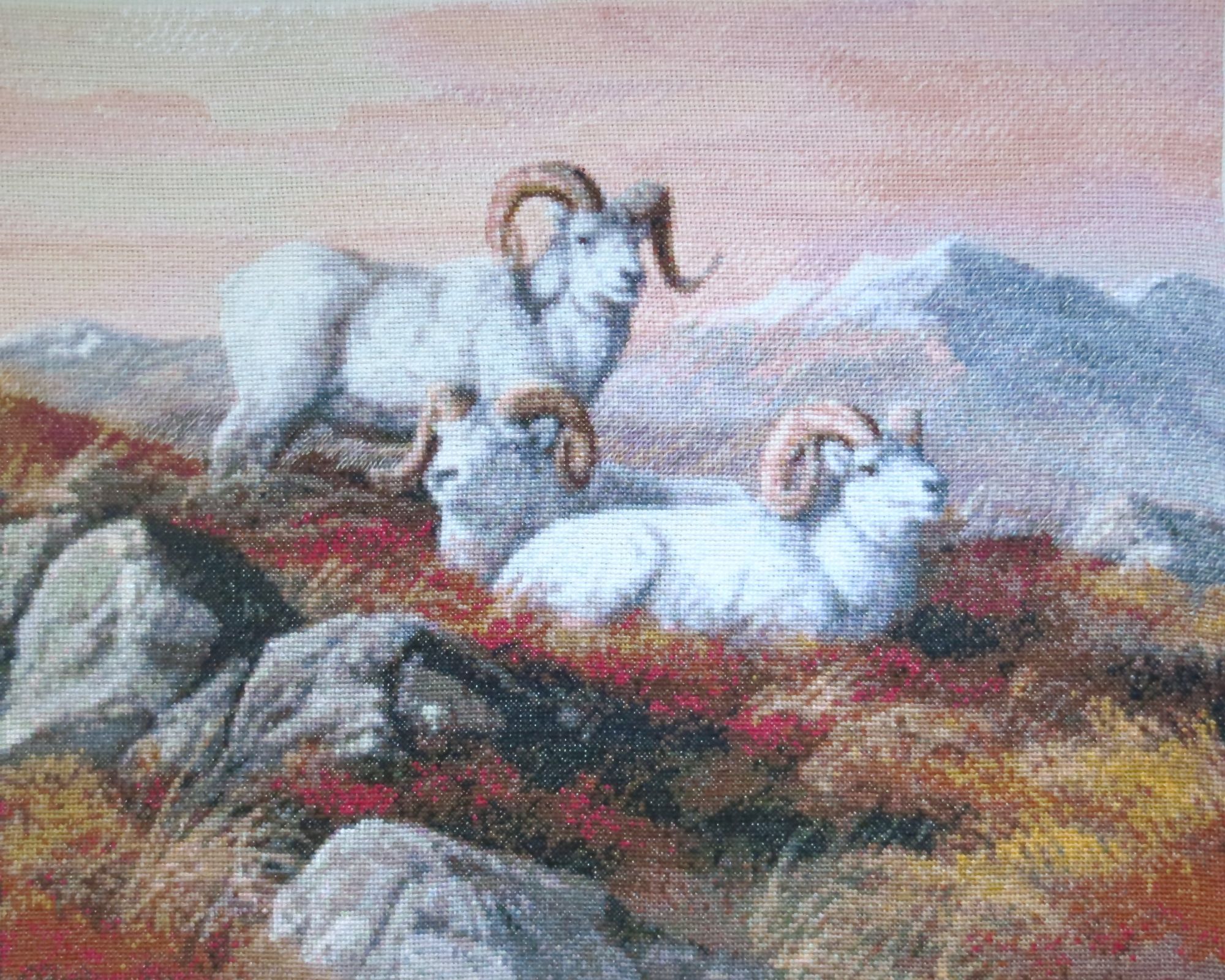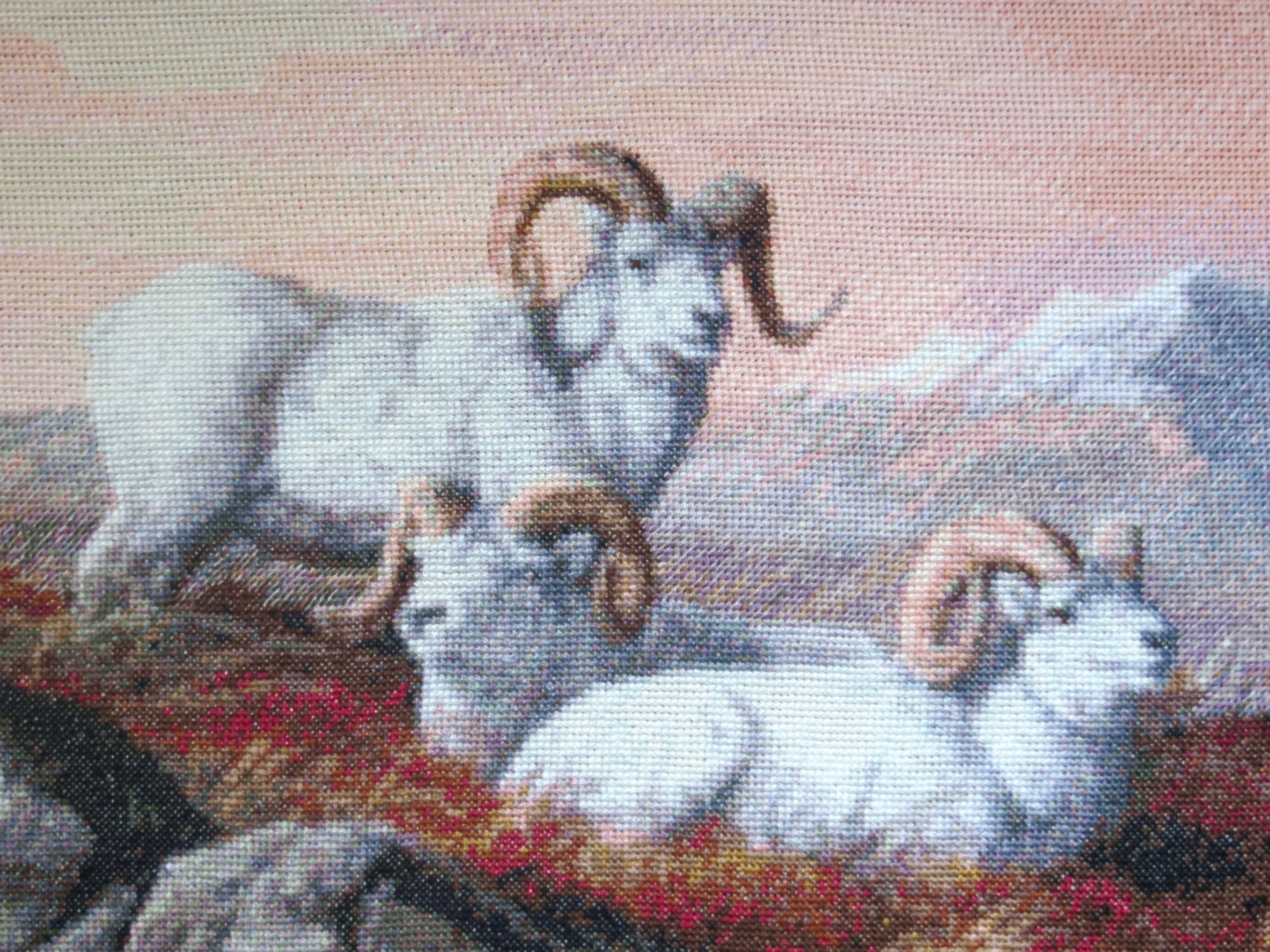 22 сентября 2018 Выставка совсем скоро! "Формулу рукоделия" решила встретить вышивальными достижениями, взяв повышенные обязательства по завершению начатого страшно сказать сколько месяцев назад, а именно: 9 (девять)! Стыд и позор! Ребёнка можно было родить за это время! А речь идёт, разумеется, о козлах. В целях их быстрейшего завершения были выдвинуты следующие лозунги: "Формуле рукоделия -- мои вышивальные победы!", "Вышивальную пятилетку -- за две недели!", "Козлы -- наше богатство!", "Козлы всех стран, соединяйтесь!", "Козлы -- ум, честь и совесть моей вышивальной эпохи!", "Козлы и Натуся едины!", "У нас закон простой: не дошил козлов -- СТОЙ!", "Натуся, настойчиво овладевай козлами!", "Ночь вышивке не помеха!", "Идеи козлов живут и побеждают!", "Даёшь козлов сверх плана!", "Я вышивку освоила бы только за то, чтоб крестиком вышить козлов!", "Всё ради козлов, всё на благо козлов!", к завершению процесса сменившиеся на: "Вышил козлов -- гуляй смело направо и налево!", "На "Формулу рукоделия" -- с чистой совестью!", "На свободу -- с зеленой гаечкой!" и "Долой козлиное рабство! Даёшь вышивки зайцев, овец и морковки!" Воодушевившись лозунгами, принялась за вышивку, уже не отвлекаясь на посторонних животных и представителей флоры, будь они трижды прекрасны! И вот сегодня этот знаменательный день настал! Козлятушки завершены и предстали предо мной во всей своей красе! Обряд омовения Козлины вальяжно развалились, оккупировав полванны. Очень ждала этот момент! Надоело смотреть на козлов сквозь призму разметки. Шёрстка обсохла, и стало можно фотографироваться. Учитывая, что процесс растянулся на много месяцев, можно подумать, что вышивала я козликов нехотя, но это совсем не так! Вышивала с огромным удовольствием! Понравилось абсолютно всё, и даже одиночки и бесконечная шахматка (см. фото ниже) в горах, камнях и траве не напрягали, когда я становилась свидетелем чудесного превращения мешанины крестиков в подёрнутые дымкой горы, трогательные козлиные хвостики, рассыпанные в траве маки (наверное, это они так заманчиво алеют своими лепестками?). Картина мне очень нравится, результат соответствует обложке Козлики выглядят умиротворенными и довольными. Самым легким было вышивать небо, правый нижний угол с травкой, где рядышком вышивались аж до 30 крестиком одного цвета, и филейные части животных Размер у меня получился 45 х 35 см, что на 5 мм меньше заявленного, несмотря на то, что вышила по периметру по дополнительному ряду (оформлять планирую без паспарту). Всего вышито 50292 крестика Буду ли ещё вышивать Kustom Krafts? Однозначно, да! Эпопея "Козлы в моей вышивке" завершена! А вот с козлами в жизни еще приходится разбираться. Всё! Пока! (Роняя тапки, убегает вышивать бисером... ) Фотографии для гаечки: PrimaN, вишенка аллая, irisheckin и 25 других сказали спасибо Поделиться сообщением Ссылка на сообщение