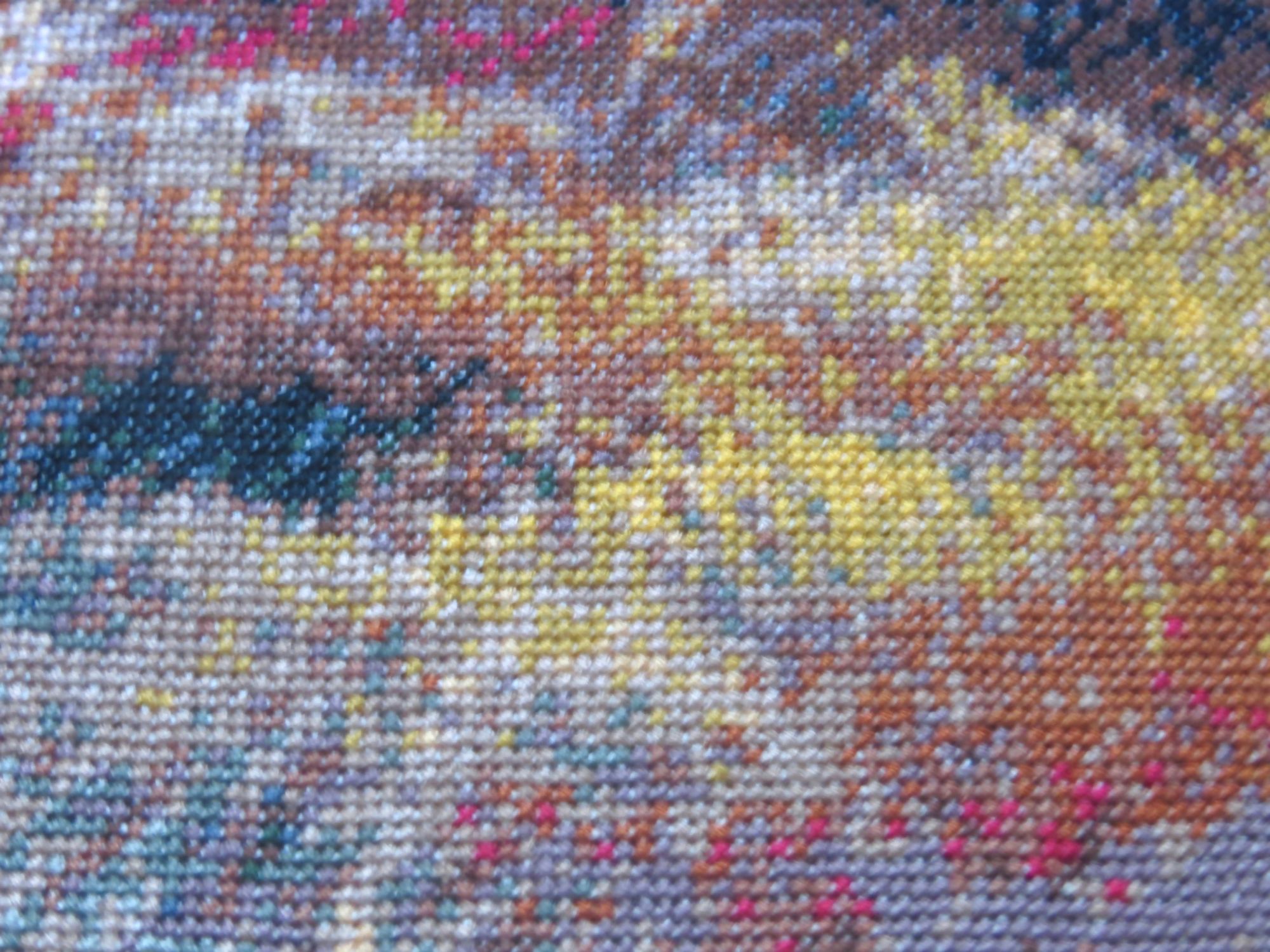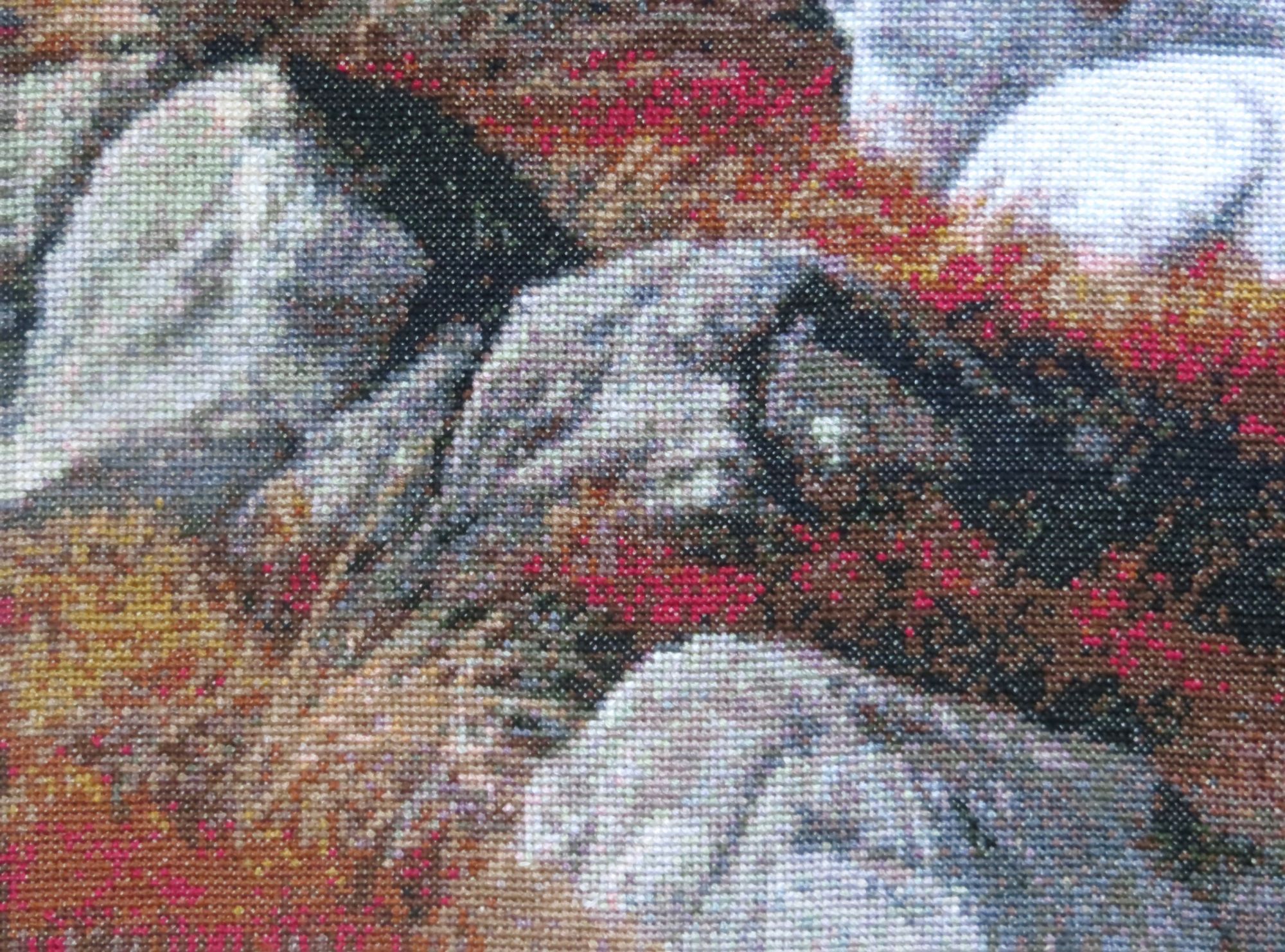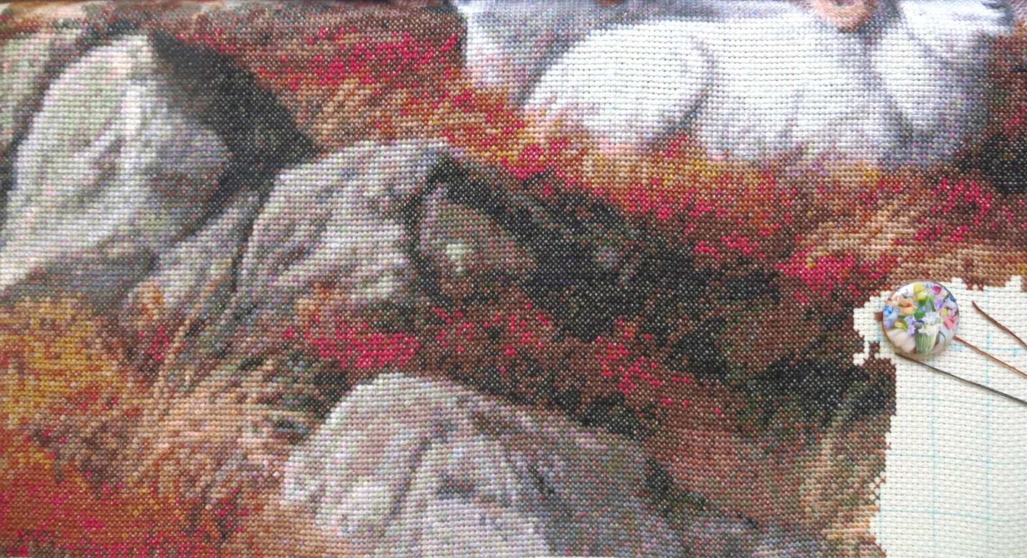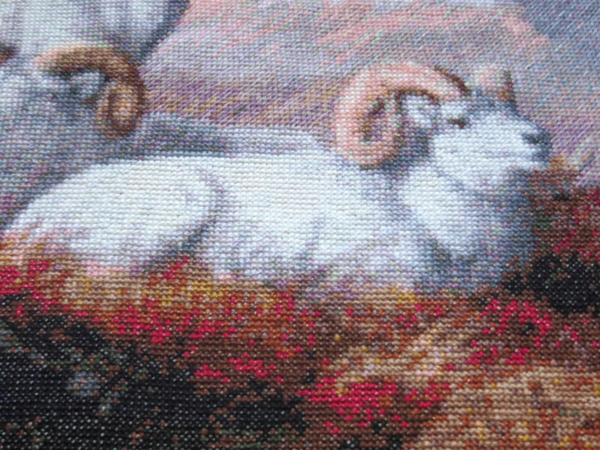 22 сентября 2018 Выставка совсем скоро! "Формулу рукоделия" решила встретить вышивальными достижениями, взяв повышенные обязательства по завершению начатого страшно сказать сколько месяцев назад, а именно: 9 (девять)! Стыд и позор! Ребёнка можно было родить за это время! А речь идёт, разумеется, о козлах. В целях их быстрейшего завершения были выдвинуты следующие лозунги: "Формуле рукоделия -- мои вышивальные победы!", "Вышивальную пятилетку -- за две недели!", "Козлы -- наше богатство!", "Козлы всех стран, соединяйтесь!", "Козлы -- ум, честь и совесть моей вышивальной эпохи!", "Козлы и Натуся едины!", "У нас закон простой: не дошил козлов -- СТОЙ!", "Натуся, настойчиво овладевай козлами!", "Ночь вышивке не помеха!", "Идеи козлов живут и побеждают!", "Даёшь козлов сверх плана!", "Я вышивку освоила бы только за то, чтоб крестиком вышить козлов!", "Всё ради козлов, всё на благо козлов!", к завершению процесса сменившиеся на: "Вышил козлов -- гуляй смело направо и налево!", "На "Формулу рукоделия" -- с чистой совестью!", "На свободу -- с зеленой гаечкой!" и "Долой козлиное рабство! Даёшь вышивки зайцев, овец и морковки!" Воодушевившись лозунгами, принялась за вышивку, уже не отвлекаясь на посторонних животных и представителей флоры, будь они трижды прекрасны! И вот сегодня этот знаменательный день настал! Козлятушки завершены и предстали предо мной во всей своей красе! Обряд омовения Козлины вальяжно развалились, оккупировав полванны. Очень ждала этот момент! Надоело смотреть на козлов сквозь призму разметки. Шёрстка обсохла, и стало можно фотографироваться. Учитывая, что процесс растянулся на много месяцев, можно подумать, что вышивала я козликов нехотя, но это совсем не так! Вышивала с огромным удовольствием! Понравилось абсолютно всё, и даже одиночки и бесконечная шахматка (см. фото ниже) в горах, камнях и траве не напрягали, когда я становилась свидетелем чудесного превращения мешанины крестиков в подёрнутые дымкой горы, трогательные козлиные хвостики, рассыпанные в траве маки (наверное, это они так заманчиво алеют своими лепестками?). Картина мне очень нравится, результат соответствует обложке Козлики выглядят умиротворенными и довольными. Самым легким было вышивать небо, правый нижний угол с травкой, где рядышком вышивались аж до 30 крестиком одного цвета, и филейные части животных Размер у меня получился 45 х 35 см, что на 5 мм меньше заявленного, несмотря на то, что вышила по периметру по дополнительному ряду (оформлять планирую без паспарту). Всего вышито 50292 крестика Буду ли ещё вышивать Kustom Krafts? Однозначно, да! Эпопея "Козлы в моей вышивке" завершена! А вот с козлами в жизни еще приходится разбираться. Всё! Пока! (Роняя тапки, убегает вышивать бисером... ) Фотографии для гаечки: PrimaN, вишенка аллая, irisheckin и 25 других сказали спасибо Поделиться сообщением Ссылка на сообщение