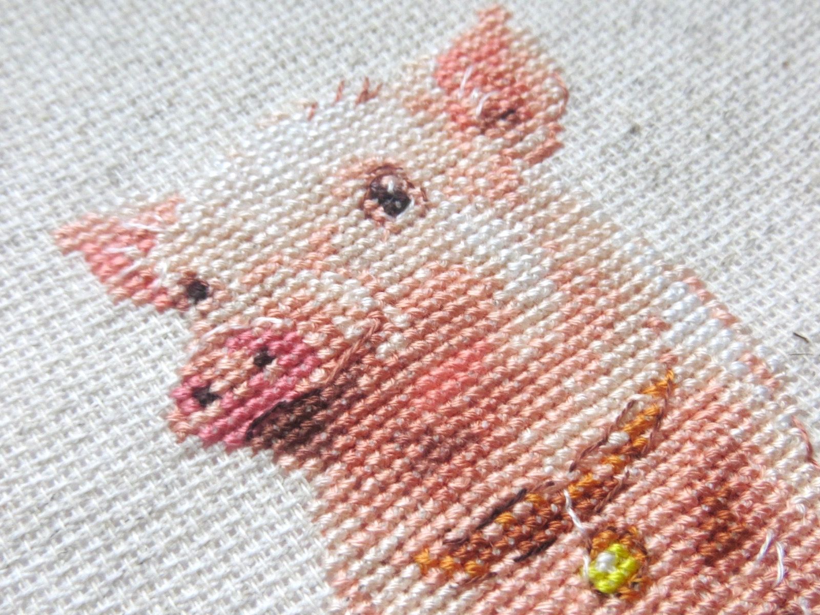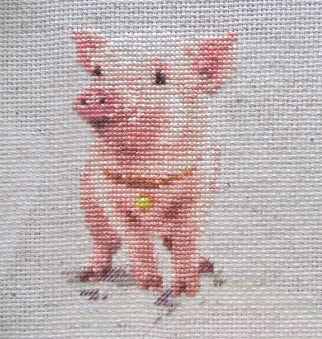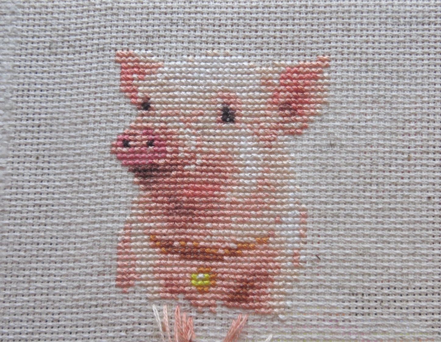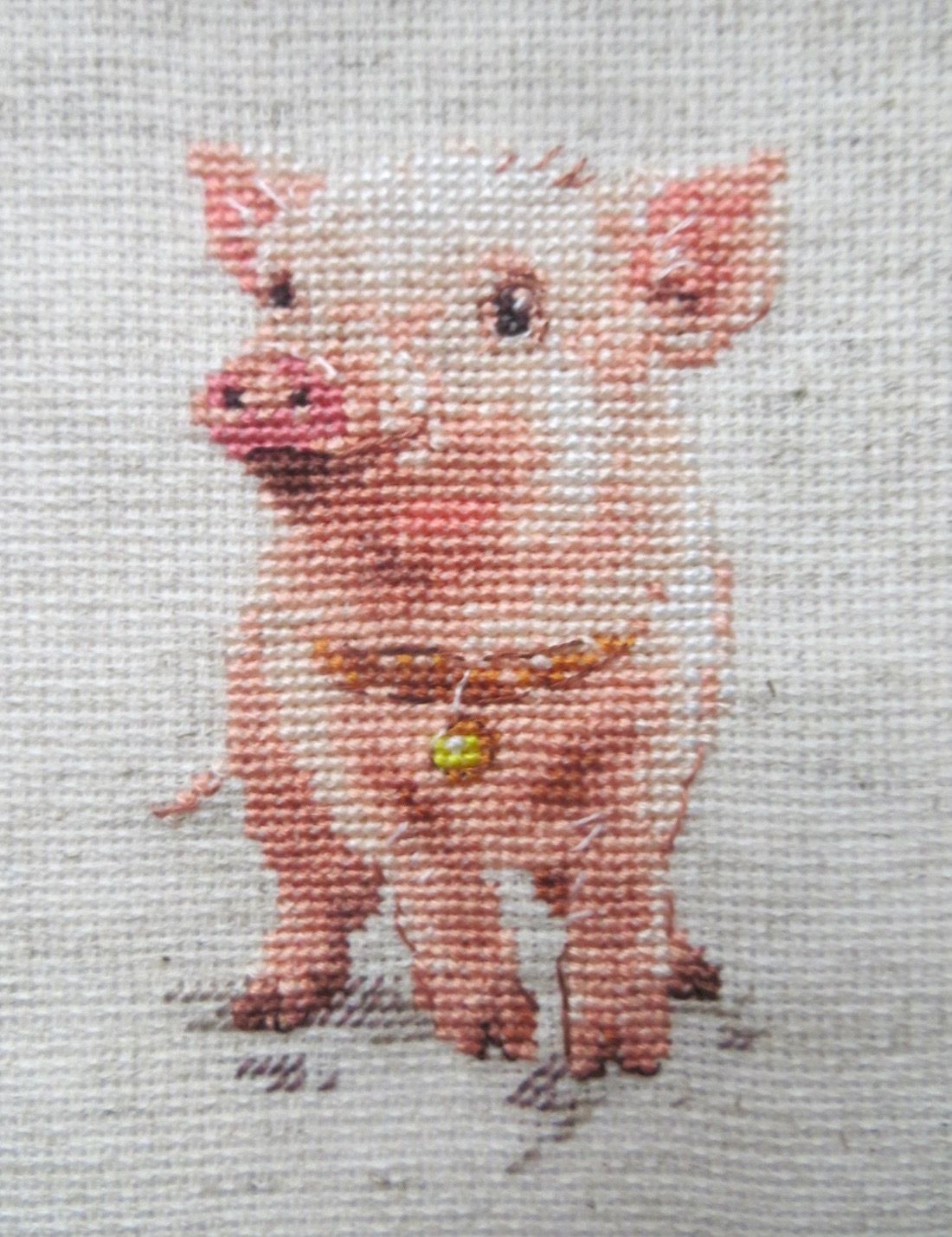 5 ноября 2018 ... а вот и мой поросенок! Из всего хоровода хрюшек, свалившегося на вышивальщиц в преддверии наступающего года Свиньи, мое сердце дрогнуло только при виде хрюнделя от "Алисы". Повелась на его, простите, акварельность и розовые оттенки, оказавшиеся на деле обманом! Вот сравнительно-показательное фото (слева -- обложка набора, справа -- отшив): . Окрас вышитого свинтуса уходит в грязно-серые, отнюдь не в нежно-розовые тона, как будто поросенок перед фотосессией с удовольствием повалялся в луже. Нет слов. чтобы выразить мое разочарование! Вышивается быстро, правда, весь бэк дробный, но поскольку канва льняная, хотя и не равномерка, серединки крестиков легко поддаются тыканию в них острой иголочкой Ниток всех достаточно, однако на второй отшив однозначно не хватит. Оформила в готовую рамочку, дошив пару полукрестиков внизу, чтобы поросенок более гармонично вписался в рамку. Назвала его Хрюн Борисыч Фотографии для гаечки (открываем и закрываем) "Алиса", 0-185 "Хрюша", 6х10 см. Хотела повесить Хрюну Борисычу колокольчик на шейку, но сомневаюсь, не слишком ли вызывающе он будет смотреться. Девочки, посоветуйте, пожалуйста! Некоторые из вас видели вчера этого хрюнделя живьем. Фотографии не для гаечки: Без колокольчика и с ним: И фото "в интерьере" Martha, АлёNка, TheSunniestDay и 18 других сказали спасибо Поделиться сообщением Ссылка на сообщение