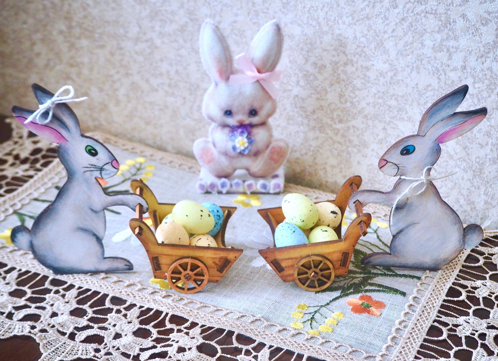 25 апреля 2019 Уважаемые модераторы, все фотографии в этом сообщении не для гаечки! 1. Лежали без дела уже больше года термопереводки на ткань , и вот решила употребить их для украшения сердечек, заодно сделав доброе дело и утилизировав остатки ткани. Сердечки получились далеко не миниатюрными, примерно 20 х 15 см. Мягонькие! 2. Бисерные яйца от "Риолис". Ой, вот взяться или нет за бисероплетение еще раз, я в будущем сто раз подумаю -- так непросто мне дались эти яички, особенно то, что с ягодками Поскольку человек я в бисероплетении темные и несведущий (в анамнезе имеется лишь одно такое яйцо, снесенное сплетенное мной пару лет назад, но процесс тот был легким и понятным), мне необходимо, чтобы в инструкции был расписан каждый шаг, так как непонятно, через какую именно бисерину на каком этапе пропускать нитку с иголкой. Инструкция, конечно, прилагалась, но в ней меня производитель упорно посылал на фиг, то есть тыкал меня носом в схему, а в ней не всегда все было понятно, некоторые элементы пришлось делать методом тыка исключительно по наитию, и сейчас хоть убей удивляюсь, как у меня все же получилось некое подобие листочков и ягодок. Еще мне не нравится то, что видны нитки, соединяющие между собой бисерины, что вроде бы и естественно, ведь это 3D-элементы, а никак не вышитая картина, но факт этот наносит непоправимый урон моему чувству перфекционизма . В общем, решусь ли я когда-либо повторить этот подвиг, пока сомневаюсь. Второе яйцо (то, что зеленое) оказалось попроще и полегче. Производитель предлагал покрасить деревянную заготовку зеленкой , но я уже по сложившейся традиции покрасила оба яйца в золотистый цвет (и пусть все думают, что у меня есть курица, которая несет золотые яйца!) Также покрасила подставки под яйца, но их я приобретала отдельно. 3. Какой же праздник без зайцев? Пусть зайчата и считаются элементом, чуждым нашим обычаям, не думаю, что пара малюток может пошатнуть мою православную веру. Были вот такие деревяшечки , превратившиеся в заячью пару -- девочку и мальчика, заботливо везущими в свои уютные, благоустроенные норки тележки, полные пасхальных яиц. Заготовки раскрасила пастелью, завязала бантики А это коллективные фото героев дня На дальнем плане виднеется прелестная рукотворная курочка, за которую отдельная благодарность Светику и ее знакомой, это чудо сотворившей katushka90, Хозяйка смешных зверей, TheSunniestDay и 29 других сказали спасибо Поделиться сообщением Ссылка на сообщение