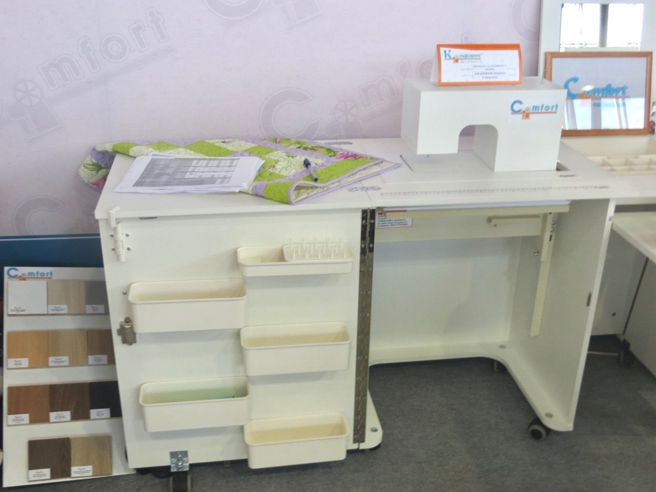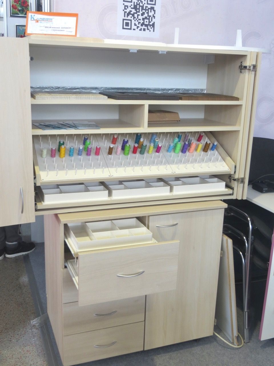 27 сентября 2019 Вот еще несколько фотографий, которые не вошли в альбомы. Это фотки моей мечты -- комнаты для рукоделия На выставке был представлен волшебный шкафчик, который выглядит на самом деле, как настоящий шкаф, и даже закрывается на ключ от посторонних глаз (от мужа, например ). Доброжелательная девушка на стенде мне все объяснила и показала с раскладыванием и закрыванием и с вытаскиванием всех ящичков, куда я с любопытством заглянула. Наверное, это просто счастье иметь такое сокровище у себя дома, куда можно разместить все свои рукодельные штучки, и, самое главное, держать их под замком! У производителя есть не только шкафы, но и столы и тумбочки для рукоделия Lenyska153521, katushka90, оленек и 18 других сказали спасибо Поделиться сообщением Ссылка на сообщение