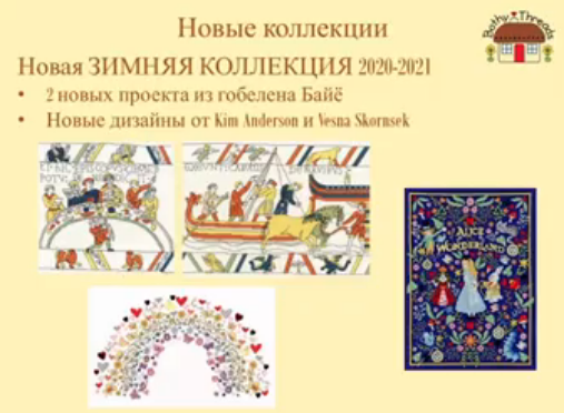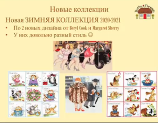 10 ноября 2020 А я с утра смотрю видео-трансляцию компании Gela. К Дню вышивальщиц они с 10 до 19 ч по московскому времени организовали виртуальную выставку «Среда вышивания». Вначале проводились розыгрыши наборов, презентации новинок, но для меня самым интересным оказалось знакомство с представителями зарубежных фирм. Открывали парад прямых трансляций представители Bothy Threads. Я не являюсь их фанатом, но репортаж с владельцами фирмы был очень интересный. Кейт и Джон — супружеская пара, их дочь пошла по стопам родителей и тоже принимает посильное участие в разработке наборов. Мне было любопытно узнать о происхождении названия фирмы. Оказывается когда Кейт и Джон поженились, у родителей Кейт был старый коттедж (такие дома обычно используются для рабочих), который в семье называли «Bothy», что в переводе с шотландского означает «хижина». Позднее этот коттедж стал использоваться для производства и хранения наборов для вышивания, и как-то само собой родилось название «Bothy Threads», то есть буквально «Нитки из хижины». Оказалось, что дизайны с животинками на канве с каплями краске (в простонародье известные как «блохастики») создаются Ханной Дейл, имеющей диплом зоолога Кембриджского университета, а Маргарет Шерри, также входящая в состав дизайнеров, привела недавно на работу в фирму свою дочь. Были представлены новинки. Из домиков в разрезе нас ждет Букингемский дворец с принцем и принцессой и еще вот такие дизайны. Фото нечеткие, так как делала скриншоты прямо с видео. Задавались вопросы по поводу подушек по рисункам Уильяма Морриса. Кейт ответила, что работает над этим, и нас определенно ждут новинки. Из подушек был показан великолепный заяц, который ведущим и по совместительству переводчиком был охарактеризован как «большой полноценный британский заяц». Кстати, в роли переводчика выступал коммерческий директор компании Gela, и мне было немного удивительно, почему для таких ответственных трансляций не пригласили профессионального переводчика. Я понимаю, конечно, что он комм. директор) может не владеть определенной лексикой, но постоянные «эээ», «бэээ», как в передачах А. Малахова, неловкие паузы, выражения типа «блин», «круто» (которые, кстати, в оригинале отсутствовали совсем), неологизмы вроде несуществующего слова «organizator» вместо «organizers», «дизанирование» вместо «создание дизайнов», незнание на русском широко употребляющихся в узких кругах вышивальщиц слов «гобелен», «страмин», перевод выражения «печатный крест» как «дизайн со штампом», фраза «небольшие бисеры», «просто делаешь лонг-стич по кругу» вместо «в инструкции указано вышивать длинный стежок ряд за рядом» плюс бесчисленные грамматические ошибки на английском лично мне резали слух. Ну это у меня так, чисто профессиональное нытье… В год у Bothy Threads выпускается по 4 коллекции, каждая из которых состоит из 20-30 дизайнов, а всего в их багаже уже около 630 разработок. Наши блогеры предложили фирме выпустить храм Василия Блаженного в разрезе, на что Кейт и Джон ответили согласием подумать. Честно говоря, даже не представляю, чтО может получиться из этой затеи Сейчас смотрю трансляцию с директором по продажам компании Zweigart Бастианом Вольманном. Очень симпатичный и харизматичный, на одной из «Формул рукоделия» видела его живьем. (Кстати, он не женат, но сердце его несвободно -- это так, на в