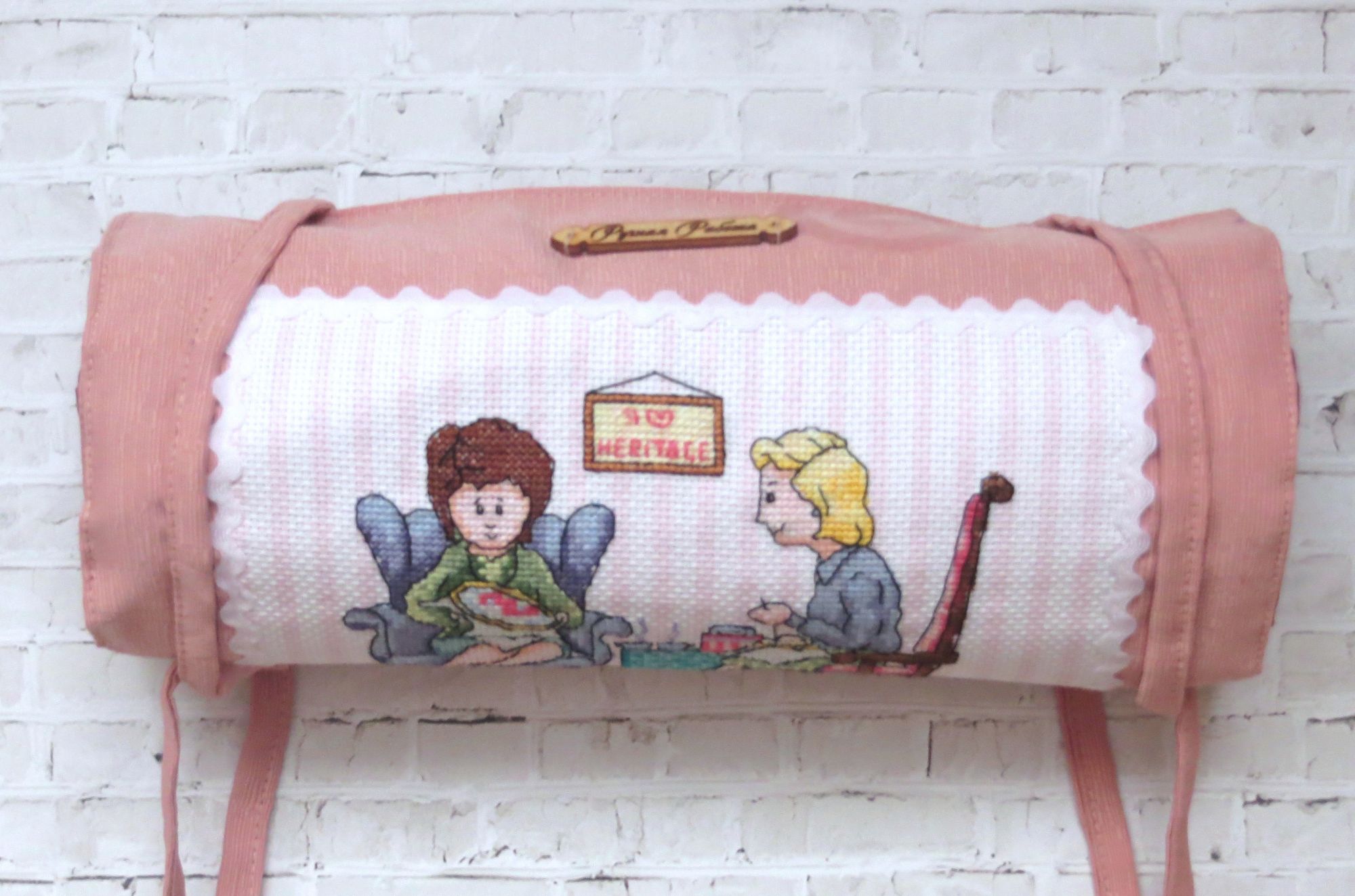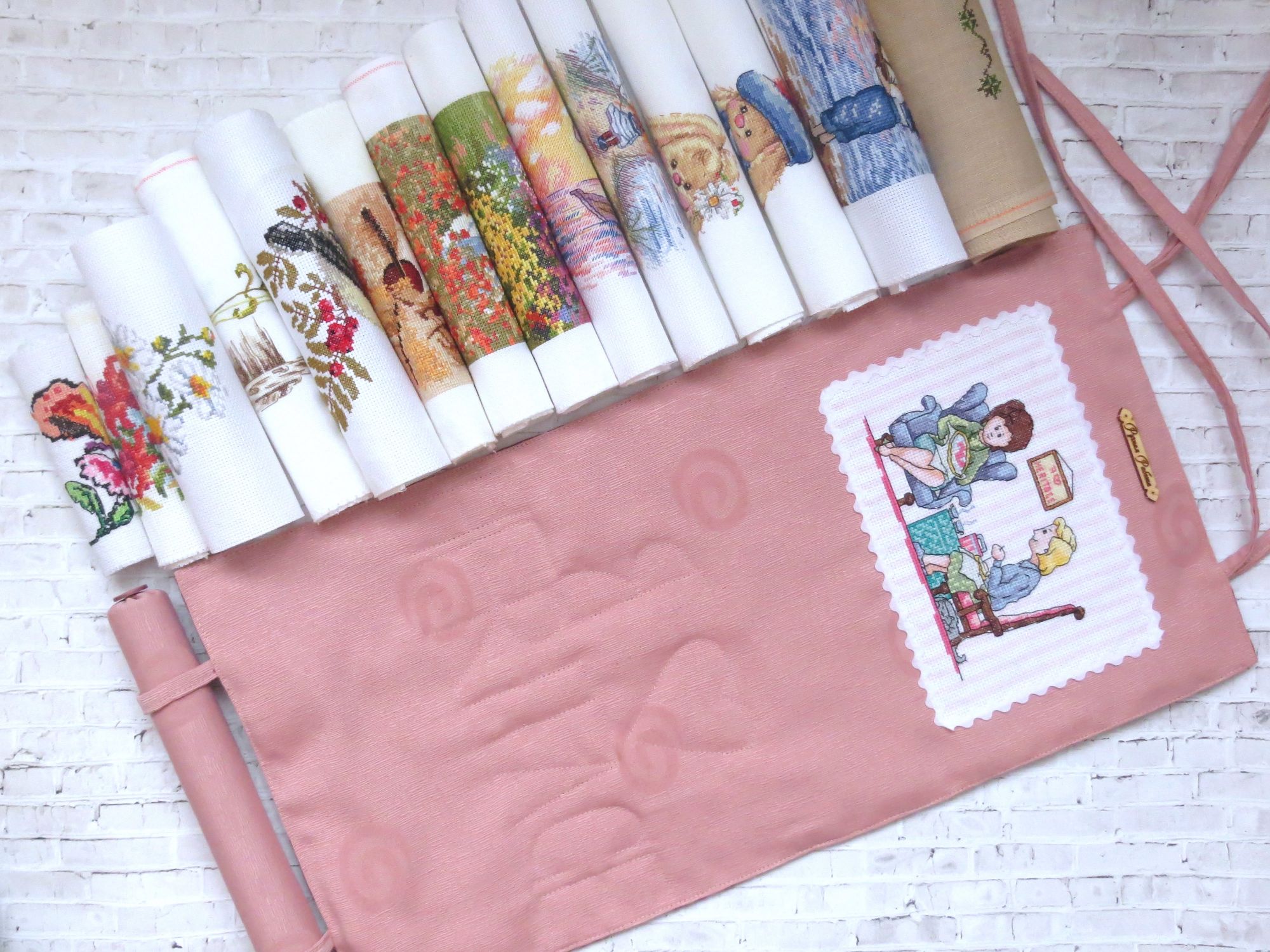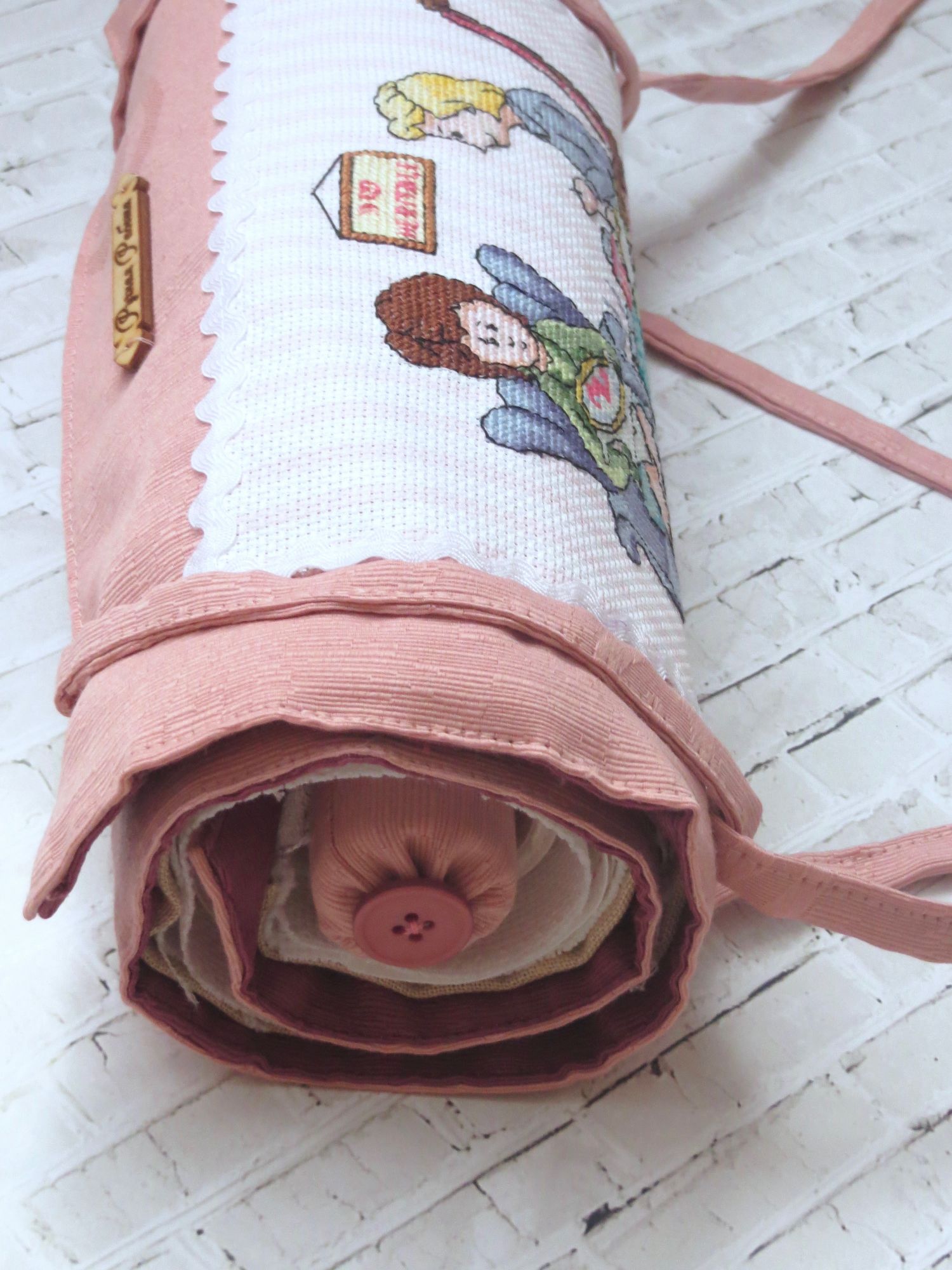 20 января 2021 Все фотографии - не для процесса! Наконец-то собралась с мыслями и оформила вышитых (и вышивающих на картине) дамочек. С самого начала вышивки мне было понятно, чтО я хотела бы видеть в итоге — ролл для вышитых работ, хранящихся сейчас в такой вот папке . Давно на них засматривалась, но на готовые роллы цена запредельная, доходящая иногда до 3000 руб. за штуку. Решила сшить сама, хотя шитье для меня — не самое любимое хобби, мягко говоря . Любимая строчка — это произвольная кривая, по которой и шью Удивительно, но мастер-классов на эту пользующуюся сейчас среди вышивальщиц спросом тему — кот наплакал. В основном все платные, а я сейчас неплатежеспособная, увы... Посмотрела картинки и принялась за дело так, как диктовали условия, а именно: сшить по максимуму просто и только из тех материалов, что были под рукой, ничего дополнительно не покупая. Порывшись в любимых закромах, нарыла два кусочка ткани, оставшихся от пошива платья зайчихи Люси Скрытый текст . Для изнанки ткань пришлось сшивать, так как ее не хватало. По этой же причине валик сделала отдельно, хотя вначале планировала обернуть его тканью ролла и пришить к основанию. Покумекав, сделала валик не на кнопках, а на петлях. На тыльных сторонах следовало бы сделать заглушки. По правилам либо обтягиваются тканью пуговицы, либо кружок картона. Картон я сразу отмела поскольку при стирке он бы просто раскис. И именно поэтому для валика взяла не картонный вкладыш от бумажных полотенец, хотя последнее время усердно собирала именно с этой целью, а полипропиленовую трубу стоимостью 40 руб., что явилось единственной тратой в процессе изготовления ролла. А на боковинах валика просто стянула ткань и пришила пуговицы Вышивку пришила поверх ткани, так было проще. В интернете, конечно, в таких роллах вышивка преимущественно вшивается между отрезами ткани, но у меня ткань не х/б, жутко сыплется, и меня охватила дрожь, когда я представила выкраивание боковин для вшивания вышивки и их сшивание между собой. К тому же на этой ткани очень видна строчка, и получилась бы эдакая лоскутная мозаика. Между лицевой и изнаночной сторонами проложила синтепон. Прочитала, что некоторые пользуются для этой цели обычными хозяйственными салфетками, сшиваемыми по необходимости встык. Подходящей тесьмы или шнурка не нашла, поэтому сшила завязки сама. Строчку решила сделать не привычными ромбами, а надписью «Я Heritage». Поскромничала и из-за неуверенности в том, что получится симпатично, сделала строчку нитками в тон ткани, о чем сейчас немного жалею. Если бы выбрала нитки на тон контрастнее, надпись была бы заметнее. Несмотря на все огрехи, результат греет душу, так как сейчас есть куда положить вышивки. Похоже, глядя на то, как вышивкам тепло и уютно, предпочту их не оформлять, а хранить в ролле Размер ролла 57х29 см без валика. В отдаленных планах — сшить ролл для больших работ, но сейчас я об этом даже не помышляю. nata2017, tavenir, оленек и 23 других сказали спасибо Поделиться сообщением Ссылка на сообщение