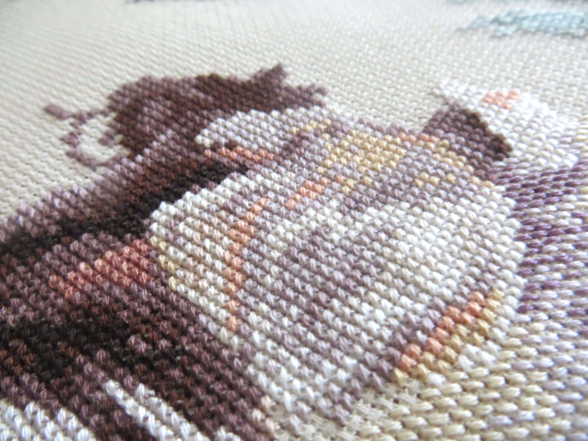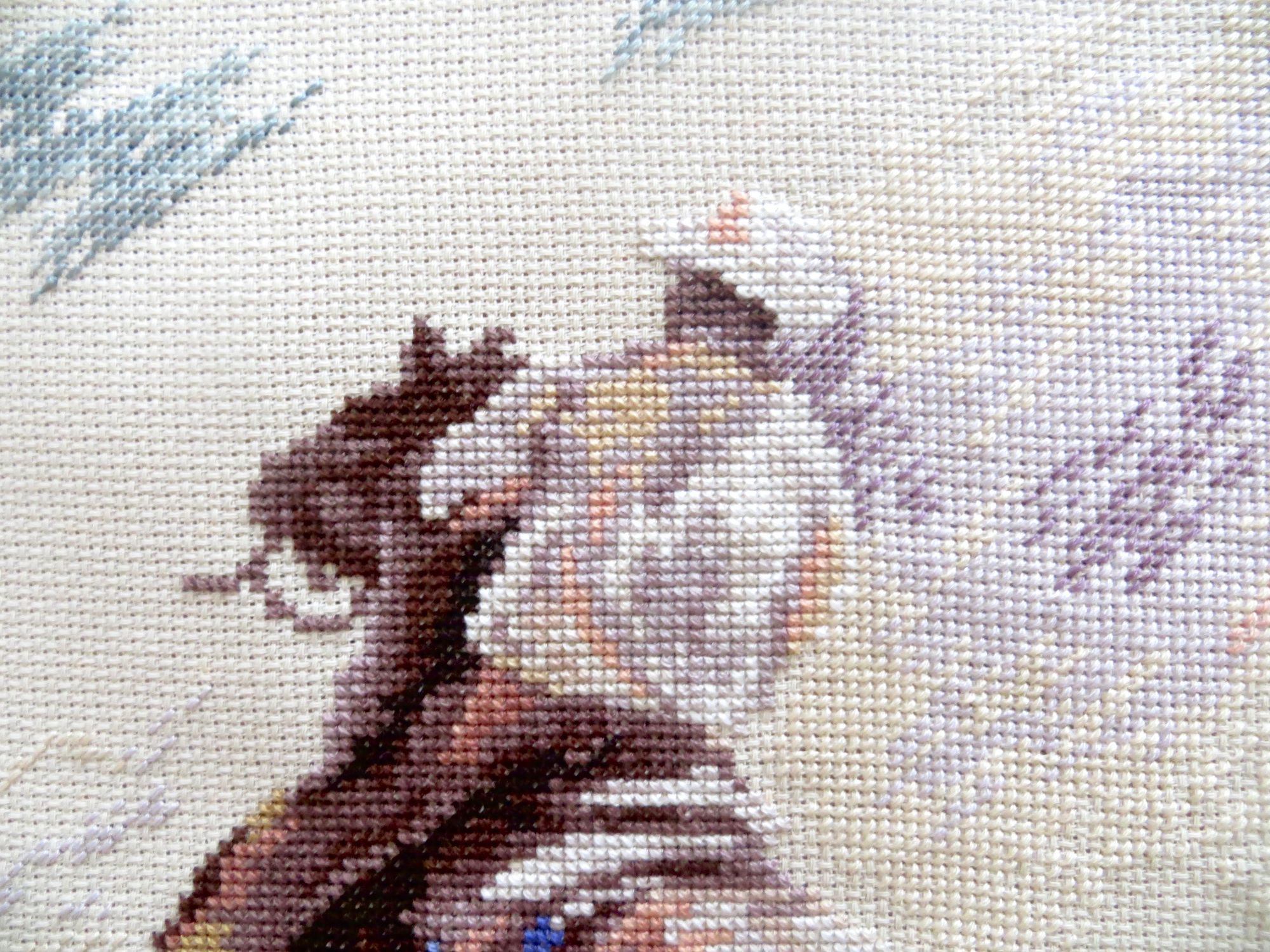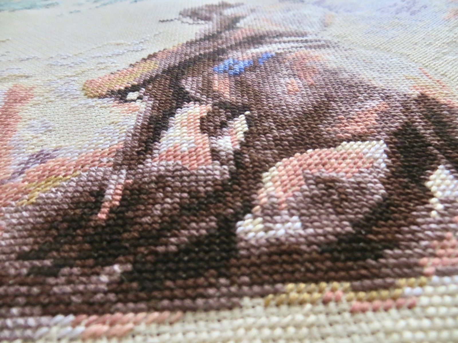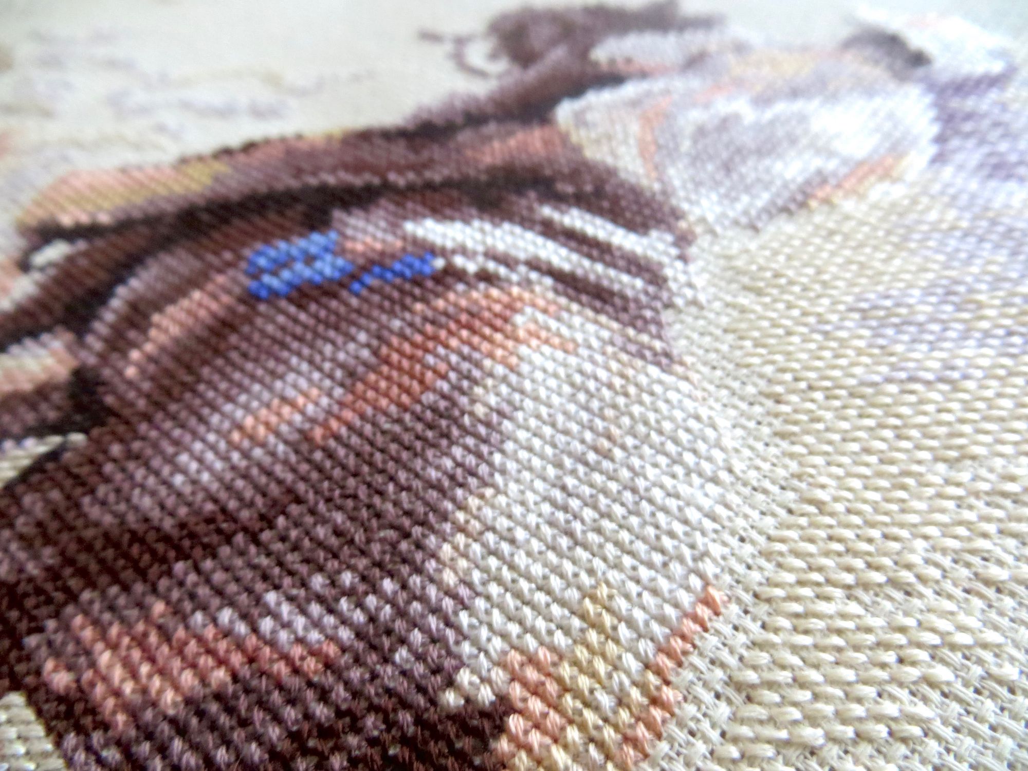 9 октября 2021 Всем добрый субботний день! Хочу показать вышивку, завершенную еще в прошлом месяце и ставшую для меня значимой в плане исполнения загаданного на нее желания. Начну с того, что более года я усиленно искала работу. Ежедневно рассылала пачками резюме, звонила, писала работодателям напрямую, но все безрезультатно. Проверяла, читают ли вообще работодатели отклики на сайте. Оказалось, что прочитанными оказались не более 30%. Откликались же вообще, наверное, в одном случае из 50, и то первым вопросом был вопрос не об опыте работы и квалификации, а, разумеется, о возрасте. После такого "оптимистичного" начала наш разговор быстренько сворачивался по инициативе другой стороны, иногда совсем неделикатным манером. Убедить руководителя о приеме на работу можно лишь в случае личной встречи, а как ее добиться, если на подступах к его телу сидят бездушные работницы сторонних агентств, которые просто тупо следуют вбитым в их бараньи головы стереотипам? От некоторых компаний отказалась сама в результате проведенных собеседований. В вакансии заявлено одно, а на деле оказывается совершенно другое, например, заявляют, что ищут переводчика, а на собеседовании оказывается, что это вакансия букировщика судов (то есть надо быть специалистом в области логистики и перевозок и быть на связи и на привязи к компьютеру 24/7/365, причем они работают даже в такие священные для россиян дни, как Новый год и 8 Марта). Сторонилась также организаций, где существует система штрафов, например, за опоздания на 15 минут или ранний уход с работы на столько же времени, и после трех таких нарушений следует увольнение (а мне к врачам надо часто ходить). Некоторые организации расположены в помещениях-бункерах без окон, где даже в осеннее время душно и темно. Страшно представить, как они там сидят летом («Без окон, без дверей полна горница людей»). Спасибо, в таком бункере я уже насиделась в свое время, чуть не задыхались там. Где-то сразу было видно, что это компания-однодневка, которая в ближайшем будущем прикажет долго жить. Мысль о вышивке на примету в виде лошадки витала давно, и я честно планировала ее воплотить в жизнь, но дальше планов как-то не шло… Была на примете пара лошадок. Они какие-то миленькие, но не более того, сердце не екало, поэтому вышивка все оттягивалась. Мне надо было, чтобы сюжет так торкнул, чтобы искры из глаз, огонь из ушей, пыль из-под копыт! И вот чудо свершилось! Лошадь мечты, видимо, у каждого своя. Свою я увидела здесь, на сайте, и моментально влюбилась – столько в этом дизайне силы, мощи, энергии, которая так и брызжет в каждом крестике! Набор купила в одночасье, потом выжидала несколько дней до нужного лунного дня. Еле дождалась, так хотелось поскорее начать! Между тем развесила ниточки на органайзер и даже заправила все иголочки. Долго и мучительно подыскивала нужную равномерку. Вначале планировала шить на ней, так как зашивка неполная, и даже после долгих сомнений и терзаний (долго пыталась попасть в цвет родной канвы. Заодно поблагодарю Светика СветланаМ за советы ) попробовала вышить кусочек, но что-то пошло не так… Незашитое пространство, конечно, смотрится на равномерке более выигрышно, чем на канве, но вот полукрест на ней совершенно потерялся. Исчезло ощущение вьющейся клубом пыли и движения, которое удачно передавалось на канве, лучше держа