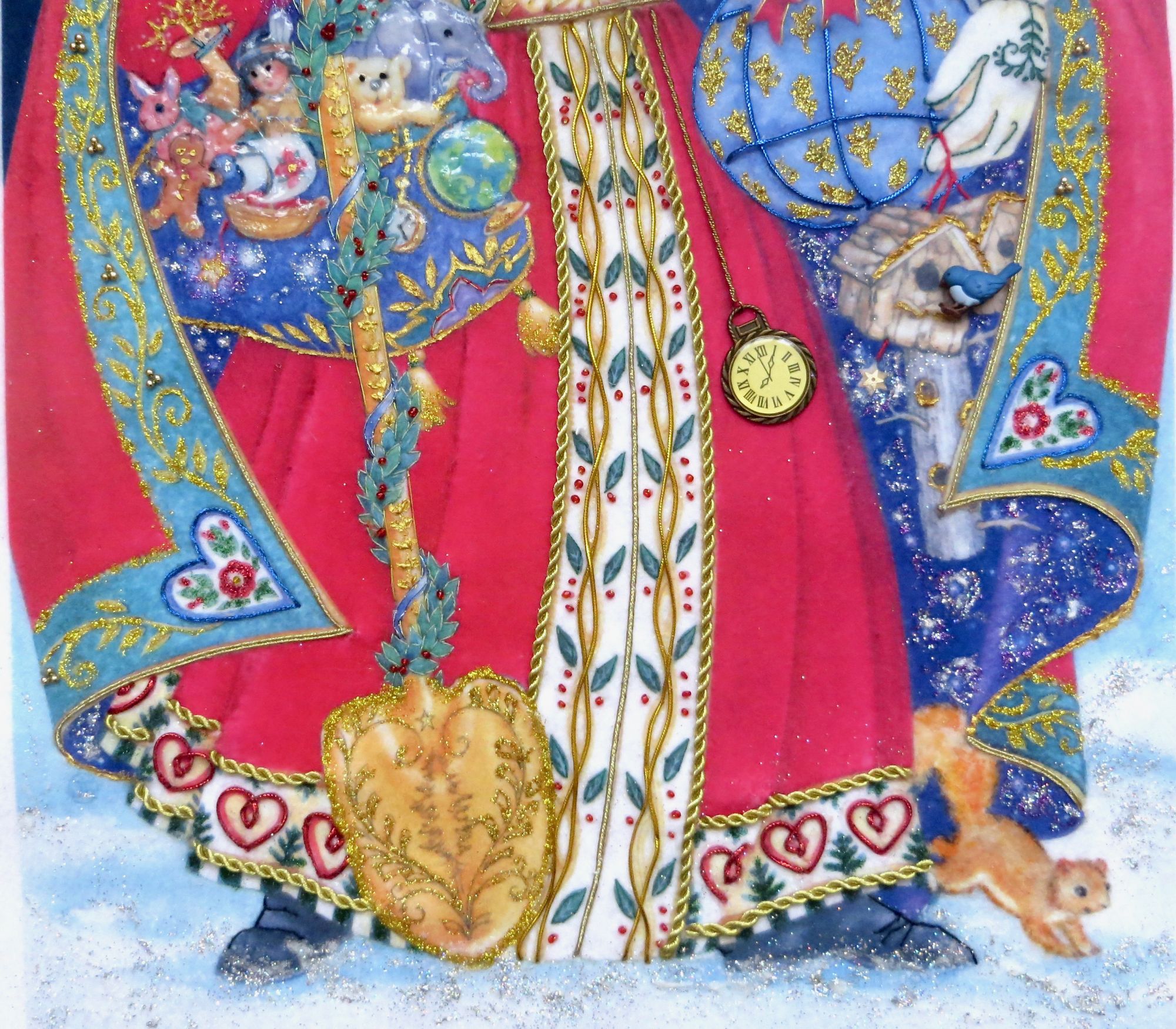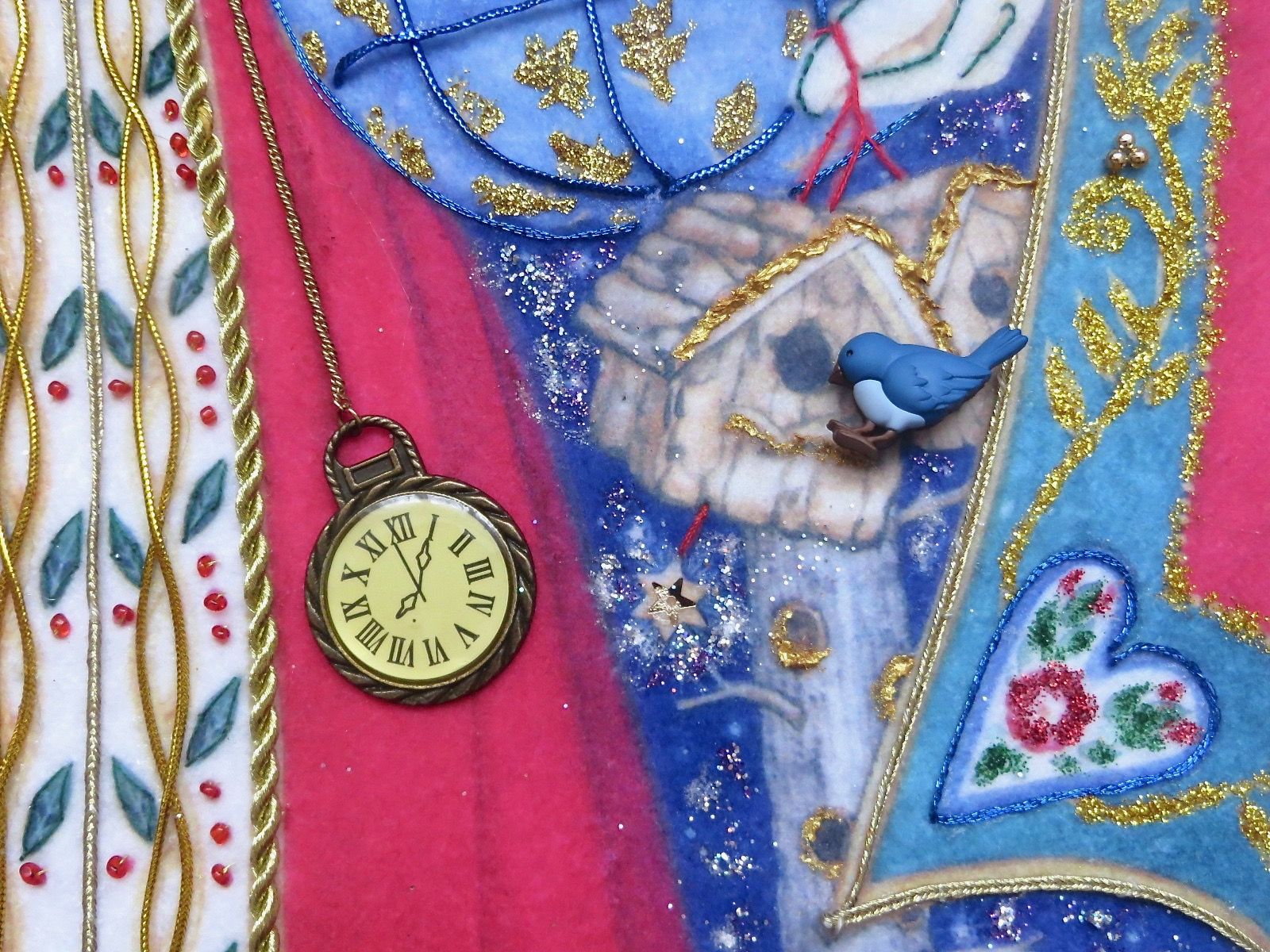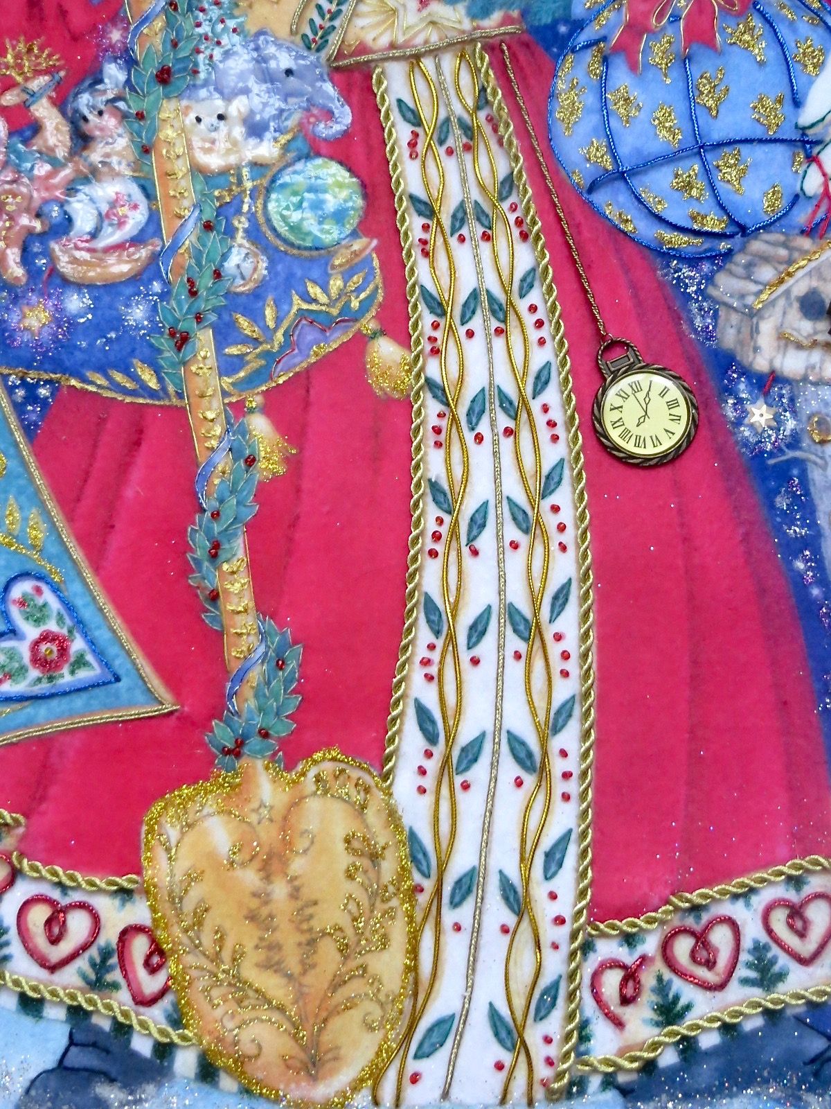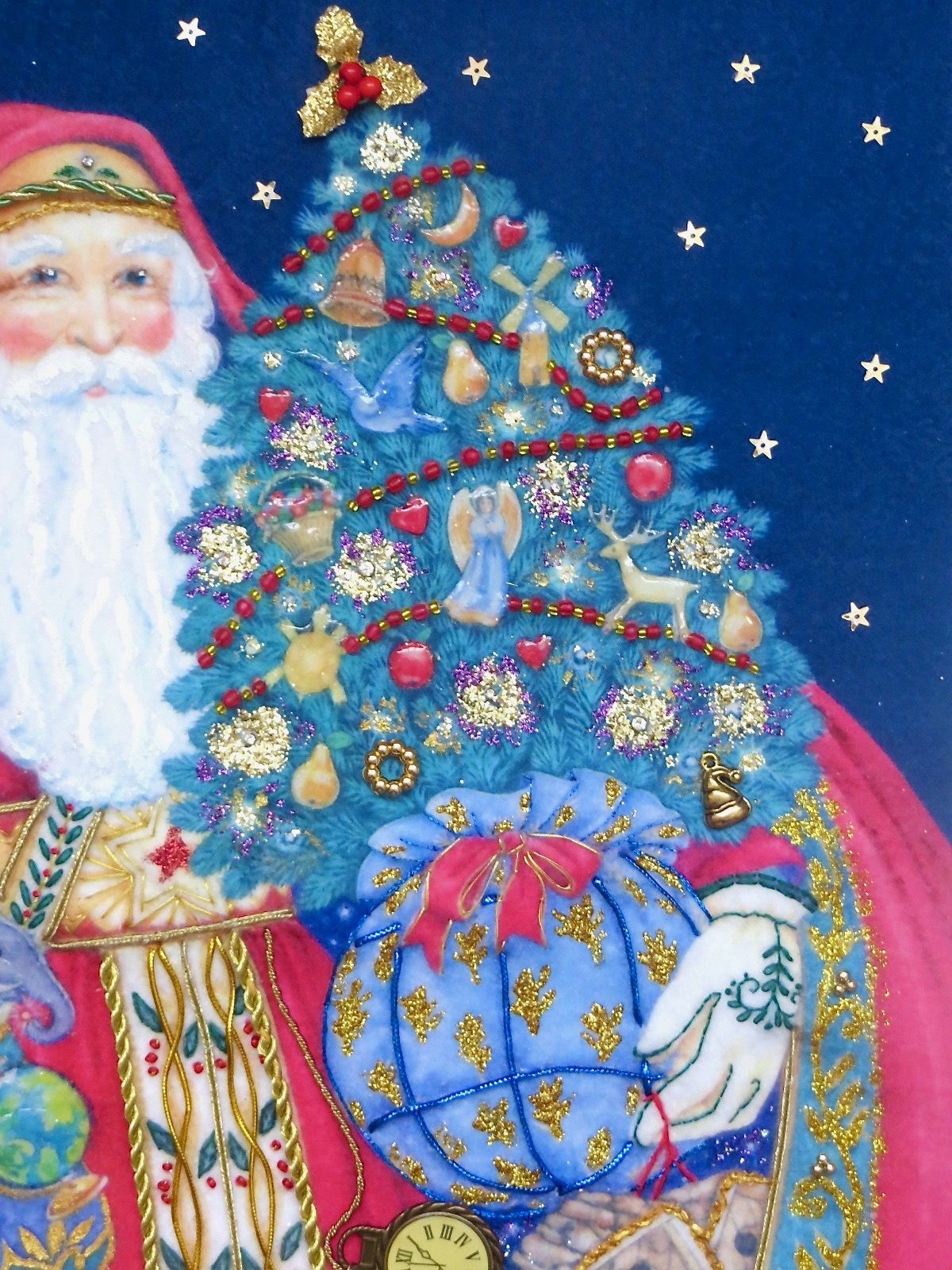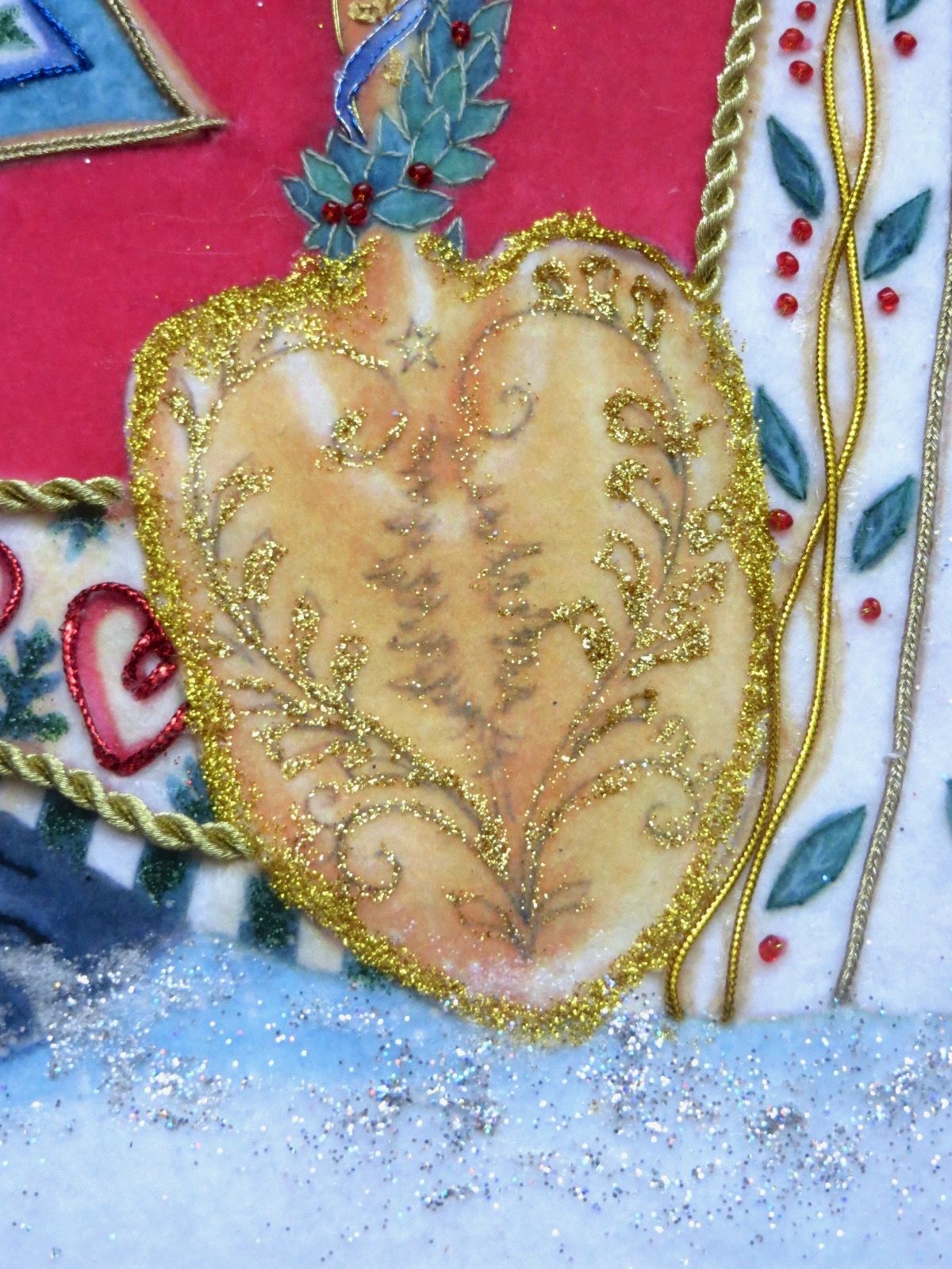 21 ноября 2021 А я принесла Дедушку Мороза! Немного не подгадала с рождением к официальному Дню рождения 18 ноября , ну да ничего, у меня будет 21 ноября . При декорировании использовала 5 видов шнуров, блестки разных мастей и видов, шармики, пастель, цветные карандаши, мулине, глиттер, бисер, бусины, пайетки, цепочки, краски акриловые и для ткани. На накидку пришила бусины, расписала глиттером, пришила шнурок в виде сердечка. На полы шубы пришила декоративные шнуры, вышила зеленые листочки по контуру, пришила бисер, немного прошлась бэком по верху ботинок. Лежал у меня много лет китайский некалиброванный бисер, и здесь его это отрицательное качество, разные размер, очень пригодилось (наконец-то!). У игрушек сделала повыразительнее глазки с помощью фрузелков, покрыла их 3D гелем для объема. Подправила елочку, добавив глиттера и шармиков, расшила мешок На скворечник посадила птичку, и картинка сразу ожила. И какой же Дед без часов, ведь надо вовремя успеть поздравить всех с праздником и раздать подарки! Расписала лопату глиттером и блестками (боже, как бедный дед умудряется все это удерживать в руках! ), на черенке вышила контуры листочков и пришила бисер-ягодки. Белочку сначала была мысль вышить, но потом передумала и просто подкрасила акварельными карандашами. Снежок украсила блестками. Надо видеть как он просто сумасшедше блестит и переливается, особенно вечером при искусственном освещении! Жаль, что фотографии это в полной мере не передают. Верх и низ и целиком Дальше была сборка, на которую потратила очень много времени, и все из-за того, что для того, чтобы подвесить панно на палочку, производитель предлагал с верха картинки для подвесов откромсать ножницами синий фетр Обрезанная картинка мне нравилась меньше, тем более что отрезать нужно было не меньше 5 см. Тогда я решила покрасить белый фетр, и начались эксперименты с краской, длившиеся почти целый день, настолько сложно было угадать с цветом. Красила на 3 раза., чтобы добиться более или менее совпадающего оттенка. Еще и палочку надо было покрасить. Затем сделала из мулине с помощью кординга шнурок-подвес, бантики и кисточки. Итог перед вами. Было Стало Я очень довольна результатом Панно внушительного размера получилось ярким, радующим взрывом красок, как и положено праздничному новогоднему дизайну. Спасибо Dimensions за восхитительный принт, действительно потребовавший применения фантазии и хомячьих запасов, конечно! ОльгаТольна, Гало4ка, irisheckin и 15 других сказали спасибо Поделиться сообщением Ссылка на сообщение