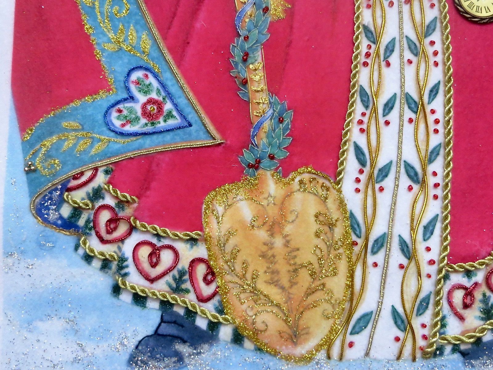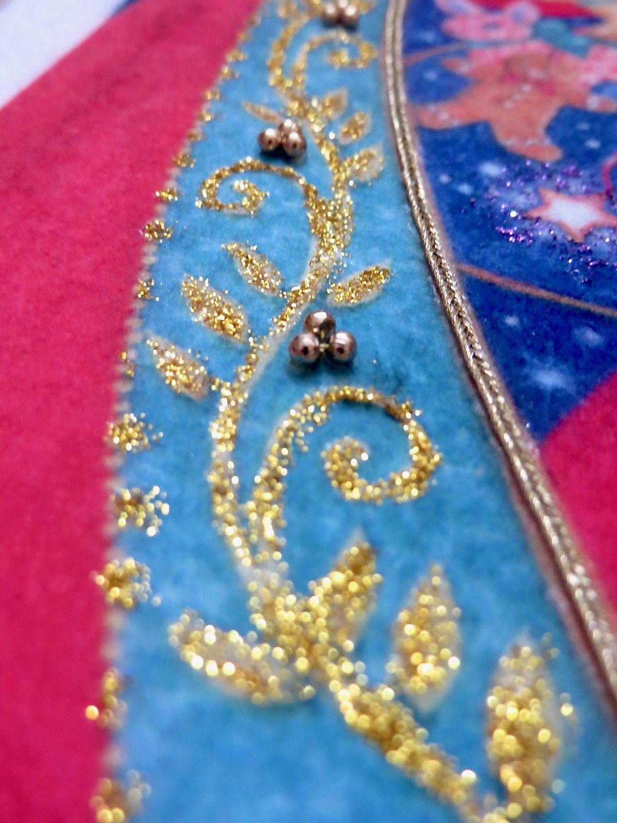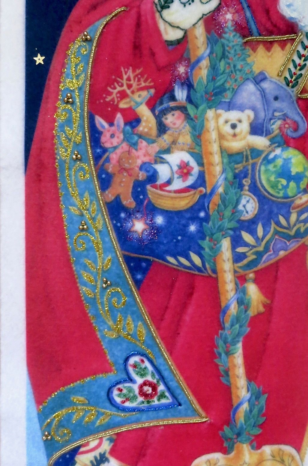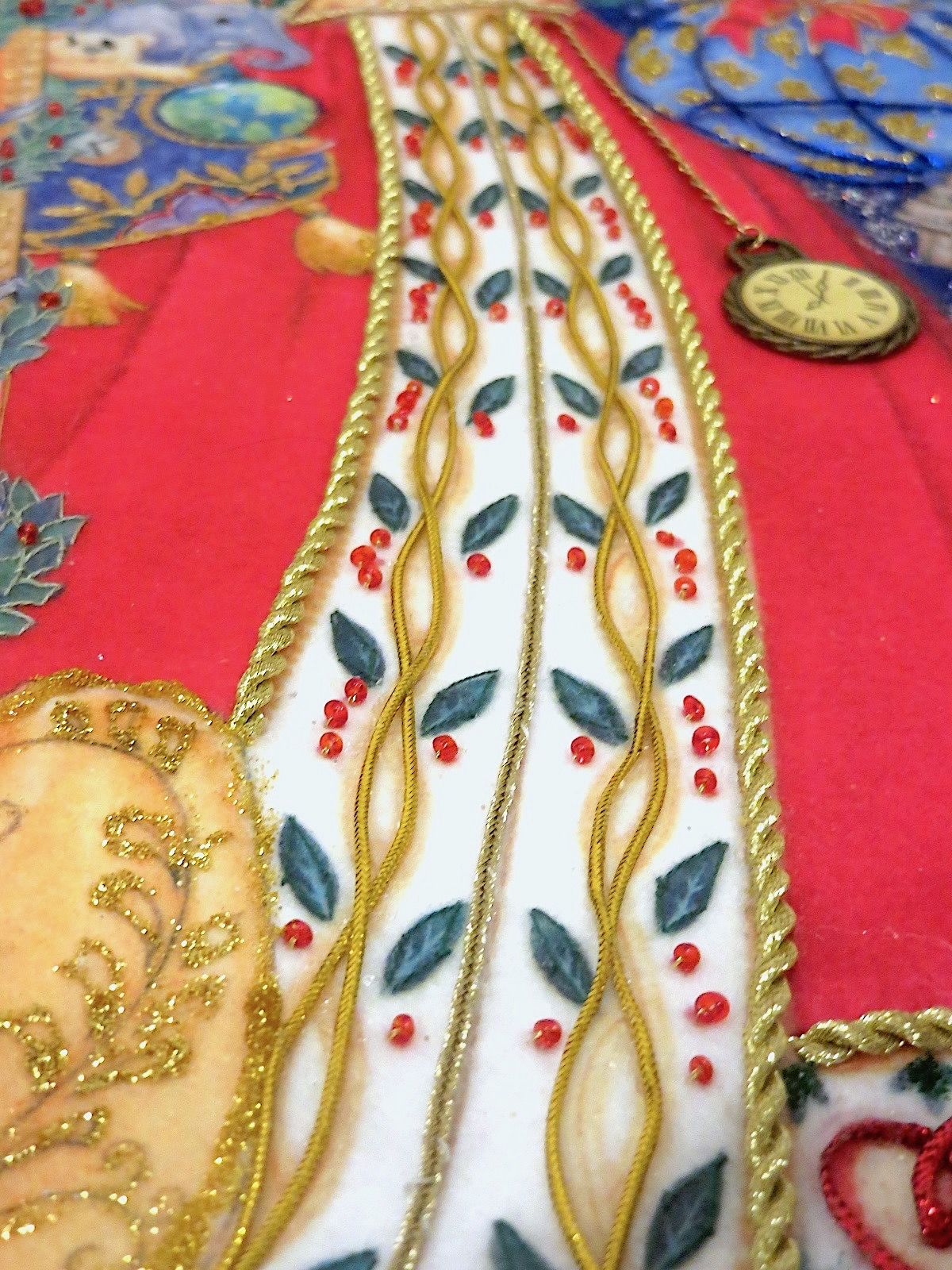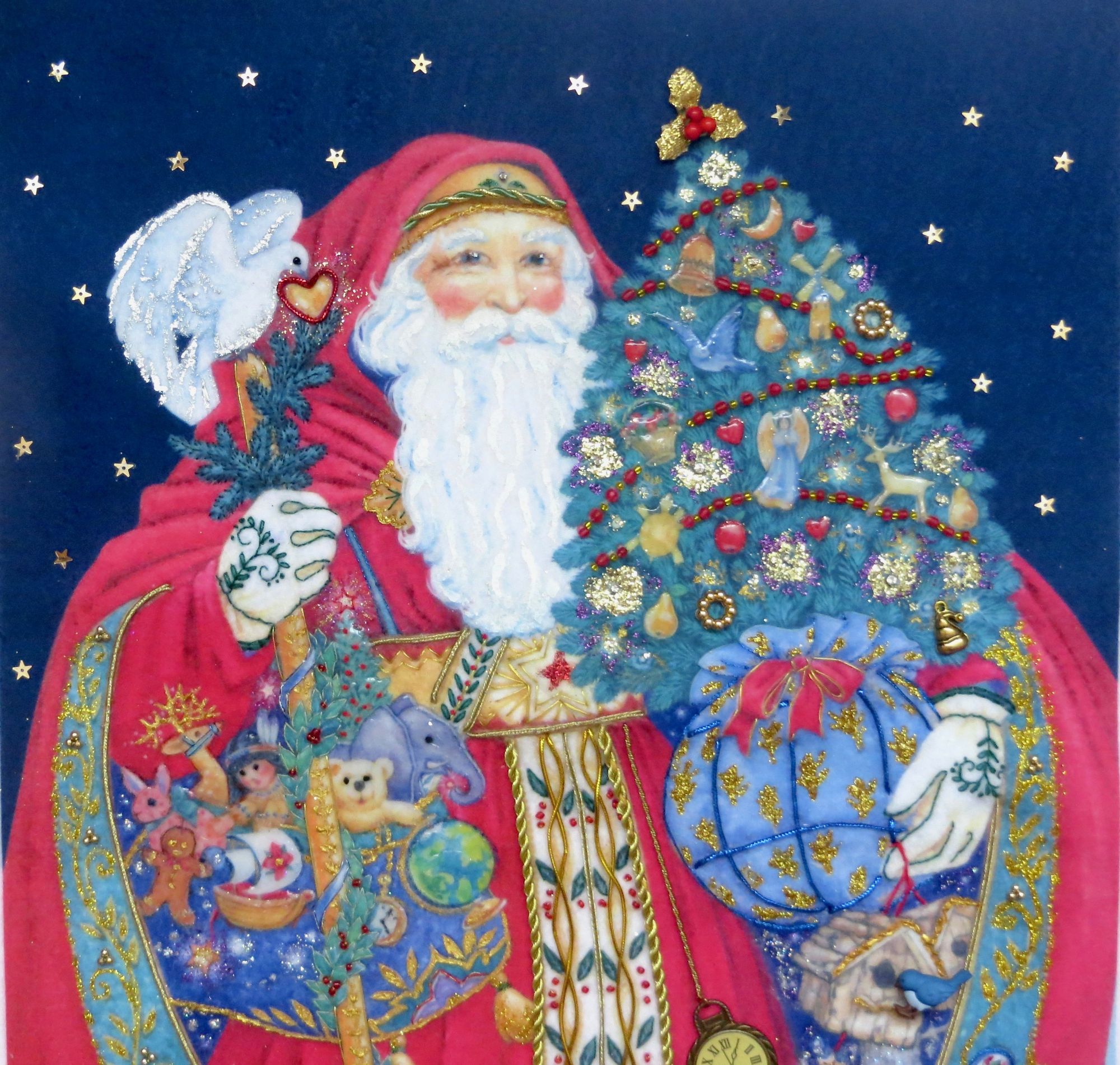 21 ноября 2021 А я принесла Дедушку Мороза! Немного не подгадала с рождением к официальному Дню рождения 18 ноября , ну да ничего, у меня будет 21 ноября . При декорировании использовала 5 видов шнуров, блестки разных мастей и видов, шармики, пастель, цветные карандаши, мулине, глиттер, бисер, бусины, пайетки, цепочки, краски акриловые и для ткани. На накидку пришила бусины, расписала глиттером, пришила шнурок в виде сердечка. На полы шубы пришила декоративные шнуры, вышила зеленые листочки по контуру, пришила бисер, немного прошлась бэком по верху ботинок. Лежал у меня много лет китайский некалиброванный бисер, и здесь его это отрицательное качество, разные размер, очень пригодилось (наконец-то!). У игрушек сделала повыразительнее глазки с помощью фрузелков, покрыла их 3D гелем для объема. Подправила елочку, добавив глиттера и шармиков, расшила мешок На скворечник посадила птичку, и картинка сразу ожила. И какой же Дед без часов, ведь надо вовремя успеть поздравить всех с праздником и раздать подарки! Расписала лопату глиттером и блестками (боже, как бедный дед умудряется все это удерживать в руках! ), на черенке вышила контуры листочков и пришила бисер-ягодки. Белочку сначала была мысль вышить, но потом передумала и просто подкрасила акварельными карандашами. Снежок украсила блестками. Надо видеть как он просто сумасшедше блестит и переливается, особенно вечером при искусственном освещении! Жаль, что фотографии это в полной мере не передают. Верх и низ и целиком Дальше была сборка, на которую потратила очень много времени, и все из-за того, что для того, чтобы подвесить панно на палочку, производитель предлагал с верха картинки для подвесов откромсать ножницами синий фетр Обрезанная картинка мне нравилась меньше, тем более что отрезать нужно было не меньше 5 см. Тогда я решила покрасить белый фетр, и начались эксперименты с краской, длившиеся почти целый день, настолько сложно было угадать с цветом. Красила на 3 раза., чтобы добиться более или менее совпадающего оттенка. Еще и палочку надо было покрасить. Затем сделала из мулине с помощью кординга шнурок-подвес, бантики и кисточки. Итог перед вами. Было Стало Я очень довольна результатом Панно внушительного размера получилось ярким, радующим взрывом красок, как и положено праздничному новогоднему дизайну. Спасибо Dimensions за восхитительный принт, действительно потребовавший применения фантазии и хомячьих запасов, конечно! ОльгаТольна, Гало4ка, irisheckin и 15 других сказали спасибо Поделиться сообщением Ссылка на сообщение
