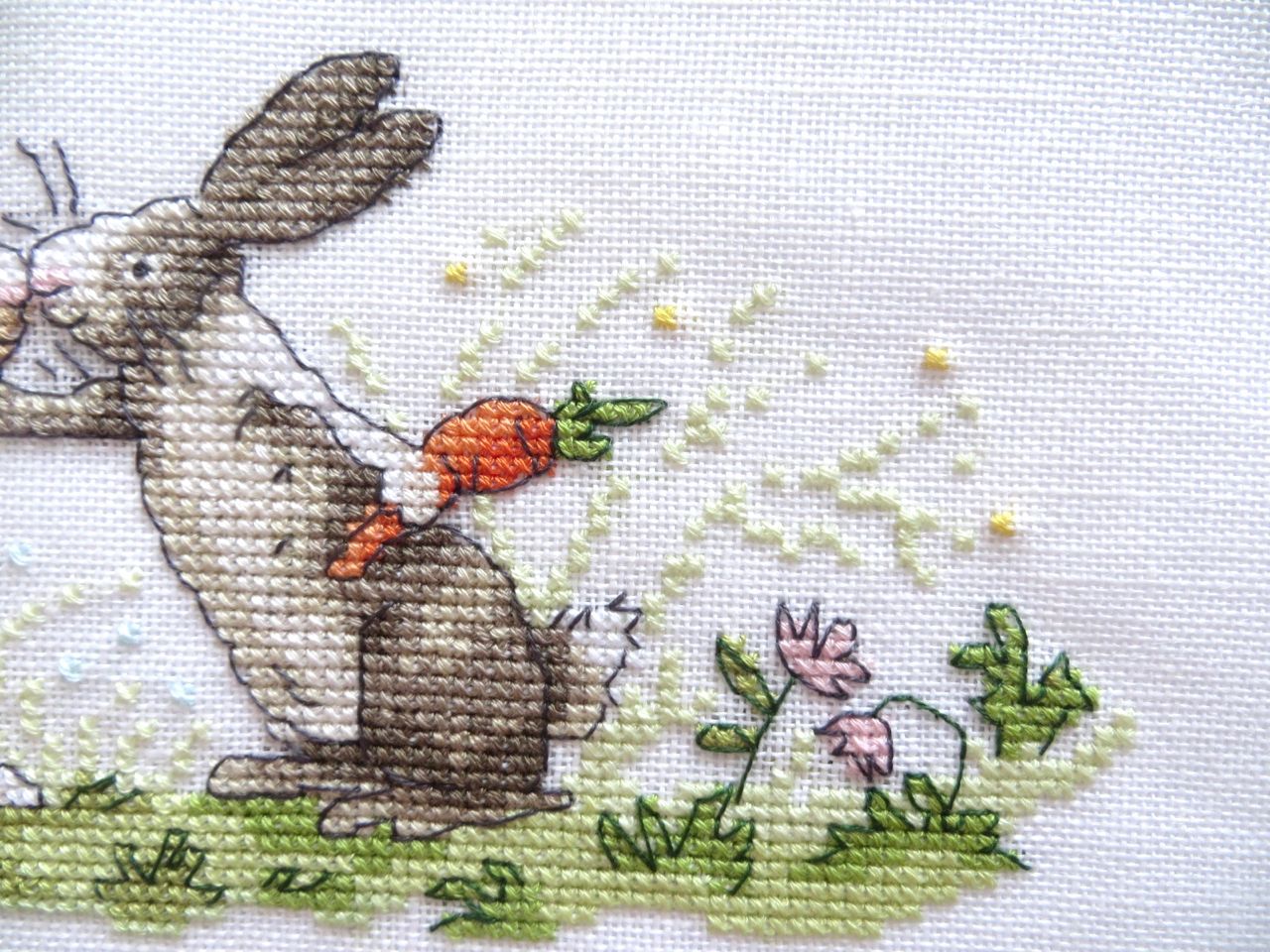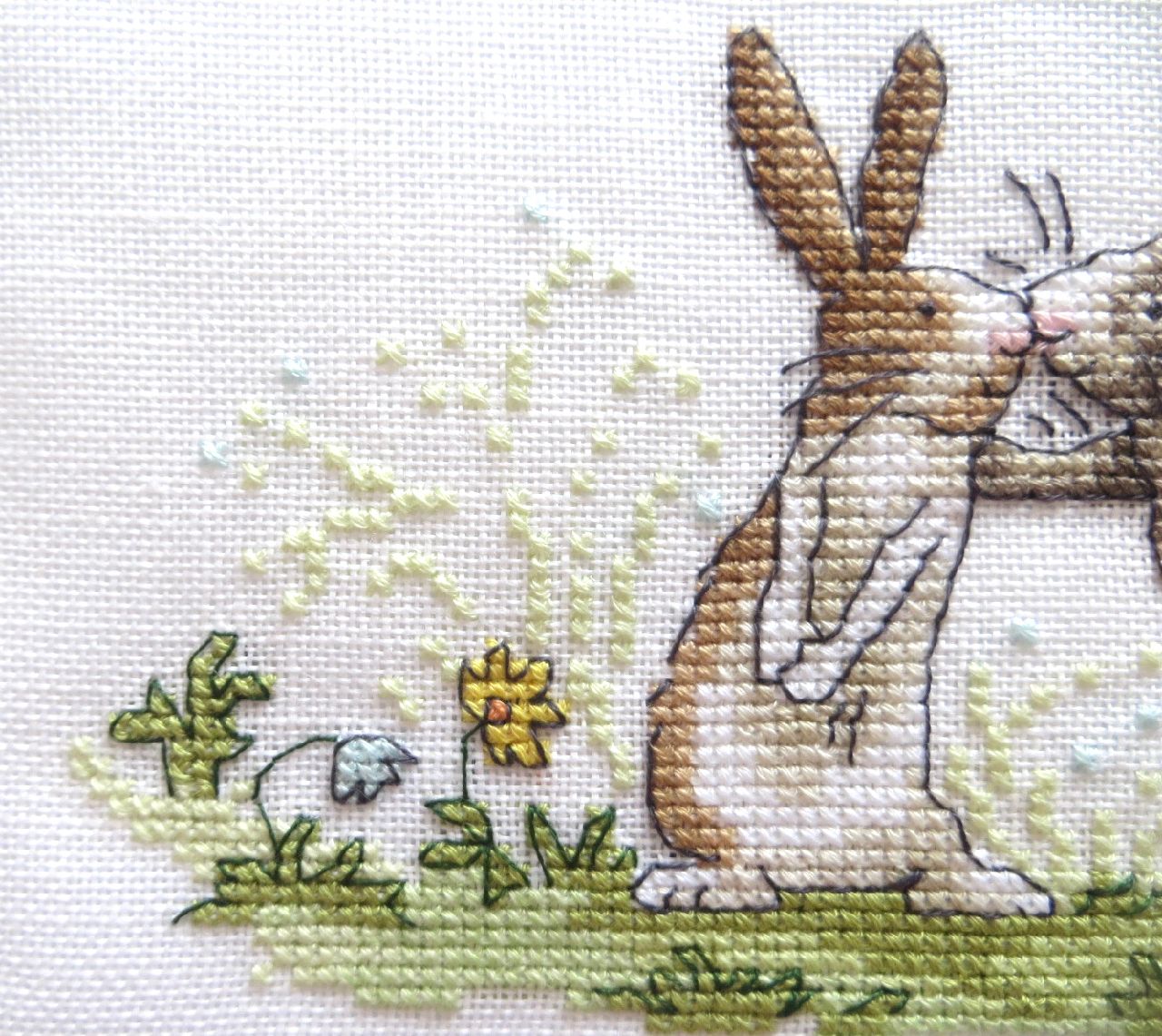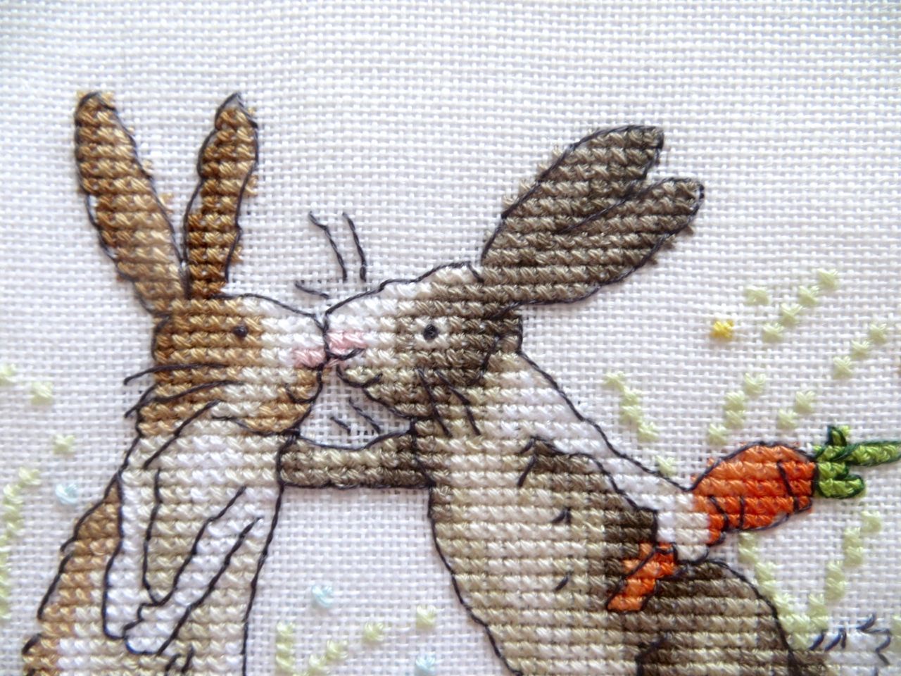 13 июня 2022 Доброго июньского дня всем! Все фото, кроме тех, что с оформлением, — для нового процесса Bothy Threads XAJ3, Some Bunny to Love. Им я открываю у себя сезон зайцев, о котором давно мечтала, а тут как нельзя кстати подвернулась возможность вышить этих чудесных ушастиков. Картинка очень трогательная, славная, милая! Глядя на нее, вспоминаешь детство и уютные, добрые сказки. Зайчики эти запечатлены в период ухаживания. Потом у них будет свадьба и куча деток (у Bothy Threads есть еще сюжеты родителей-зайцев с маленькими зайчатами). Примечательно, что на обложке набора превью дано на равномерке, а в набор вложена Аида. Половина цветов мулине — из новой палитры, их даже идентифицировать затруднительно. Цвета очень летние, сочные и в то же время нежные. Особенно порадовали зеленые оттенки сочной весенней травки. Для вышивки взяла равномерку Lugana 25 каунта, поэтому по размеру мои зайчики чуть больше заявленных 8х12 см. У Светика подсмотрела идею отзеркаливания правой части схемы. Мне понравилось, что зайчики будут находиться в центре лужайки, а не смещены влево, как на обложке. Кроме того, без увеличения размера дизайн был бы слишком мелким для оформления, согласно своей задумке, на крышку от использованной почтовой коробки Сразу оговорюсь, что задумка получилась не вполне удачной, так как коробка уже давно подверглась обряду обрезания, и края крышки оказались неровные. Вышила за 5 вечеров по будням, а оформляла больше недели. Шить не люблю, поэтому каждый раз собиралась с мыслями. Усугубляло положение и то, что чехол на коробку хотела съемный, чтобы можно было стирать. Нигде таких выкроек не видела (да и не искала), придумывала по ходу дела сама. Вот так выглядит часть чехла. Конечно, кое-где пришлось воспользоваться специальной хемлайновской двусторонней липкой лентой для тканей, иначе закрепить чехол сзади коробки было бы невозможно, но вся конструкция легко разбирается, стирается и собирается снова. При сборке внутри коробки неожиданно, в качестве приятного дополнения, образовался кармашек. Ткань специально не покупала, взяла ту, что была в запасе. Под овал с зайчиками подложила наполнитель, и вышивка получилась объемной. Фотографировать коробку оказалось крайне неблагодарным делом. Косяки вылезают мгновенно тут и там, вышивка кажется до безобразия мятой, а сам коробка — кривой и косой. Выражаю огромную благодарность за советы и поддержку Светику @SvetlanaM и Насте @Ivi Спасибо огромное, девочки!! Если кому-то интересно имя художника этих чудесных зайчат, — это Анита Джерам. Она родилась в английском г. Портсмут. После школы работала на фабрике по производству хрустящего картофеля, а также помощником в приюте для собак. Затем переехала в Манчестер, где выучилась на иллюстратора, и сейчас известна благодаря иллюстрациям к популярным детским книжкам. В настоящее время проживает на морском побережье в Северной Ирландии вместе со своим мужем, детьми и домашними животными. (Имя дизайнера, как и в случае с Heritage Crafts, остается неизвестным. Это кто-то из команды Bothy Threads, но точного имени я не нашла). На сайте Bothy Threads можно посмотреть фотографию Аниты и остальные дизайны зайками (и не только) по ее рисункам. https://www.bothythreads.com/shop/kits/artists/anita-jeram Судя по всему, двое зайцев, которых я вышила, успешно поженились и родили кучу детишек в количестве шести штук! Ivi, PrimaN, оленек и 17 других