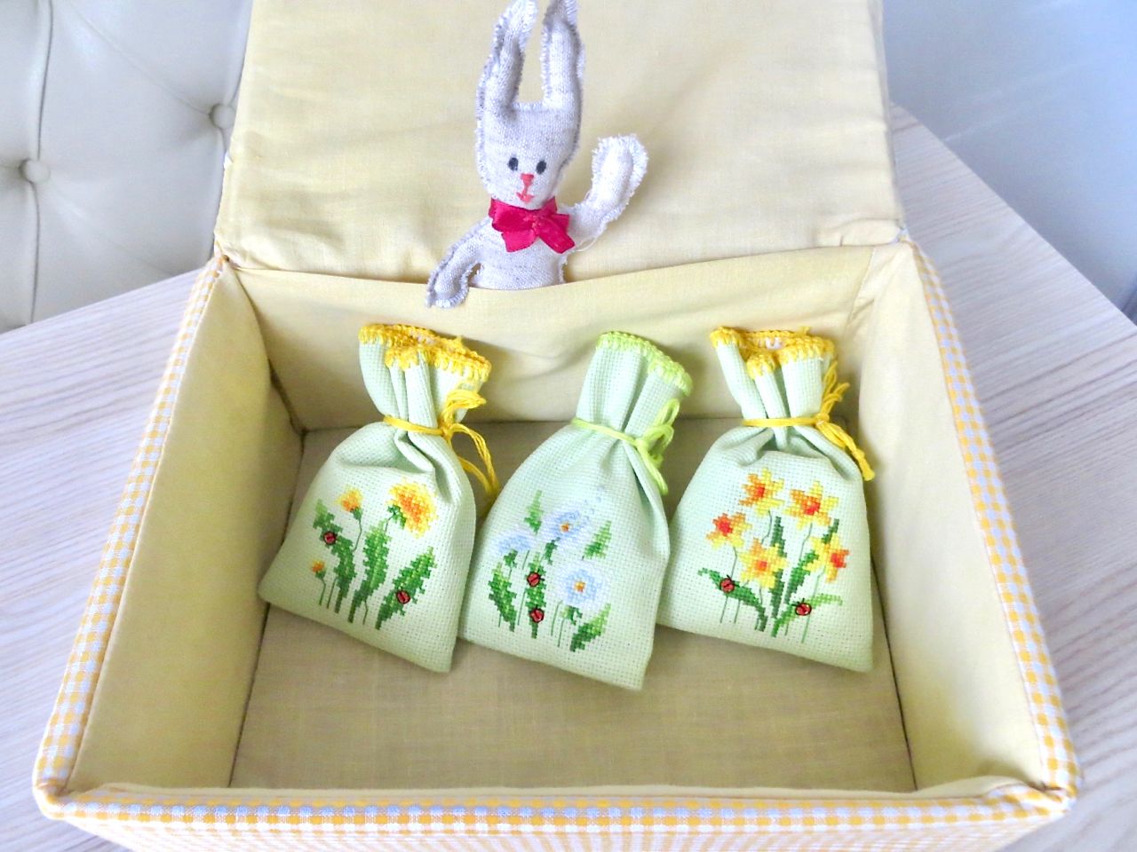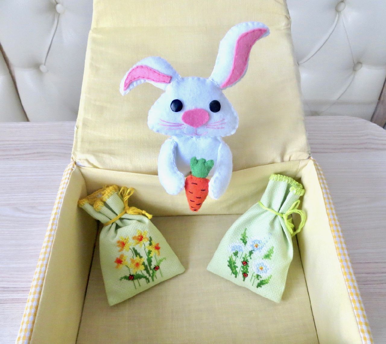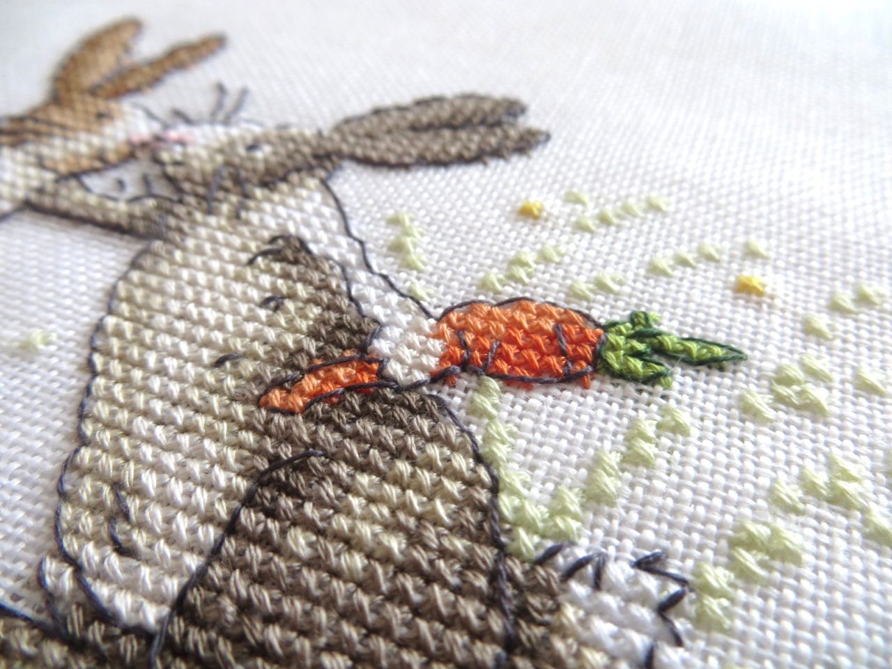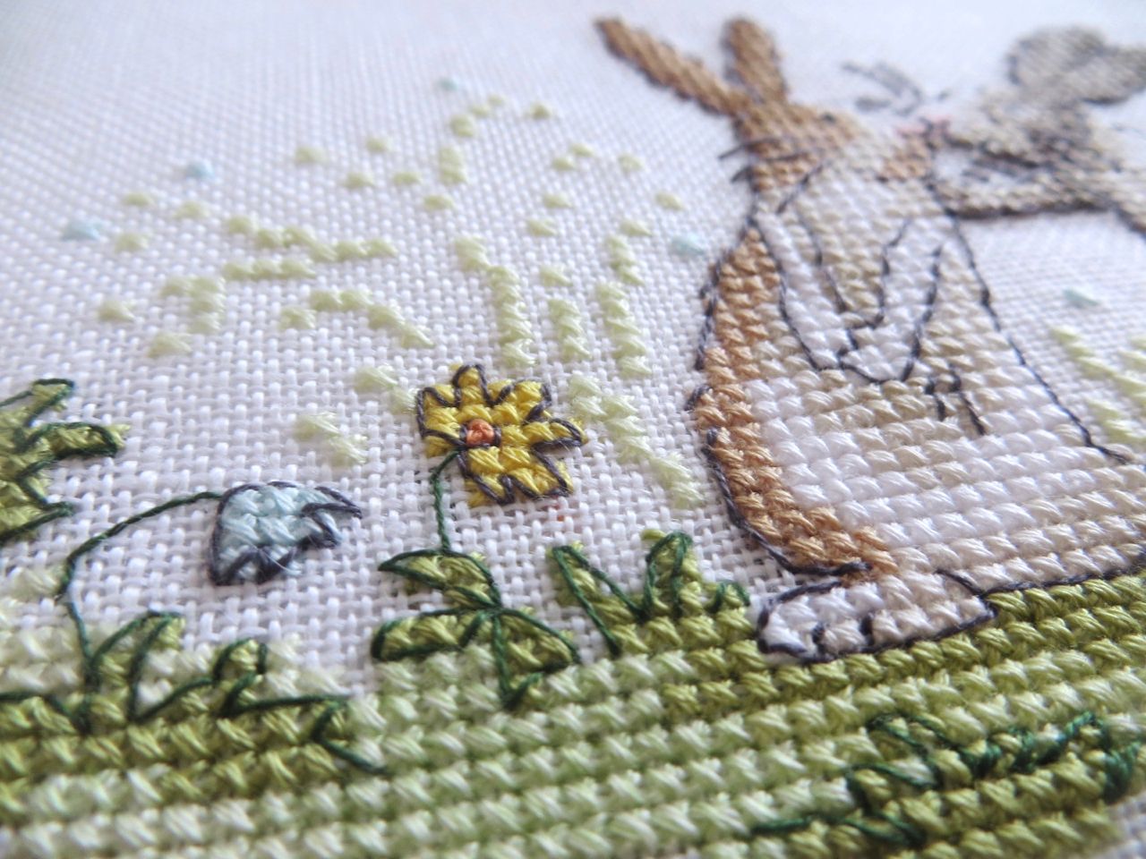 13 июня 2022 Доброго июньского дня всем! Все фото, кроме тех, что с оформлением, — для нового процесса Bothy Threads XAJ3, Some Bunny to Love. Им я открываю у себя сезон зайцев, о котором давно мечтала, а тут как нельзя кстати подвернулась возможность вышить этих чудесных ушастиков. Картинка очень трогательная, славная, милая! Глядя на нее, вспоминаешь детство и уютные, добрые сказки. Зайчики эти запечатлены в период ухаживания. Потом у них будет свадьба и куча деток (у Bothy Threads есть еще сюжеты родителей-зайцев с маленькими зайчатами). Примечательно, что на обложке набора превью дано на равномерке, а в набор вложена Аида. Половина цветов мулине — из новой палитры, их даже идентифицировать затруднительно. Цвета очень летние, сочные и в то же время нежные. Особенно порадовали зеленые оттенки сочной весенней травки. Для вышивки взяла равномерку Lugana 25 каунта, поэтому по размеру мои зайчики чуть больше заявленных 8х12 см. У Светика подсмотрела идею отзеркаливания правой части схемы. Мне понравилось, что зайчики будут находиться в центре лужайки, а не смещены влево, как на обложке. Кроме того, без увеличения размера дизайн был бы слишком мелким для оформления, согласно своей задумке, на крышку от использованной почтовой коробки Сразу оговорюсь, что задумка получилась не вполне удачной, так как коробка уже давно подверглась обряду обрезания, и края крышки оказались неровные. Вышила за 5 вечеров по будням, а оформляла больше недели. Шить не люблю, поэтому каждый раз собиралась с мыслями. Усугубляло положение и то, что чехол на коробку хотела съемный, чтобы можно было стирать. Нигде таких выкроек не видела (да и не искала), придумывала по ходу дела сама. Вот так выглядит часть чехла. Конечно, кое-где пришлось воспользоваться специальной хемлайновской двусторонней липкой лентой для тканей, иначе закрепить чехол сзади коробки было бы невозможно, но вся конструкция легко разбирается, стирается и собирается снова. При сборке внутри коробки неожиданно, в качестве приятного дополнения, образовался кармашек. Ткань специально не покупала, взяла ту, что была в запасе. Под овал с зайчиками подложила наполнитель, и вышивка получилась объемной. Фотографировать коробку оказалось крайне неблагодарным делом. Косяки вылезают мгновенно тут и там, вышивка кажется до безобразия мятой, а сам коробка — кривой и косой. Выражаю огромную благодарность за советы и поддержку Светику @SvetlanaM и Насте @Ivi Спасибо огромное, девочки!! Если кому-то интересно имя художника этих чудесных зайчат, — это Анита Джерам. Она родилась в английском г. Портсмут. После школы работала на фабрике по производству хрустящего картофеля, а также помощником в приюте для собак. Затем переехала в Манчестер, где выучилась на иллюстратора, и сейчас известна благодаря иллюстрациям к популярным детским книжкам. В настоящее время проживает на морском побережье в Северной Ирландии вместе со своим мужем, детьми и домашними животными. (Имя дизайнера, как и в случае с Heritage Crafts, остается неизвестным. Это кто-то из команды Bothy Threads, но точного имени я не нашла). На сайте Bothy Threads можно посмотреть фотографию Аниты и остальные дизайны зайками (и не только) по ее рисункам. https://www.bothythreads.com/shop/kits/artists/anita-jeram Судя по всему, двое зайцев, которых я вышила, успешно поженились и родили кучу детишек в количестве шести штук! Ivi, PrimaN, оленек и 17 других
