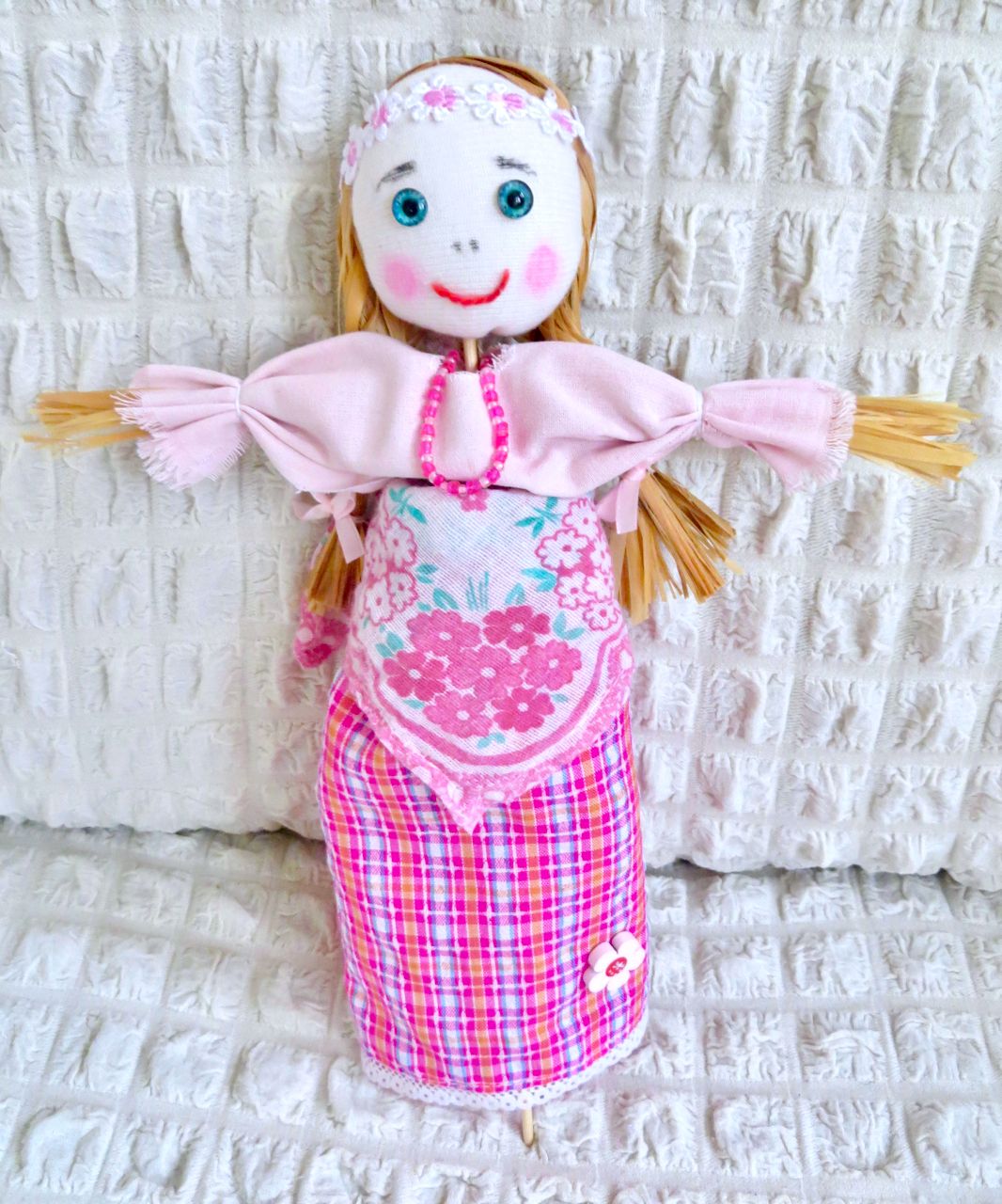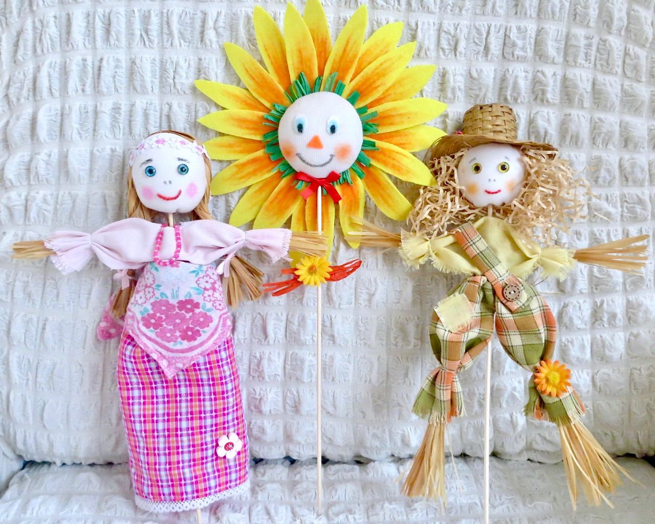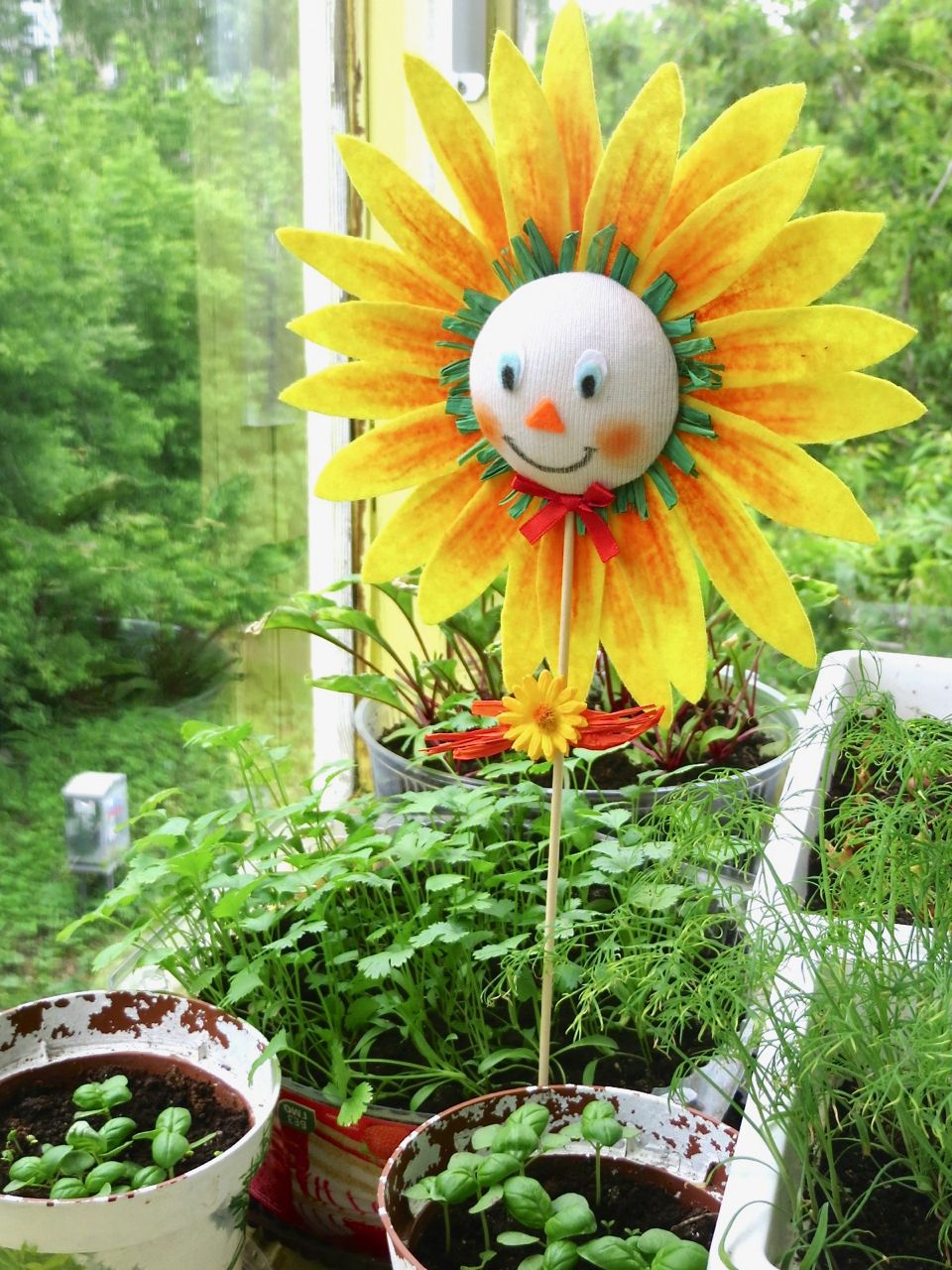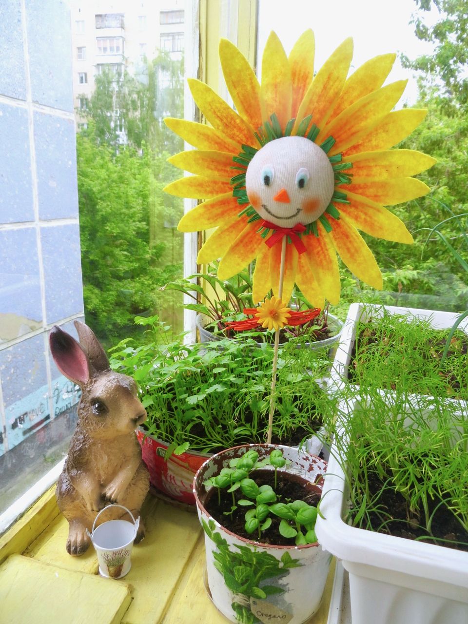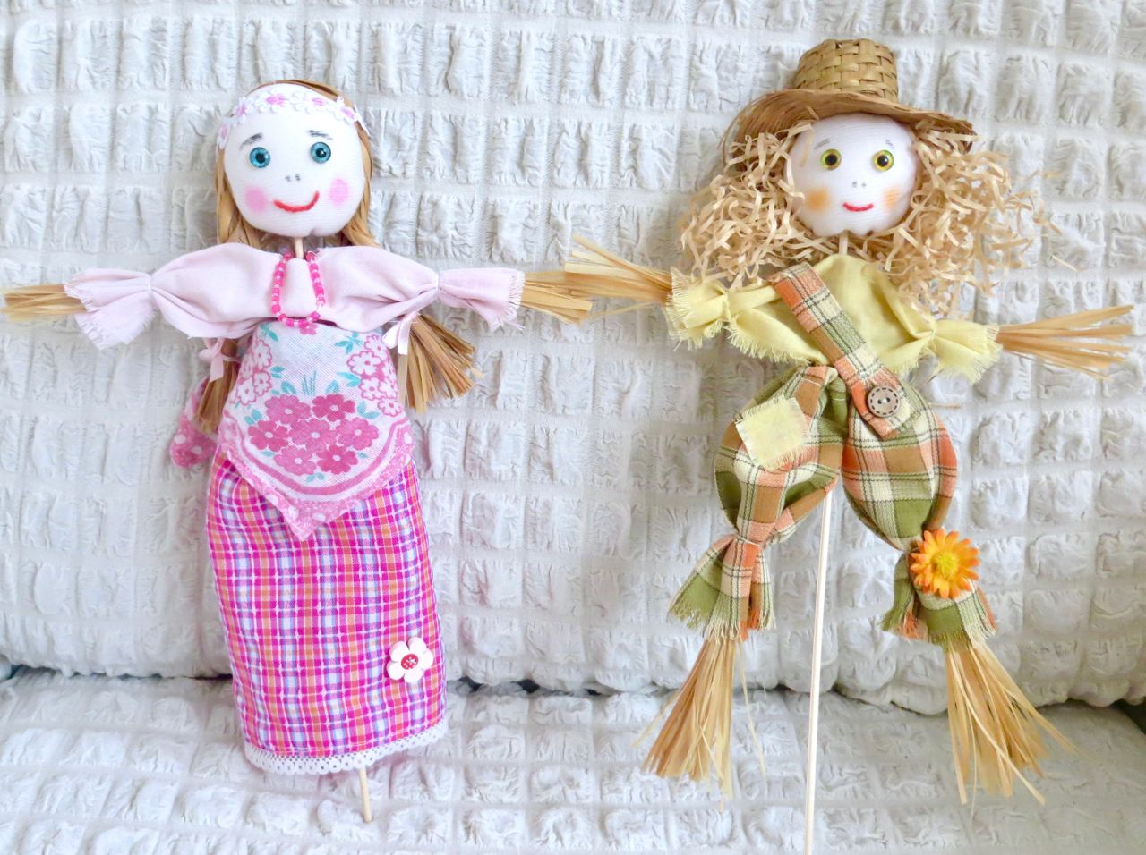 13 июня 2022 Все фото — не для гаечки! Лето у нас в этом году — как середина осени в худшем ее проявлении: постоянно дожди, пронизывающий ветер, температура выше 10-12 градусов не поднимается. Тем не менее, посадила на балконе кое-какую травку, лучок… И вот увидела как-то в интернете мини-пугала для огорода. , но цена в 500 руб. не вдохновляла, зато сподвигла на то, чтобы смастерить что-то похожее своими руками, благо что под рукой оказались деревянные шпажки, ткань и нужная фурнитура. Сразу оговорюсь, что пугала я шила не из старых трусиков и носочков, как периодически делает одна дама в Галерее. Пробой пера стало то, что попроще, — подсолнушек. Лепестки сделала из фетра, покрасила их пастелью. Листочки — из крашеного зеленого лыка. Получилось солнечно и весело. Подсолнушек в компании с зайкой скрашивают хмурые, промозглые летние деньки. Выглянешь на балкон -- а там маленькое солнышко тебе улыбается. Следующей в очереди стала Машенька, на которую надела бусики из огромного, некалиброванного, доставшегося от мамы бисера. Основа куколки сделана из лыка. Лыко, как сейчас помню, было куплено лет 9 назад по какой-то незначительной надобности и — надо же! — наконец-то пригодилось. Волосы и косички тоже из лыка. Работать с ним одно удовольствие. От него исходит запах леса, полей, деревни и вообще чего-то родного. Единственный минус —огромное количество мусора. Рабочие моменты: примерка глаз Машутка получилась чуть робкой, застенчивой девицей с алым румянцем. «Белолица, черноброва, Нраву кроткого такого. И жених сыскался ей, Королевич Елисей». Правда, у меня это не Елисей, а Ивашка. «Скелет» Ивашки: Волосы сделала из наполнителя для коробок, вытащенного из какого-то новогоднего корпоративного подарка. Шляпа — это особая песня! Сколько ей лет, уже и вспомнить, так давно она у меня лежала и взялась невесть откуда. На шляпу посадила бабочку , на штанишки — цветочек с заплаткой Готово! Теперь у Машки есть Ивашка Жить будут на балконе. И вся компания в сборе TheSunniestDay, Гало4ка, Муня и 16 других сказали спасибо Поделиться сообщением Ссылка на сообщение