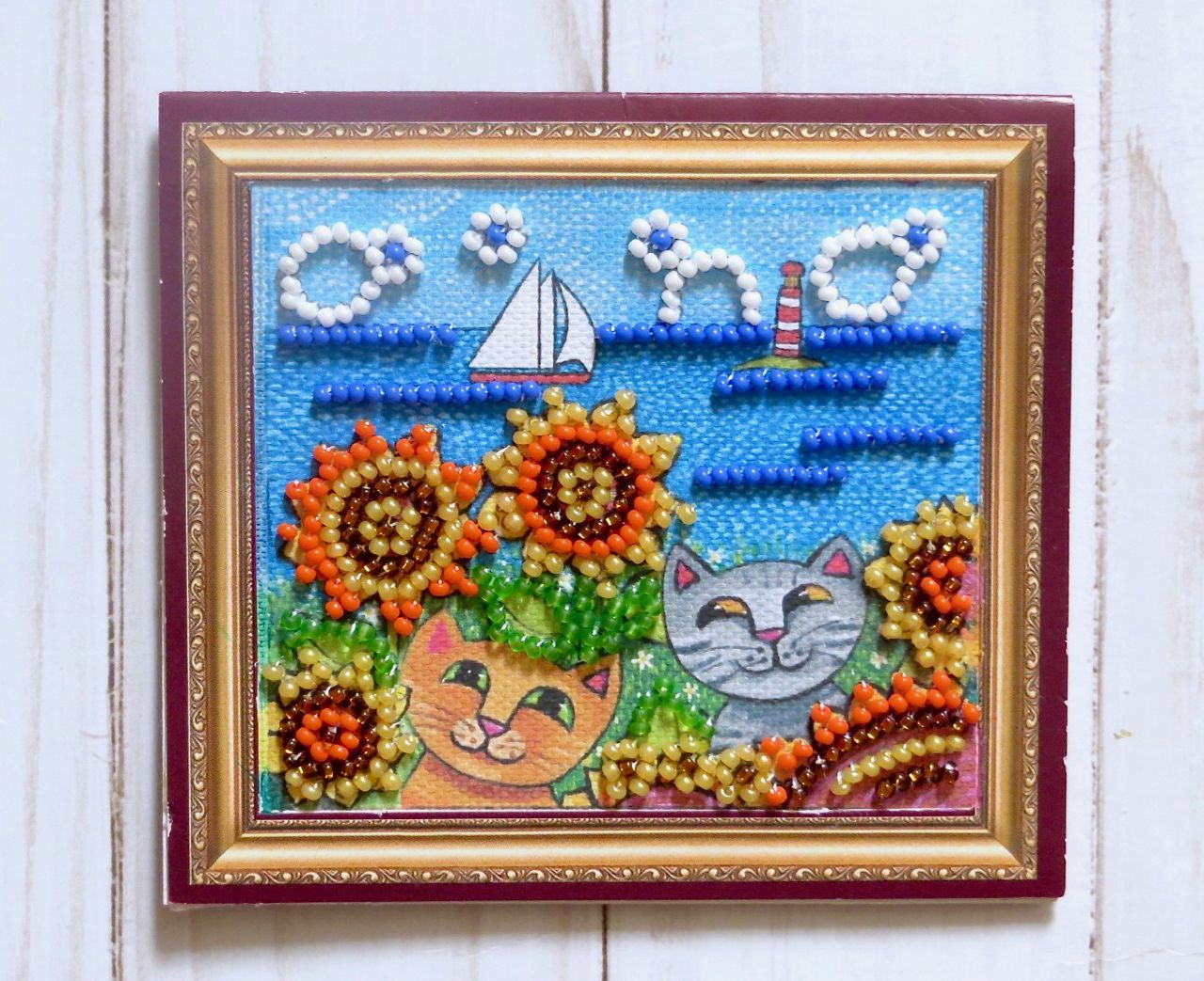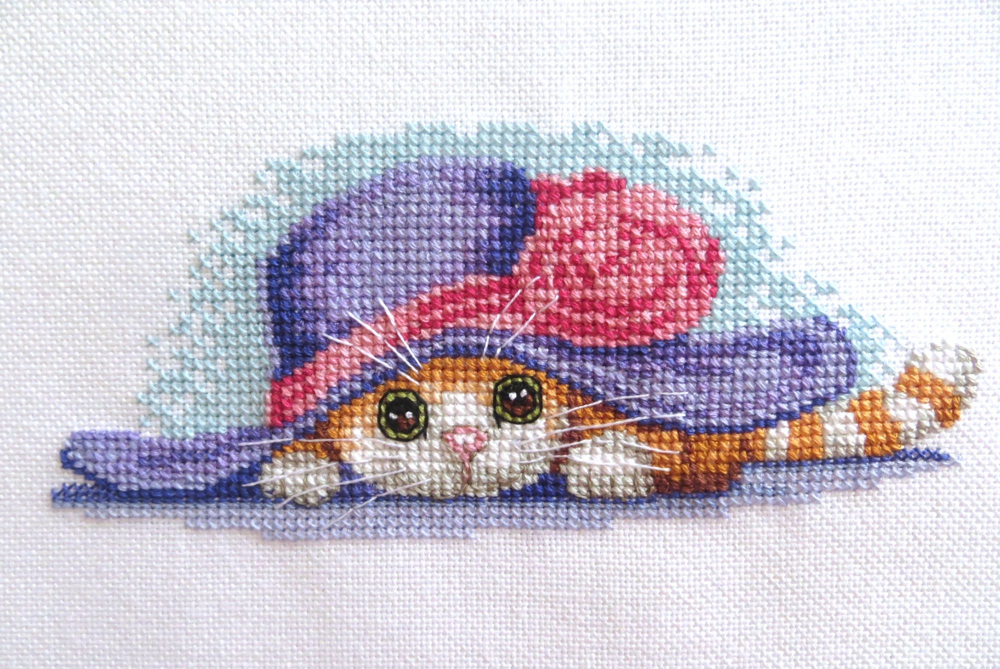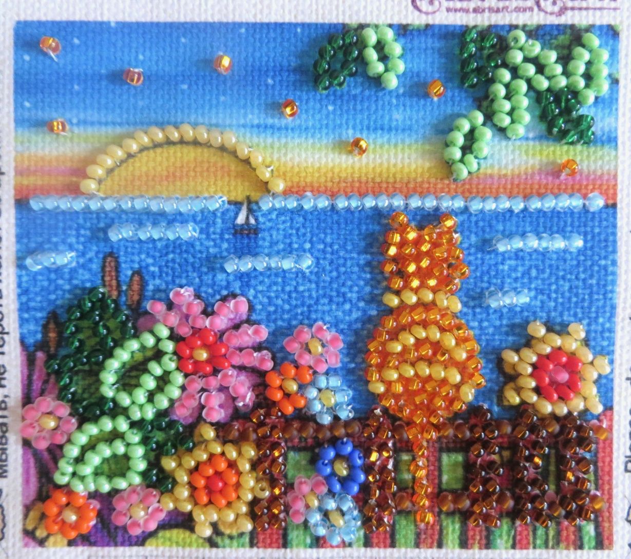 24 июля 2022 Всем привет! Я сегодня с показом мелочи, большей частью не вышивальной. Вначале прошу модераторов добавить еще два небольших процессика в гаечку. 1. "Абрис Арт" АМА-160 "Курортный роман" Превью: Фото: 2. "Абрис Арт" АМА-156 "Летний вечер" Превью: Фото: Вышивала с удовольствием, с мыслями о море и отпуске. В итоге отпуск маячит на следующей неделе, а вот о море пока приходится только мечтать. Красочные, смешные сюжеты на тему счастливой и безмятежной кошачьей жизни. В набор вложена магнитная лента, бисер и картонные рамочки. К содержимому особых претензий нет, вот только рамочки разочаровали: по размеру они оказались больше на 4 мм и по длине, и по ширине принта. Это очень много! Что делать с пустым белым пространством, бесстыдно бросающимся в глаза? Куда смотрел производитель? Я понимаю ещё, если бы рамочка была меньше по размеру. Тогда при оформлении принт по периметру оказался бы попросту «съеден», но что делать в моём случае? Пришлось докрасить самой. Такой недостаток просто удручал, тем более что магниты предназначались в подарок Светиному холодильнику на День рождения Светика (уже разместились там ) ---------------- Все остальные фотографии - не для гаечки! В продолжение деньрожденческих подарков сшила популярные нынче чехлы для пяльцев (в народе -- "труселя" ) — маленькие и большие. Подходят как для круглых, так и для прямоугольных пяльцев. Для ушек сделала прорези. Ткань взяла светлую. Видела в интернете чехлы яркие, с разномастными картинками, но мне кажется, этот аксессуар не должен быть слишком активным, чтобы не раздражать и не отвлекать на себя внимание. Если Света не будет пользоваться, может их кому-нибудь подарить, я нисколько не против Еще сделала органайзер для ниток. Он больше для антуража, конечно, и для создания соответствующей атмосферы. Было стало Это Милка и Ритусик . Решила таким образом их увековечить и воспеть уже не в крестике (если помните, я вышивала «Милку» ), а в органайзере для ниток. И тут не обошлось без проблем. Фотографии котиков распечатала на принтере, долго подгоняя их до нужного размера, но всё равно добиться идеала было невозможно. На фотке Милки сверху и особенно снизу оставались белые поля. Пришлось их закрасить краской. Фотографии на заготовку приклеиваться никак не хотели. Прошлась по ним утюжком. Естественно, проглаживала через бумагу, а она возьми да и прилипни к фотографиям, подпортив хвостик у Милки и глазки у Ритуси, а также фон на обеих фотках. Огрехи также пришлось закрашивать, так как повторно распечатать уже не было возможности. В общем, получилось не совсем так, как хотелось. Сверху органайзер покрыла тремя слоями лака. И в конце — самодельная открытка. Раз достала в кои-то веки швейную машинку, решила сшить фартук по набору RTO, купленному ровно 9 лет назад (а сшила в итоге за один день ). Честно говоря, на набор обратила внимание благодаря его красочной обложке. В наборе — купон американского хлопка с выкройкой фартука, инструкции, тыковка из фетра и рецепт яблочного пирога. Принт очень понравился. Изготовитель — https://wilmingtonprints.com/. Только посмотрите, какие восхитительные ткани! Я хотя шитьем не интересуюсь, зависла на сайте надолго. В шитье фартука ничего сложного нет. Получилось один в один с картинкой. Кроме того, фартук идеально подходит цветовой гамме моей кухни Остались вот такие огрызочки ткан