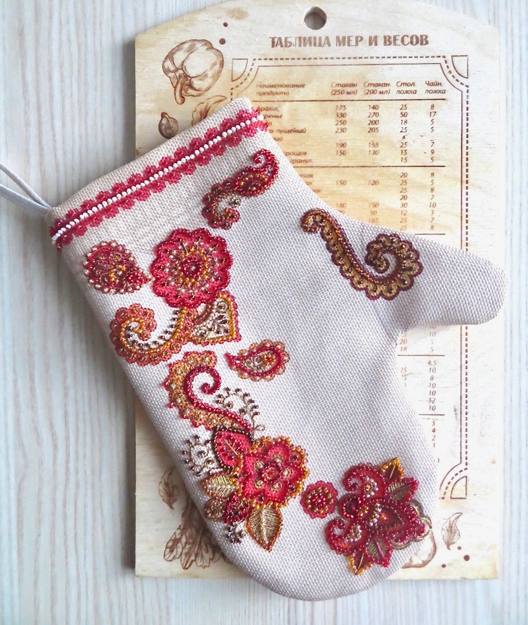 23 августа 2022 А я пришла с законченной рукавичкой. Вышила вторую сторону , внутрь сделала подклад, так как цепляться за нитки совсем не хочется. Вышивать было интересно. Как уже писала, вышила коричневыми и золотистыми ниточками почти все веточки и закорючки, хотя схемой это не предусмотрено. Огромное огорчение доставила катастрофическая нехватка бисера. До конца работы из 8 цветов дотянул лишь один (в сухом остатке аж 4 бисеринки ). Остальных оттенков хватило лишь процентов на 60. Возникло ощущение, что производственный отшив делался лишь одной стороны прихватки. Все цвета подбирала из имеющихся в наличии в закромах, поэтому незначительные расхождения присутствуют. Считаю это некритичным, ибо вышивала не лицо и не пейзаж какой-нибудь. В общем, производитель, как всегда, не подвёл меня в моих худших ожиданиях. Спасибо ему! Еще удивила предложенная атласная ленточка чистейшего белого цвета в качестве петельки. Сама по себе красивая, льняной варежке она ни к селу ни к городу. Петельку сшила сама из обрезков ткани, оставшейся от вырезанной прихватки. Слева — фото с обложки набора, справа — моя прихватка . Фоторепортаж из кухни: Фото для процесса (гаечку можно зеленить!) Еще, разбирая фотографии, нашла в июльских фотках васильки. Они росли у меня на балконе. Семена воткнула, ни на что особо не надеясь. kreolka, Любимые крестики, Dear_feya и 21 других сказали спасибо Поделиться сообщением Ссылка на сообщение