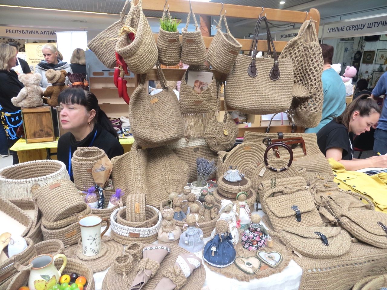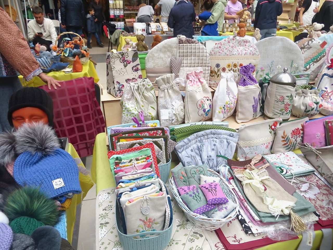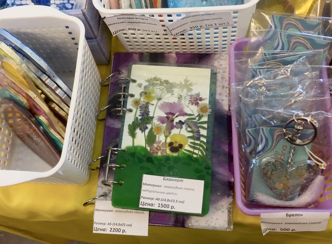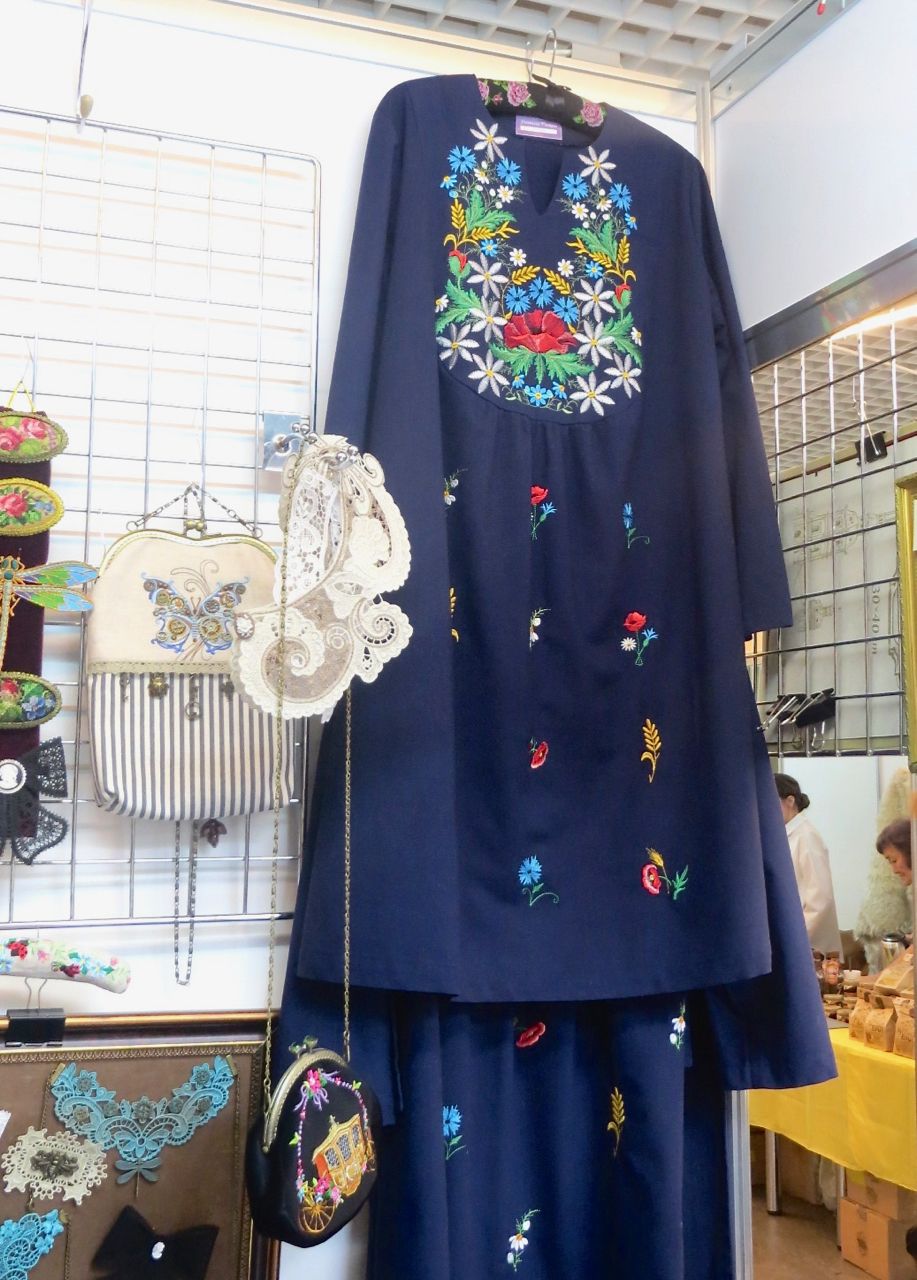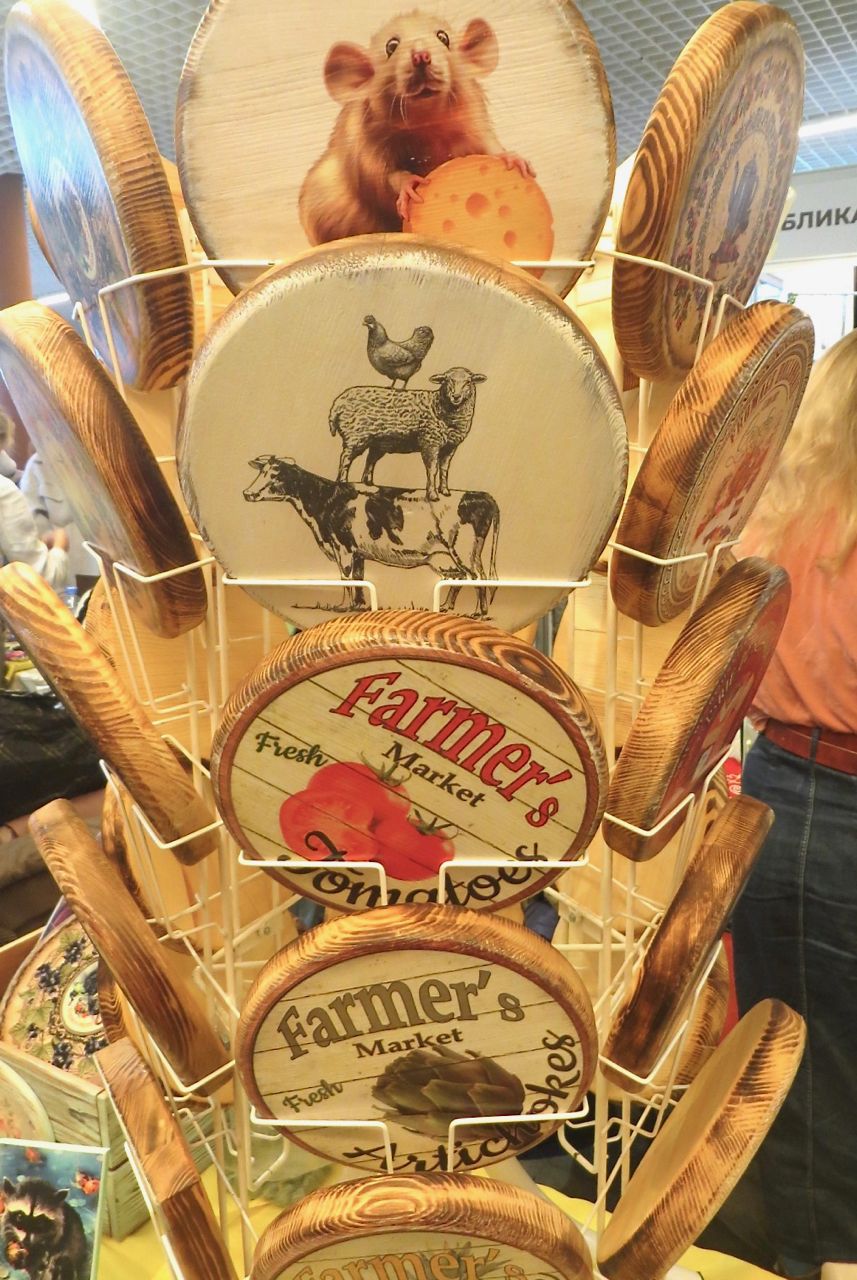8 октября 2022 Сегодня у меня репортаж с выставки ремесел «Иван-да-Марья», которая проходит на этой неделе в Екатеринбурге. Из рекламы: «Проект направлен на возрождение традиционного народного искусства и поддержку мастеров, а также демонстрирует удивительные по красоте и технике работы и способствует популяризации ремесленного творчества среди молодежи, возрождает духовность и культурные традиции народного искусства». Выставка, как и ФР, длится 4 дня. Сразу замечу, что вышивки на ней почти нет. Была только одна участница с прикладной вышивкой. Работы оригинальные, изысканные, прекрасно и со вкусом оформлены. Выставка занимает 1 этаж. На 2-м этаже — разнообразные мастер-классы. Очень хотела попасть на мастер-класс по изготовлению гончарных изделий, но … не так я себе это представляла. Поняла, что за подобным мастер-классом лучше всего идти в гончарную мастерскую, а не усаживаться на чистенький пластиковый стульчик за стерильный гончарный кружочек и лепить что-то из заранее прилизанного глиняного шарика . К тому же за готовой работой нужно через неделю куда-то ехать, но в рабочее время для меня это нереально. Интересным показался мастер-класс по прядению, но отдавать 400 руб. просто за то, чтобы подержаться за веретено и куделю, я финансово не готова. Порадовало, что можно спокойно фотографировать (лично мне подтвердили организаторы), и никто тебе за это в пятак не даст . Народа было много, особенно во второй половине дня, но к стендам можно спокойно подойти и все рассмотреть, а не так, как, бывало, на ФР, когда стоишь к стенду, казалось бы, уже вечность, а не двигаешься ни на миллиметр, и у прилавка топчутся все те же покупатели, которые там были полчаса назад. Много изделий из дерева, кожи, огромное количество разнообразных куколок и игрушек. Во всей красе представлена бижутерия и керамика. Поразили гигантские валенки 65 размера! Все рядом с ними останавливаются и охают от изумления. В конце фоторепортажа есть фотографии цветов и ягод. Вначале хотела пройти мимо, подумав, что они искусственные, однако это тоже изысканная керамика! Все тычинки и пестики вырисованы настолько отчетливо, что цветы, малина, земляника и грибочки кажутся живыми. От одуванчиков долго не могла отойти. Понравилось много чего, но цены…они явно не для Уральского региона. Восхитилась талантом и умениями мастеров из Свердловской области и гостей из Пермского края, Башкирии... Примерно четверть павильона занимали продукты — мед, разные чаи, натуральные масла, сыр, сладости и еще много чего. Я купила копченый лучок и чеснок (запах умопомрачительный!) для добавления в блюда, копченые сушеные томаты с морской солью, соль с белыми грибами, чипсы с бананом и корицей, грушей, персиком и клубникой. И о покупках: они скромны и проходили под знаком осени, листопада и, разумеется, тыкв! Купила крошечные тыковки-свечки, а на другом стенде — деревянные подсвечники, и так совпало, что они идеально состыковались друг с другом, хотя при покупке я об этом не задумывалась. Не удержалась, приобрела керамическую тыковку со съемной крышкой. Цвет у нее такой аппетитный, что так и хочется отломить кусочек! У одной мастерицы приглянулись сырные доски. Изготавливает она их с помощью декупажа, но не обычного, а со вживлением лазерной распечатки. В описании могу ошибаться. Продавец мне рассказала те