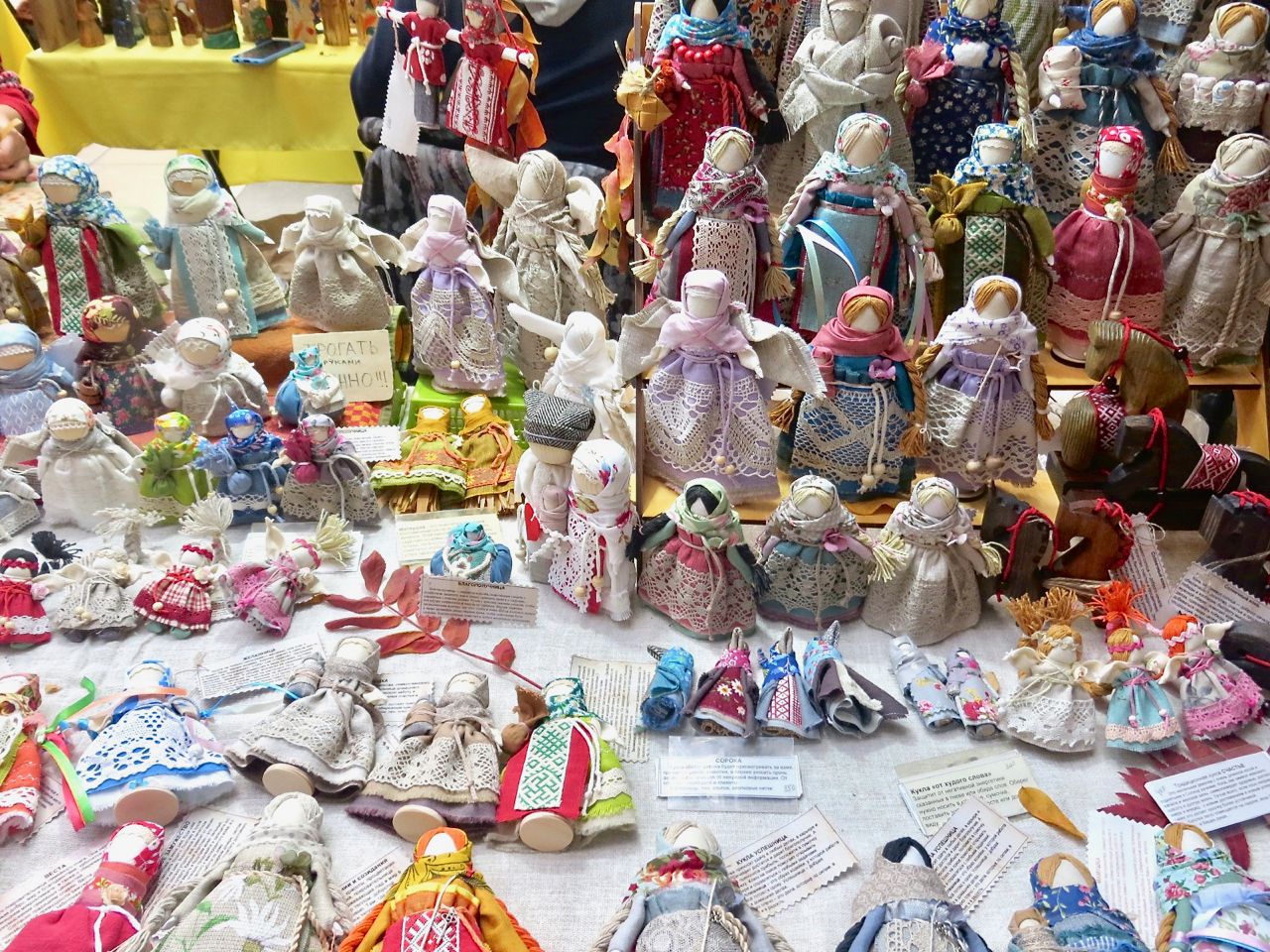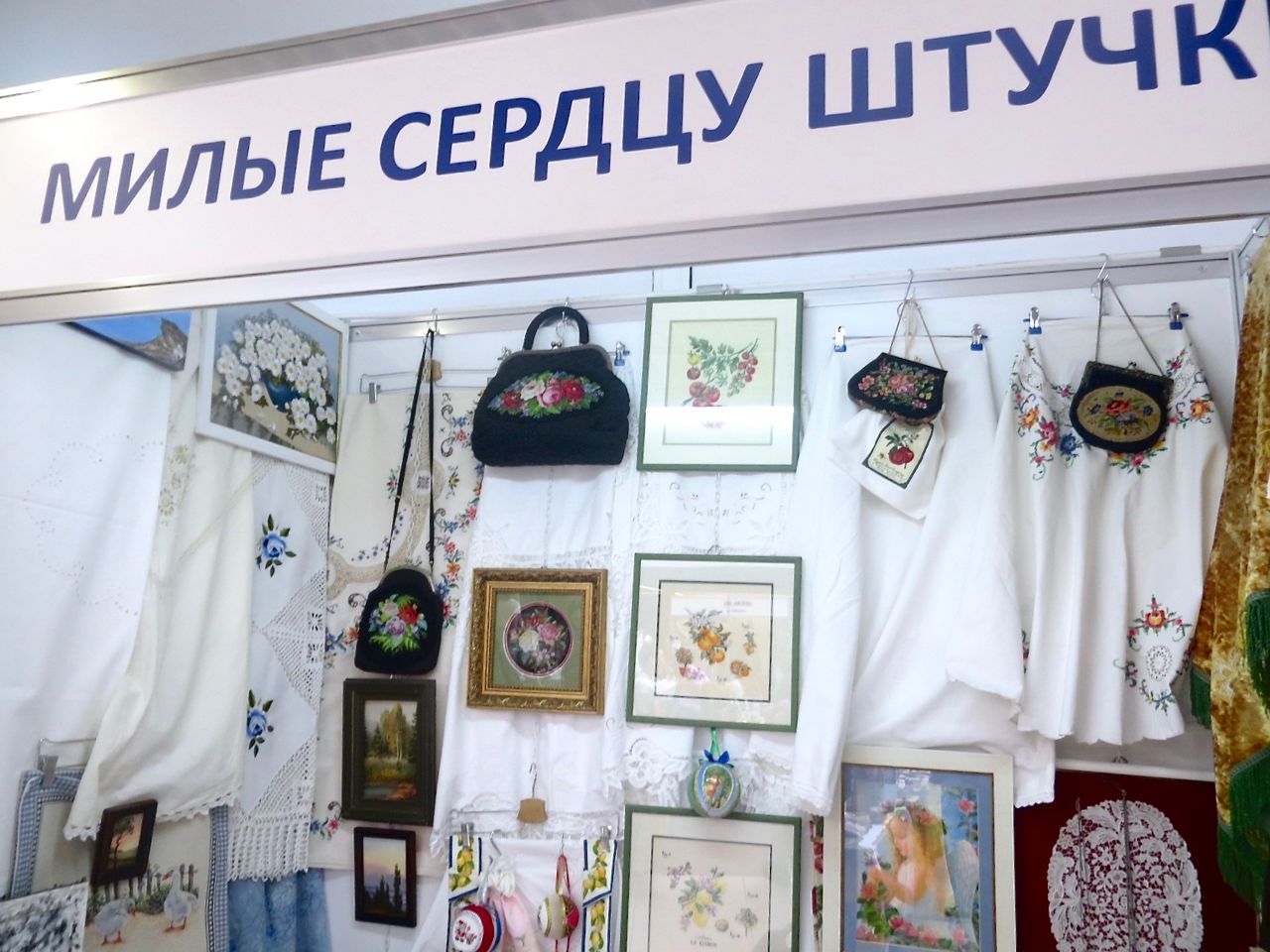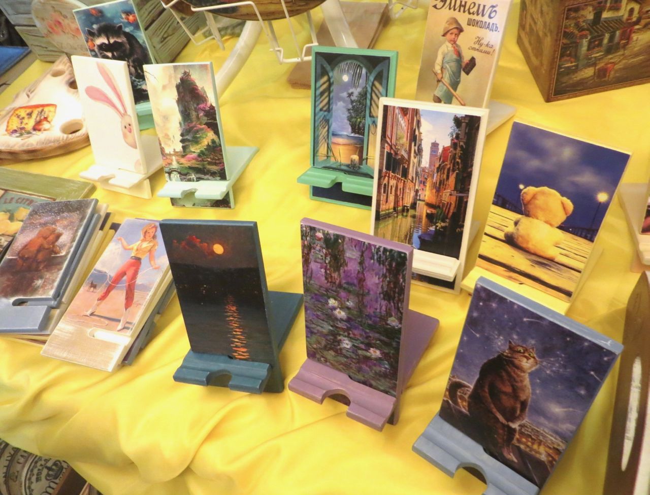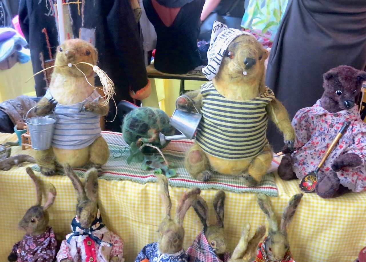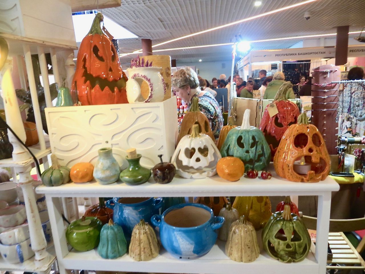 8 октября 2022 Сегодня у меня репортаж с выставки ремесел «Иван-да-Марья», которая проходит на этой неделе в Екатеринбурге. Из рекламы: «Проект направлен на возрождение традиционного народного искусства и поддержку мастеров, а также демонстрирует удивительные по красоте и технике работы и способствует популяризации ремесленного творчества среди молодежи, возрождает духовность и культурные традиции народного искусства». Выставка, как и ФР, длится 4 дня. Сразу замечу, что вышивки на ней почти нет. Была только одна участница с прикладной вышивкой. Работы оригинальные, изысканные, прекрасно и со вкусом оформлены. Выставка занимает 1 этаж. На 2-м этаже — разнообразные мастер-классы. Очень хотела попасть на мастер-класс по изготовлению гончарных изделий, но … не так я себе это представляла. Поняла, что за подобным мастер-классом лучше всего идти в гончарную мастерскую, а не усаживаться на чистенький пластиковый стульчик за стерильный гончарный кружочек и лепить что-то из заранее прилизанного глиняного шарика . К тому же за готовой работой нужно через неделю куда-то ехать, но в рабочее время для меня это нереально. Интересным показался мастер-класс по прядению, но отдавать 400 руб. просто за то, чтобы подержаться за веретено и куделю, я финансово не готова. Порадовало, что можно спокойно фотографировать (лично мне подтвердили организаторы), и никто тебе за это в пятак не даст . Народа было много, особенно во второй половине дня, но к стендам можно спокойно подойти и все рассмотреть, а не так, как, бывало, на ФР, когда стоишь к стенду, казалось бы, уже вечность, а не двигаешься ни на миллиметр, и у прилавка топчутся все те же покупатели, которые там были полчаса назад. Много изделий из дерева, кожи, огромное количество разнообразных куколок и игрушек. Во всей красе представлена бижутерия и керамика. Поразили гигантские валенки 65 размера! Все рядом с ними останавливаются и охают от изумления. В конце фоторепортажа есть фотографии цветов и ягод. Вначале хотела пройти мимо, подумав, что они искусственные, однако это тоже изысканная керамика! Все тычинки и пестики вырисованы настолько отчетливо, что цветы, малина, земляника и грибочки кажутся живыми. От одуванчиков долго не могла отойти. Понравилось много чего, но цены…они явно не для Уральского региона. Восхитилась талантом и умениями мастеров из Свердловской области и гостей из Пермского края, Башкирии... Примерно четверть павильона занимали продукты — мед, разные чаи, натуральные масла, сыр, сладости и еще много чего. Я купила копченый лучок и чеснок (запах умопомрачительный!) для добавления в блюда, копченые сушеные томаты с морской солью, соль с белыми грибами, чипсы с бананом и корицей, грушей, персиком и клубникой. И о покупках: они скромны и проходили под знаком осени, листопада и, разумеется, тыкв! Купила крошечные тыковки-свечки, а на другом стенде — деревянные подсвечники, и так совпало, что они идеально состыковались друг с другом, хотя при покупке я об этом не задумывалась. Не удержалась, приобрела керамическую тыковку со съемной крышкой. Цвет у нее такой аппетитный, что так и хочется отломить кусочек! У одной мастерицы приглянулись сырные доски. Изготавливает она их с помощью декупажа, но не обычного, а со вживлением лазерной распечатки. В описании могу ошибаться. Продавец мне рассказала те