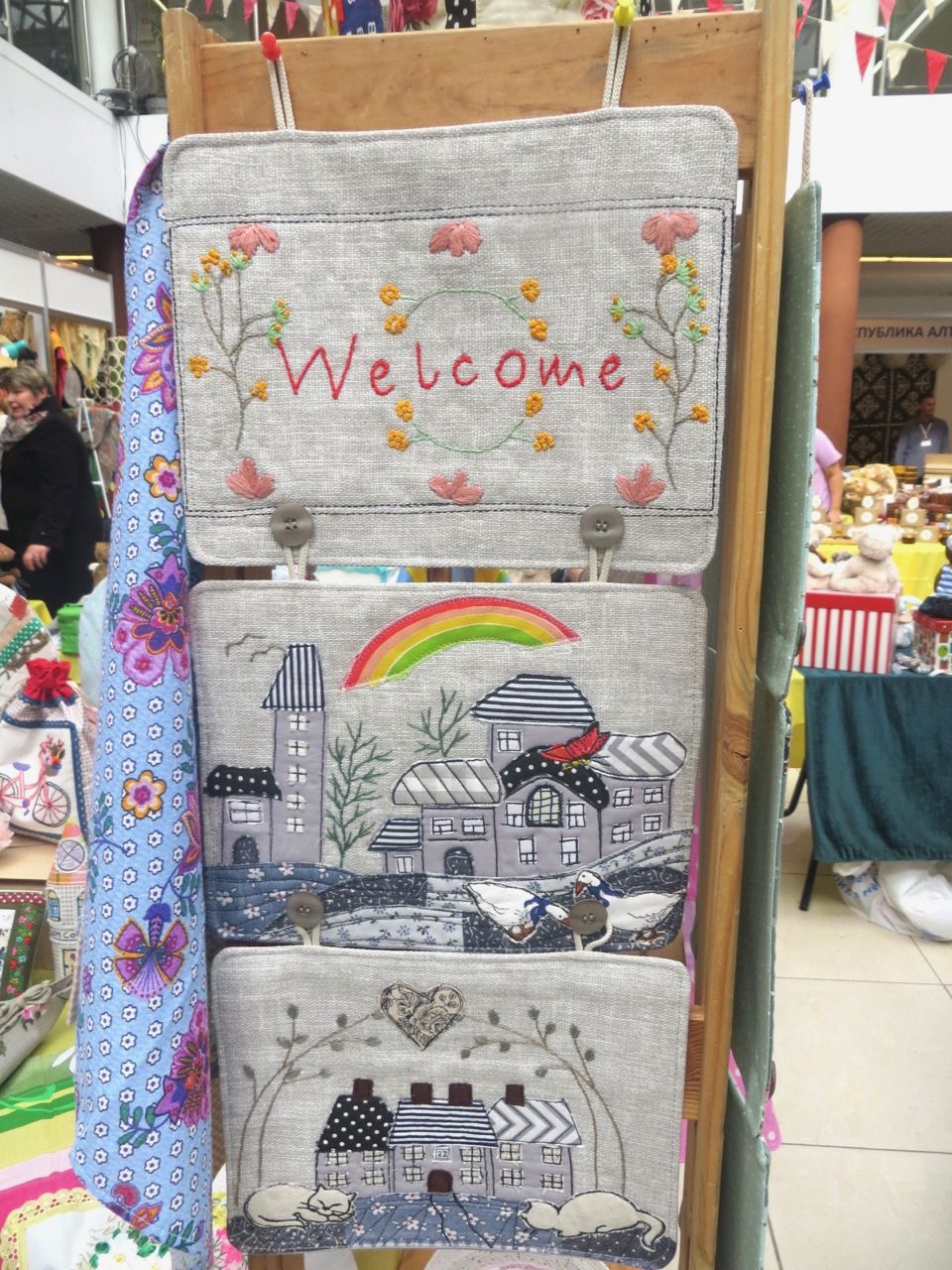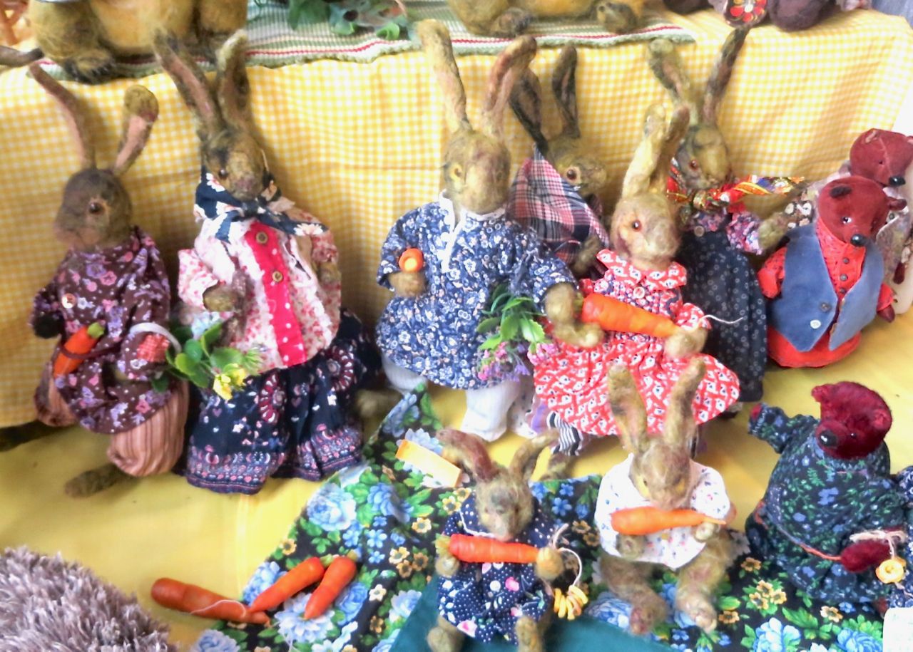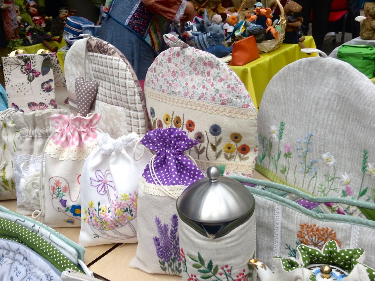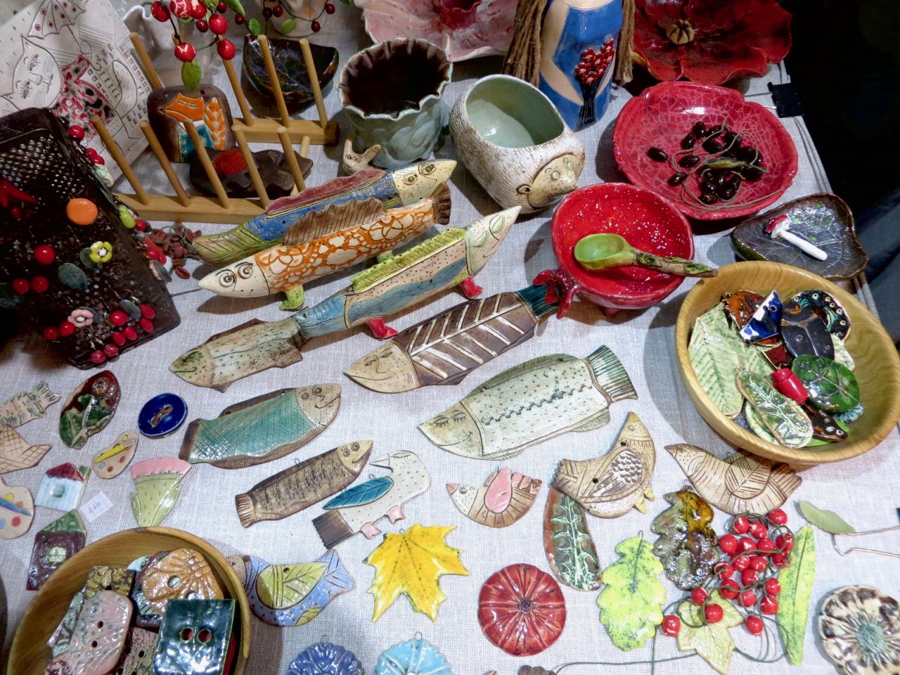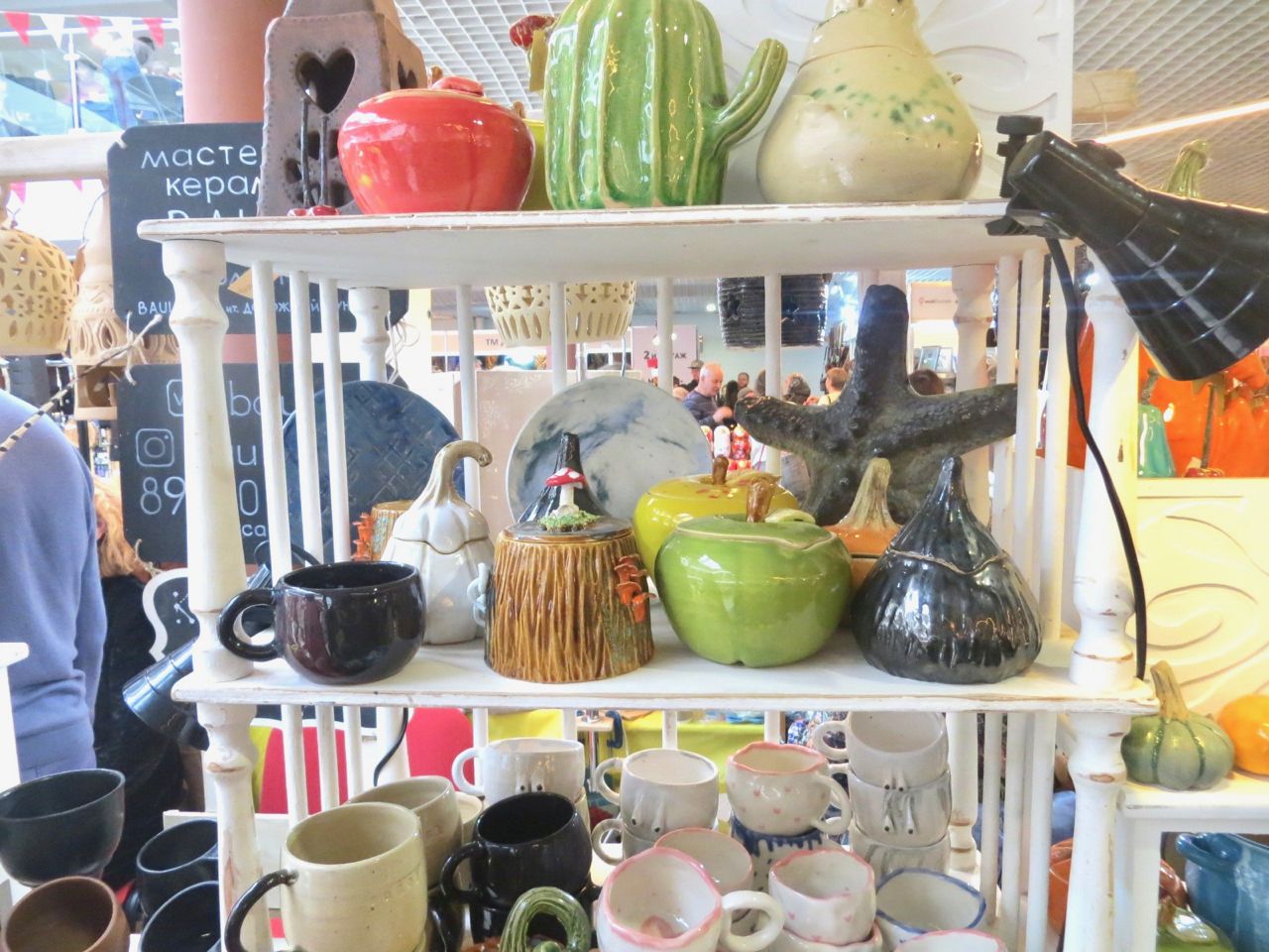 8 октября 2022 Сегодня у меня репортаж с выставки ремесел «Иван-да-Марья», которая проходит на этой неделе в Екатеринбурге. Из рекламы: «Проект направлен на возрождение традиционного народного искусства и поддержку мастеров, а также демонстрирует удивительные по красоте и технике работы и способствует популяризации ремесленного творчества среди молодежи, возрождает духовность и культурные традиции народного искусства». Выставка, как и ФР, длится 4 дня. Сразу замечу, что вышивки на ней почти нет. Была только одна участница с прикладной вышивкой. Работы оригинальные, изысканные, прекрасно и со вкусом оформлены. Выставка занимает 1 этаж. На 2-м этаже — разнообразные мастер-классы. Очень хотела попасть на мастер-класс по изготовлению гончарных изделий, но … не так я себе это представляла. Поняла, что за подобным мастер-классом лучше всего идти в гончарную мастерскую, а не усаживаться на чистенький пластиковый стульчик за стерильный гончарный кружочек и лепить что-то из заранее прилизанного глиняного шарика . К тому же за готовой работой нужно через неделю куда-то ехать, но в рабочее время для меня это нереально. Интересным показался мастер-класс по прядению, но отдавать 400 руб. просто за то, чтобы подержаться за веретено и куделю, я финансово не готова. Порадовало, что можно спокойно фотографировать (лично мне подтвердили организаторы), и никто тебе за это в пятак не даст . Народа было много, особенно во второй половине дня, но к стендам можно спокойно подойти и все рассмотреть, а не так, как, бывало, на ФР, когда стоишь к стенду, казалось бы, уже вечность, а не двигаешься ни на миллиметр, и у прилавка топчутся все те же покупатели, которые там были полчаса назад. Много изделий из дерева, кожи, огромное количество разнообразных куколок и игрушек. Во всей красе представлена бижутерия и керамика. Поразили гигантские валенки 65 размера! Все рядом с ними останавливаются и охают от изумления. В конце фоторепортажа есть фотографии цветов и ягод. Вначале хотела пройти мимо, подумав, что они искусственные, однако это тоже изысканная керамика! Все тычинки и пестики вырисованы настолько отчетливо, что цветы, малина, земляника и грибочки кажутся живыми. От одуванчиков долго не могла отойти. Понравилось много чего, но цены…они явно не для Уральского региона. Восхитилась талантом и умениями мастеров из Свердловской области и гостей из Пермского края, Башкирии... Примерно четверть павильона занимали продукты — мед, разные чаи, натуральные масла, сыр, сладости и еще много чего. Я купила копченый лучок и чеснок (запах умопомрачительный!) для добавления в блюда, копченые сушеные томаты с морской солью, соль с белыми грибами, чипсы с бананом и корицей, грушей, персиком и клубникой. И о покупках: они скромны и проходили под знаком осени, листопада и, разумеется, тыкв! Купила крошечные тыковки-свечки, а на другом стенде — деревянные подсвечники, и так совпало, что они идеально состыковались друг с другом, хотя при покупке я об этом не задумывалась. Не удержалась, приобрела керамическую тыковку со съемной крышкой. Цвет у нее такой аппетитный, что так и хочется отломить кусочек! У одной мастерицы приглянулись сырные доски. Изготавливает она их с помощью декупажа, но не обычного, а со вживлением лазерной распечатки. В описании могу ошибаться. Продавец мне рассказала те