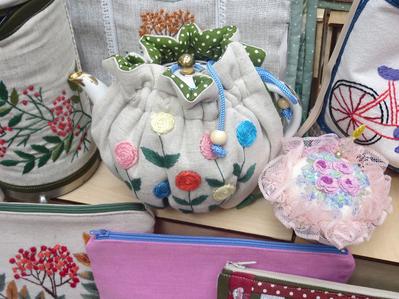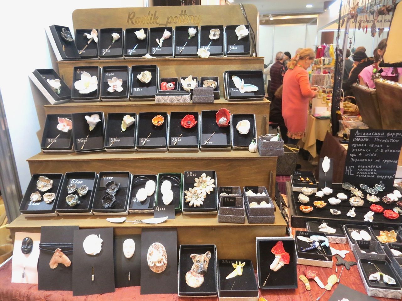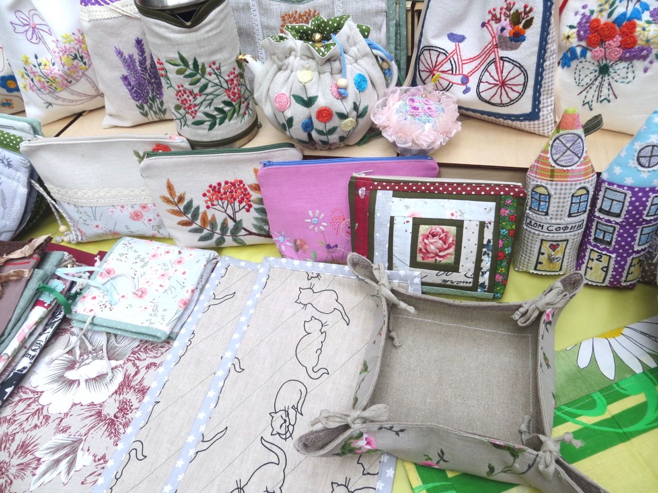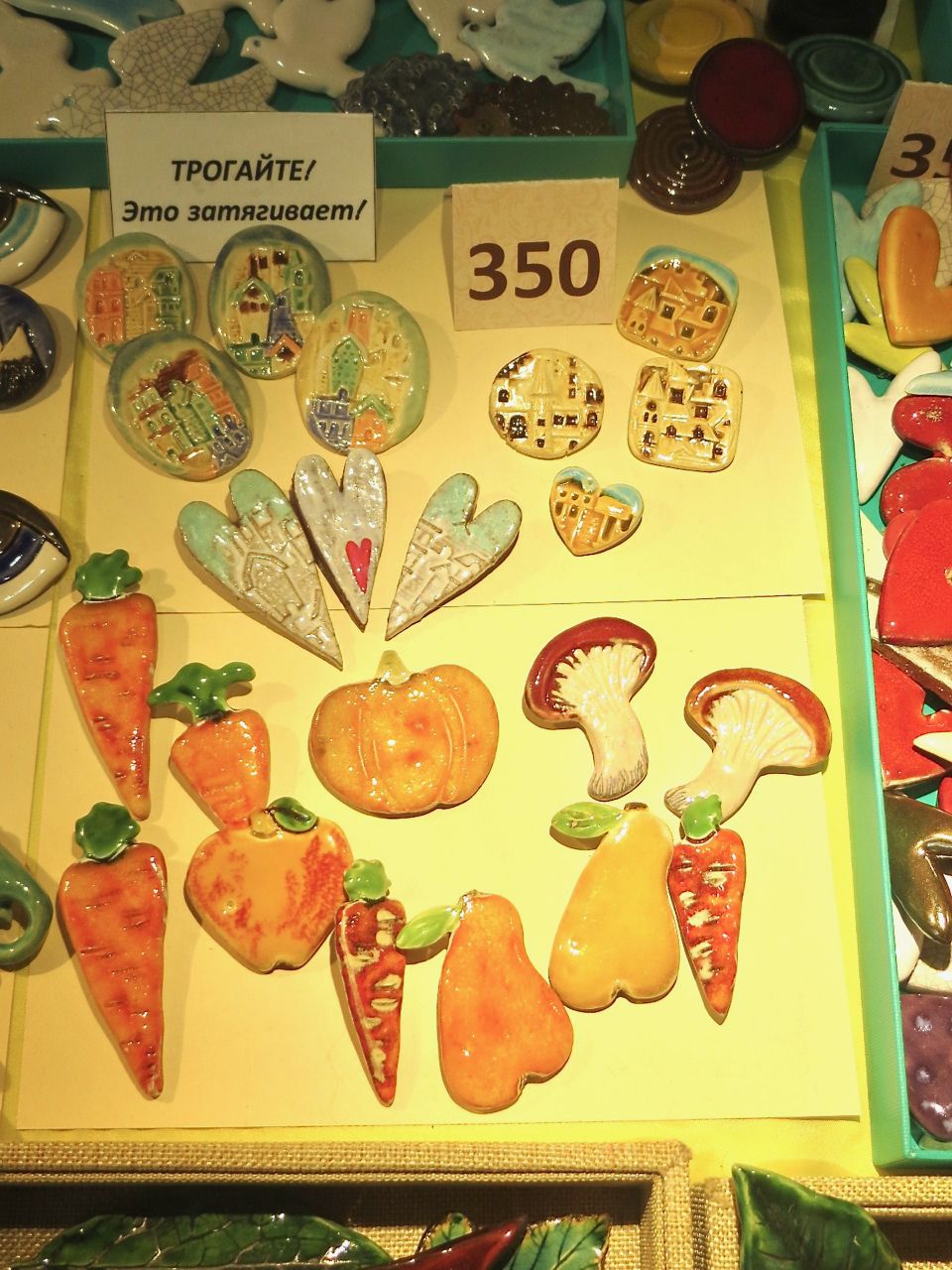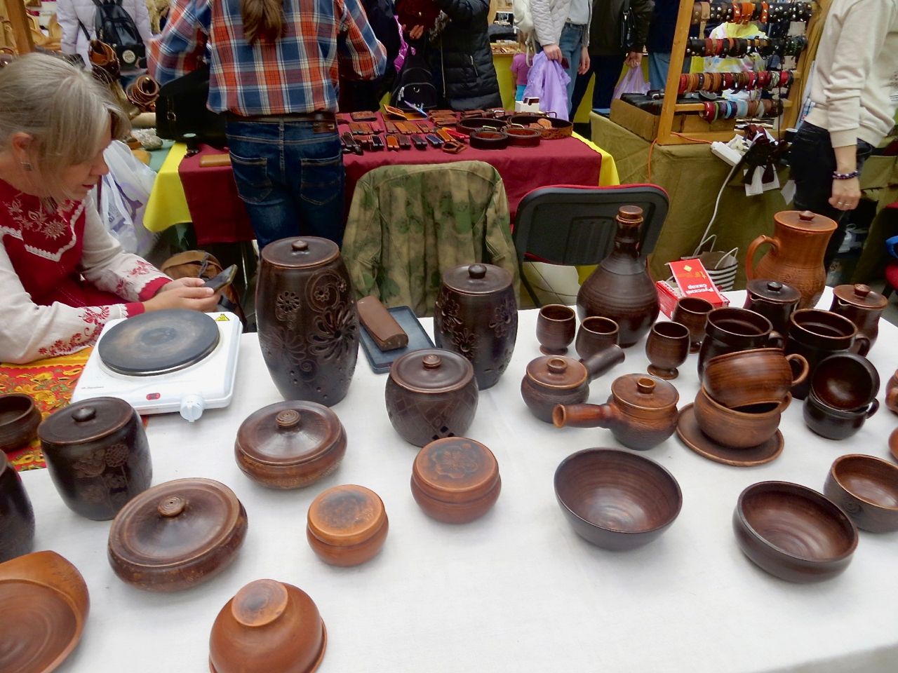 8 октября 2022 Сегодня у меня репортаж с выставки ремесел «Иван-да-Марья», которая проходит на этой неделе в Екатеринбурге. Из рекламы: «Проект направлен на возрождение традиционного народного искусства и поддержку мастеров, а также демонстрирует удивительные по красоте и технике работы и способствует популяризации ремесленного творчества среди молодежи, возрождает духовность и культурные традиции народного искусства». Выставка, как и ФР, длится 4 дня. Сразу замечу, что вышивки на ней почти нет. Была только одна участница с прикладной вышивкой. Работы оригинальные, изысканные, прекрасно и со вкусом оформлены. Выставка занимает 1 этаж. На 2-м этаже — разнообразные мастер-классы. Очень хотела попасть на мастер-класс по изготовлению гончарных изделий, но … не так я себе это представляла. Поняла, что за подобным мастер-классом лучше всего идти в гончарную мастерскую, а не усаживаться на чистенький пластиковый стульчик за стерильный гончарный кружочек и лепить что-то из заранее прилизанного глиняного шарика . К тому же за готовой работой нужно через неделю куда-то ехать, но в рабочее время для меня это нереально. Интересным показался мастер-класс по прядению, но отдавать 400 руб. просто за то, чтобы подержаться за веретено и куделю, я финансово не готова. Порадовало, что можно спокойно фотографировать (лично мне подтвердили организаторы), и никто тебе за это в пятак не даст . Народа было много, особенно во второй половине дня, но к стендам можно спокойно подойти и все рассмотреть, а не так, как, бывало, на ФР, когда стоишь к стенду, казалось бы, уже вечность, а не двигаешься ни на миллиметр, и у прилавка топчутся все те же покупатели, которые там были полчаса назад. Много изделий из дерева, кожи, огромное количество разнообразных куколок и игрушек. Во всей красе представлена бижутерия и керамика. Поразили гигантские валенки 65 размера! Все рядом с ними останавливаются и охают от изумления. В конце фоторепортажа есть фотографии цветов и ягод. Вначале хотела пройти мимо, подумав, что они искусственные, однако это тоже изысканная керамика! Все тычинки и пестики вырисованы настолько отчетливо, что цветы, малина, земляника и грибочки кажутся живыми. От одуванчиков долго не могла отойти. Понравилось много чего, но цены…они явно не для Уральского региона. Восхитилась талантом и умениями мастеров из Свердловской области и гостей из Пермского края, Башкирии... Примерно четверть павильона занимали продукты — мед, разные чаи, натуральные масла, сыр, сладости и еще много чего. Я купила копченый лучок и чеснок (запах умопомрачительный!) для добавления в блюда, копченые сушеные томаты с морской солью, соль с белыми грибами, чипсы с бананом и корицей, грушей, персиком и клубникой. И о покупках: они скромны и проходили под знаком осени, листопада и, разумеется, тыкв! Купила крошечные тыковки-свечки, а на другом стенде — деревянные подсвечники, и так совпало, что они идеально состыковались друг с другом, хотя при покупке я об этом не задумывалась. Не удержалась, приобрела керамическую тыковку со съемной крышкой. Цвет у нее такой аппетитный, что так и хочется отломить кусочек! У одной мастерицы приглянулись сырные доски. Изготавливает она их с помощью декупажа, но не обычного, а со вживлением лазерной распечатки. В описании могу ошибаться. Продавец мне рассказала те
