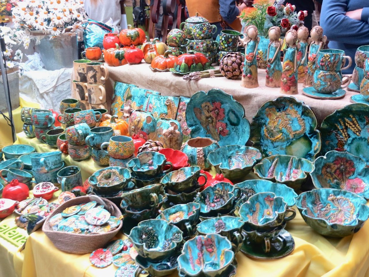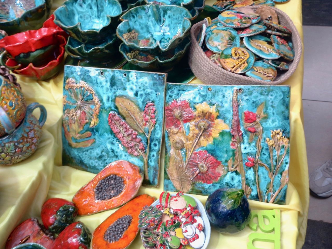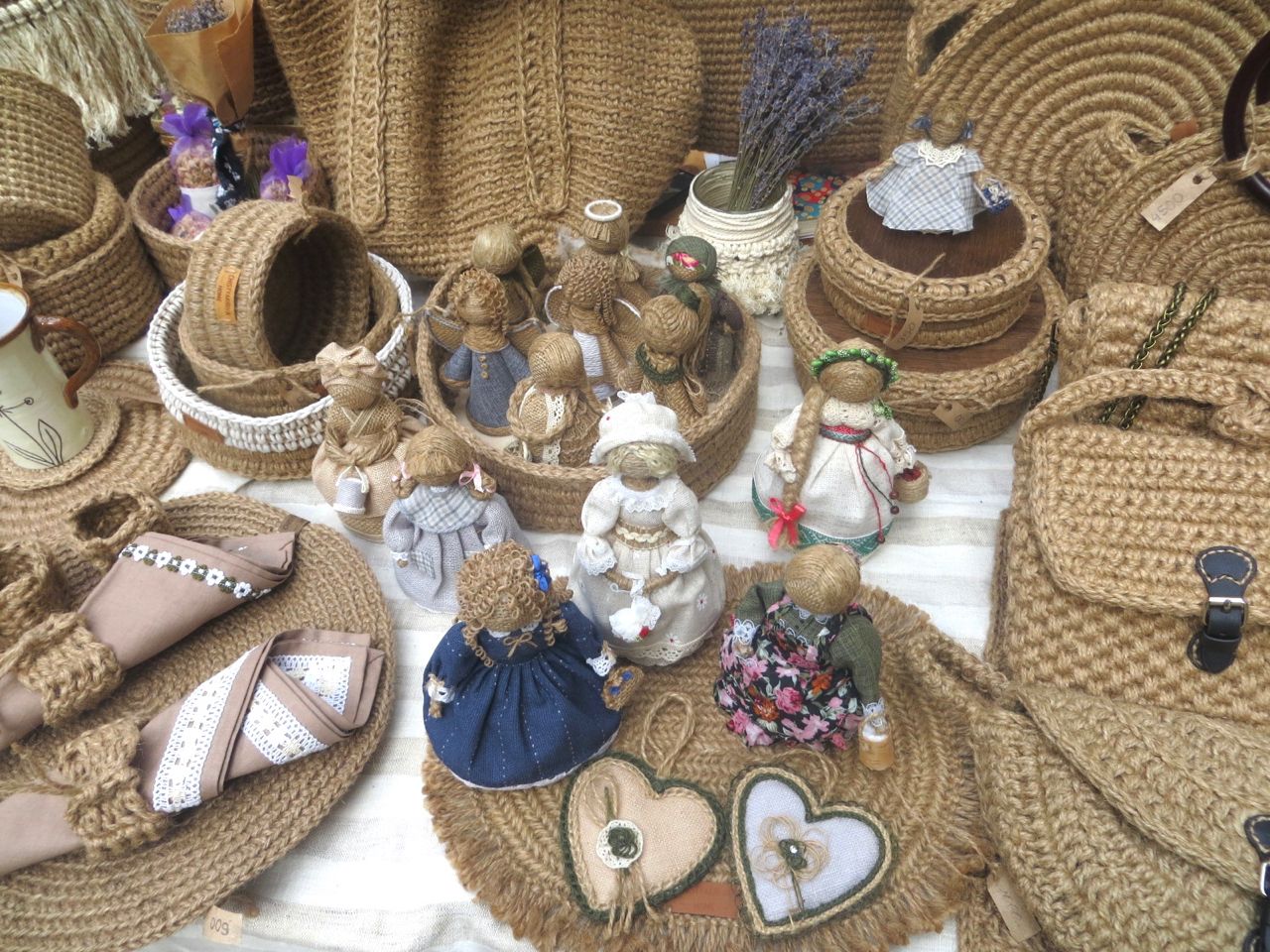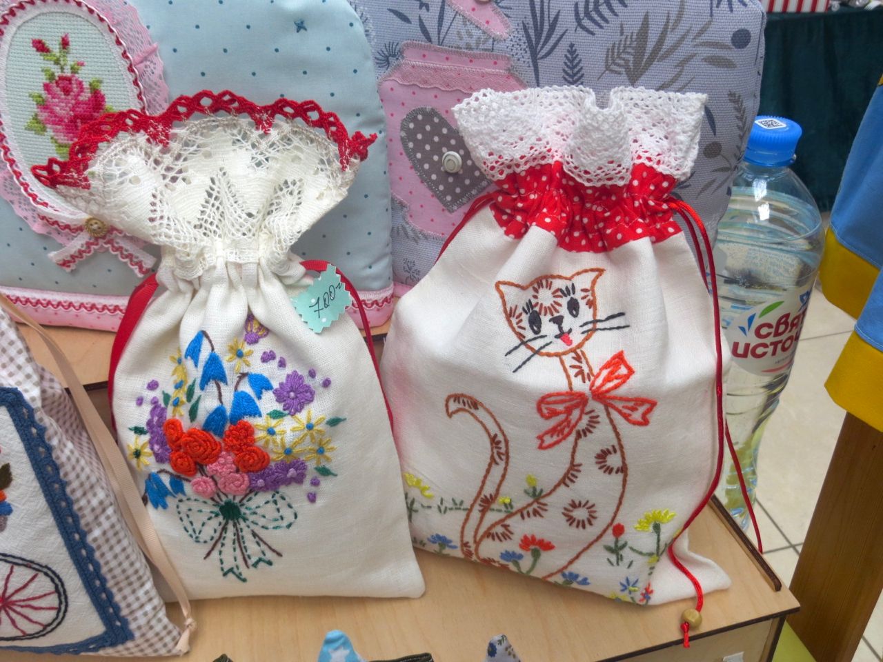 8 октября 2022 Сегодня у меня репортаж с выставки ремесел «Иван-да-Марья», которая проходит на этой неделе в Екатеринбурге. Из рекламы: «Проект направлен на возрождение традиционного народного искусства и поддержку мастеров, а также демонстрирует удивительные по красоте и технике работы и способствует популяризации ремесленного творчества среди молодежи, возрождает духовность и культурные традиции народного искусства». Выставка, как и ФР, длится 4 дня. Сразу замечу, что вышивки на ней почти нет. Была только одна участница с прикладной вышивкой. Работы оригинальные, изысканные, прекрасно и со вкусом оформлены. Выставка занимает 1 этаж. На 2-м этаже — разнообразные мастер-классы. Очень хотела попасть на мастер-класс по изготовлению гончарных изделий, но … не так я себе это представляла. Поняла, что за подобным мастер-классом лучше всего идти в гончарную мастерскую, а не усаживаться на чистенький пластиковый стульчик за стерильный гончарный кружочек и лепить что-то из заранее прилизанного глиняного шарика . К тому же за готовой работой нужно через неделю куда-то ехать, но в рабочее время для меня это нереально. Интересным показался мастер-класс по прядению, но отдавать 400 руб. просто за то, чтобы подержаться за веретено и куделю, я финансово не готова. Порадовало, что можно спокойно фотографировать (лично мне подтвердили организаторы), и никто тебе за это в пятак не даст . Народа было много, особенно во второй половине дня, но к стендам можно спокойно подойти и все рассмотреть, а не так, как, бывало, на ФР, когда стоишь к стенду, казалось бы, уже вечность, а не двигаешься ни на миллиметр, и у прилавка топчутся все те же покупатели, которые там были полчаса назад. Много изделий из дерева, кожи, огромное количество разнообразных куколок и игрушек. Во всей красе представлена бижутерия и керамика. Поразили гигантские валенки 65 размера! Все рядом с ними останавливаются и охают от изумления. В конце фоторепортажа есть фотографии цветов и ягод. Вначале хотела пройти мимо, подумав, что они искусственные, однако это тоже изысканная керамика! Все тычинки и пестики вырисованы настолько отчетливо, что цветы, малина, земляника и грибочки кажутся живыми. От одуванчиков долго не могла отойти. Понравилось много чего, но цены…они явно не для Уральского региона. Восхитилась талантом и умениями мастеров из Свердловской области и гостей из Пермского края, Башкирии... Примерно четверть павильона занимали продукты — мед, разные чаи, натуральные масла, сыр, сладости и еще много чего. Я купила копченый лучок и чеснок (запах умопомрачительный!) для добавления в блюда, копченые сушеные томаты с морской солью, соль с белыми грибами, чипсы с бананом и корицей, грушей, персиком и клубникой. И о покупках: они скромны и проходили под знаком осени, листопада и, разумеется, тыкв! Купила крошечные тыковки-свечки, а на другом стенде — деревянные подсвечники, и так совпало, что они идеально состыковались друг с другом, хотя при покупке я об этом не задумывалась. Не удержалась, приобрела керамическую тыковку со съемной крышкой. Цвет у нее такой аппетитный, что так и хочется отломить кусочек! У одной мастерицы приглянулись сырные доски. Изготавливает она их с помощью декупажа, но не обычного, а со вживлением лазерной распечатки. В описании могу ошибаться. Продавец мне рассказала те
