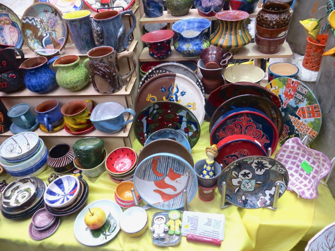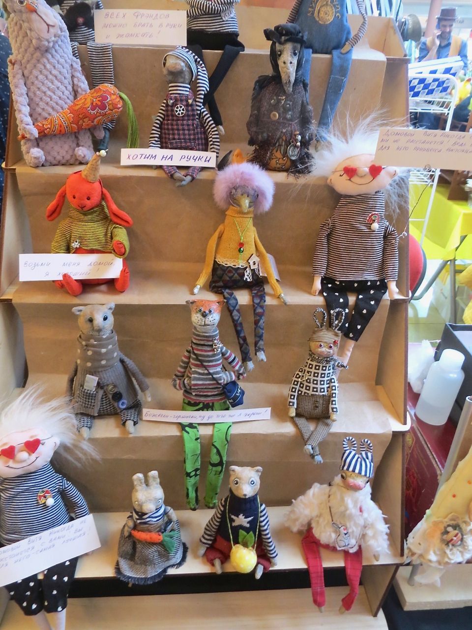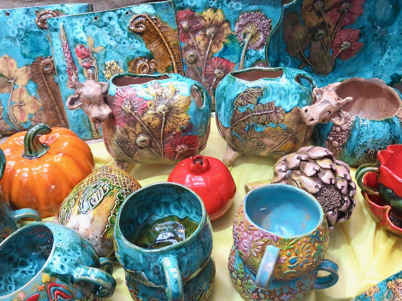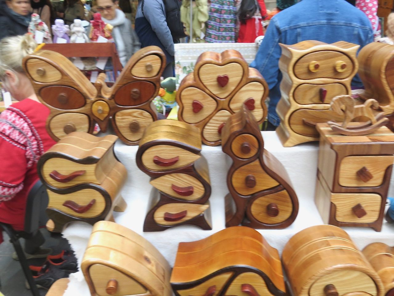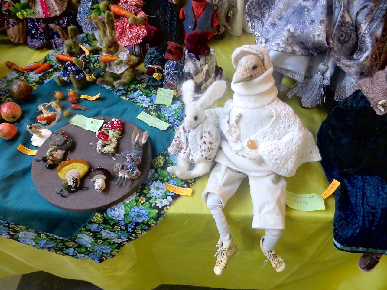8 октября 2022 Сегодня у меня репортаж с выставки ремесел «Иван-да-Марья», которая проходит на этой неделе в Екатеринбурге. Из рекламы: «Проект направлен на возрождение традиционного народного искусства и поддержку мастеров, а также демонстрирует удивительные по красоте и технике работы и способствует популяризации ремесленного творчества среди молодежи, возрождает духовность и культурные традиции народного искусства». Выставка, как и ФР, длится 4 дня. Сразу замечу, что вышивки на ней почти нет. Была только одна участница с прикладной вышивкой. Работы оригинальные, изысканные, прекрасно и со вкусом оформлены. Выставка занимает 1 этаж. На 2-м этаже — разнообразные мастер-классы. Очень хотела попасть на мастер-класс по изготовлению гончарных изделий, но … не так я себе это представляла. Поняла, что за подобным мастер-классом лучше всего идти в гончарную мастерскую, а не усаживаться на чистенький пластиковый стульчик за стерильный гончарный кружочек и лепить что-то из заранее прилизанного глиняного шарика . К тому же за готовой работой нужно через неделю куда-то ехать, но в рабочее время для меня это нереально. Интересным показался мастер-класс по прядению, но отдавать 400 руб. просто за то, чтобы подержаться за веретено и куделю, я финансово не готова. Порадовало, что можно спокойно фотографировать (лично мне подтвердили организаторы), и никто тебе за это в пятак не даст . Народа было много, особенно во второй половине дня, но к стендам можно спокойно подойти и все рассмотреть, а не так, как, бывало, на ФР, когда стоишь к стенду, казалось бы, уже вечность, а не двигаешься ни на миллиметр, и у прилавка топчутся все те же покупатели, которые там были полчаса назад. Много изделий из дерева, кожи, огромное количество разнообразных куколок и игрушек. Во всей красе представлена бижутерия и керамика. Поразили гигантские валенки 65 размера! Все рядом с ними останавливаются и охают от изумления. В конце фоторепортажа есть фотографии цветов и ягод. Вначале хотела пройти мимо, подумав, что они искусственные, однако это тоже изысканная керамика! Все тычинки и пестики вырисованы настолько отчетливо, что цветы, малина, земляника и грибочки кажутся живыми. От одуванчиков долго не могла отойти. Понравилось много чего, но цены…они явно не для Уральского региона. Восхитилась талантом и умениями мастеров из Свердловской области и гостей из Пермского края, Башкирии... Примерно четверть павильона занимали продукты — мед, разные чаи, натуральные масла, сыр, сладости и еще много чего. Я купила копченый лучок и чеснок (запах умопомрачительный!) для добавления в блюда, копченые сушеные томаты с морской солью, соль с белыми грибами, чипсы с бананом и корицей, грушей, персиком и клубникой. И о покупках: они скромны и проходили под знаком осени, листопада и, разумеется, тыкв! Купила крошечные тыковки-свечки, а на другом стенде — деревянные подсвечники, и так совпало, что они идеально состыковались друг с другом, хотя при покупке я об этом не задумывалась. Не удержалась, приобрела керамическую тыковку со съемной крышкой. Цвет у нее такой аппетитный, что так и хочется отломить кусочек! У одной мастерицы приглянулись сырные доски. Изготавливает она их с помощью декупажа, но не обычного, а со вживлением лазерной распечатки. В описании могу ошибаться. Продавец мне рассказала те