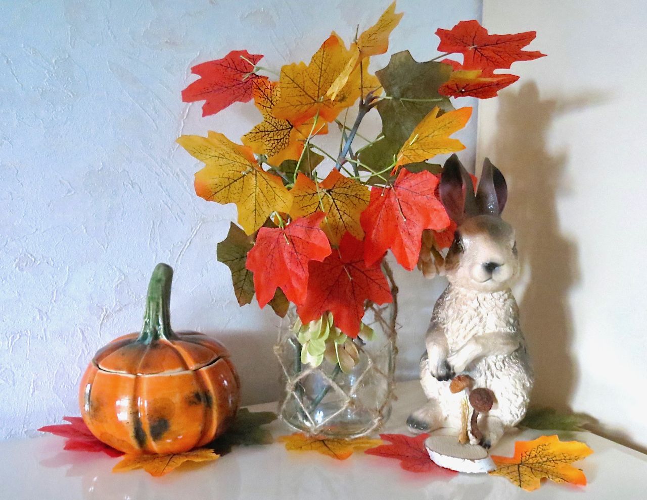 8 октября 2022 И несколько слов о том, куда я приспособила декоративные покупки. Пару недель назад пришла мне очередная рассылка от FixPrice с новинками, и там было вот это фото , которое настолько запало мне в душу и вдохновило, что на следующий же день я метнулась в магазин и приобрела изображенный на картинке фонарь. Остальное покупать не стала. Решила, как кот Матроскин, сэкономить и обойтись тем, что уже есть дома, а банку с декоративным шнуром сделать самой. Вот что из этого получилось Потом я случайно купила опят на еду и решила облагородить картинку настоящими грибами Банку из-под огурцов отмыла, "очистила от очисток" и оплела джутовой ниткой с помощью макраме буквально за пару часов С дерева сорвала несколько веточек (ни одно дерево не пострадало, так как недавно в силу погодных явлений их было повалено много) , удалила листья и вместо них приделала искусственные В дело пошла и подаренная Светиком очаровательная бутылочка А сегодня добавились еще и свечки с тыквой, купленные на выставке Мне очень нравится созданное осеннее настроение Nadinka-Blondinka, nata2017, weron и 14 других сказали спасибо Поделиться сообщением Ссылка на сообщение