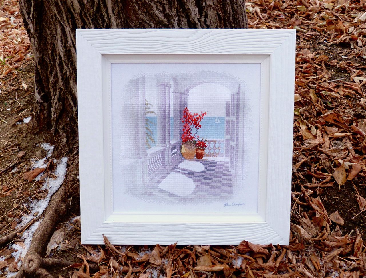 1 ноября 2022 Вспомнила, что не показала у себя в теме оформленную террасу. Лежала она у меня несколько месяцев в шкафу скромной тряпочкой, но мыслями я к ней постоянно возвращалась. И когда поняла, что сил нет, как хочу ее поскорее видеть каждый день на стене, взяла сэкономленную денежку и пошла сдаваться в багетку. Террасу видела исключительно в светлом багете, но вариантов оказалось крайне мало, а точнее -- всего один Почему-то именно со светлым пластиковым багетом и светлыми проставками в мастерской, как назло, напряженка, а дорогое оформление я не потяну. Так что оформила в то, что было в наличии, хотя в идеале я его себе представляла немного по-другому. Это, как оказалось, было полбеды. Настоящей головной болью стало категорическое нежелание готовой картины фотографироваться. Пришлось вокруг нее попрыгать (в буквальном смысле слова) и побегать, выискивая более или менее подходящий фон и освещение, в общем, позаискивать перед ней, стоя на коленях. Я и шторы ночные задергивала и фоткала на их фоне (ужас-ужас), и свешивала со шкафа покрывала и даже (прости Господи) простыни (новые) , подкладывала разные фотофоны, устанавливала мольберт на гладильную доску, да много чего еще перепробовала. Сделала больше сотни фотографий, и все в отчаянии выбросила в виртуальное мусорное ведро. Тьфу на вас еще раз! В субботу пошли со Светой "на природу", которая показала свой суровый нрав в виде собачьего холода. На фотоаппарате по неизвестной причине начали постоянно сбиваться настройки. Тычешь, тычешь в них окоченевшим пальцем, а толка никакого. А еще тут же из глаз -- слезы от холода, из носа рекой течет... Сначала хотели сфоткать на фоне небольшой кирпичной постройки, но ее стены оказались художественно измазаны краской. Потом, по-быстрому оббежав окрестные деревья, попробовали примостить картину на крючке на дереве. Крючок выпал, и терраса с дерева свалилась Поскакали в парк возле дома, попутно придирчиво оценивая попадавшиеся на пути стены. Хорошо, что народа не так много было! В парке попробовали устроить фотосессию на лавочке. В итоге все свои фотки из-за сбившихся настроек фотоаппарата пришлось снова выбросить. В общем, все усилия и мучения (в т.ч. и физические страдания) -- коту под хвост Счастье, что Света догадалась сделать несколько снимков на свой фотоаппарат, ими и воспользовалась. Спасибо тебе, дорогая Светик! Террасы сейчас, кстати, у меня дома нет. Отнесла ее в выходные на местную выставку к Дню вышивальщицы. Гало4ка, sunny981, Дикая белочка и 12 других сказали спасибо Поделиться сообщением Ссылка на сообщение