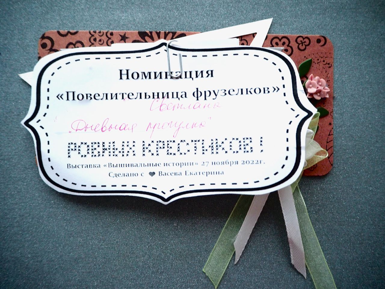 27 ноября 2022 3 часа назад, Raduga777 сказал(а): Съездила на торжественное закрытие выставки вышитых работ в ЦУМе. К сожалению, без Светы (Светик, выздоравливай! ). Натусь, спасибо, что сходила. Пришлось тебе, бедолаге, отдуваться за двоих Цитата Победителем стала вышивка с зеленым драконом, завоевавшая 1 место никогда бы не подумала..... Цитата и наши со Светой вышивки Мне дали приз "За милоту": магнитик-календарь ручной работы от спонсоров выставки , Поздравляю! Мелочь, а приятно. Цитата Свете -- как "повелительнице фрузелков" Ничего себе Приятно Цитата (наши фамилии убрала , Натусь, ты смешная Наши фамилии написаны на наших же работах, которые ты показала выше Цитата Мой Котофей, , неожиданно для меня завоевал приз от дизайнера Александры Кулаковой, Натусик, я очень рада за тебя Завтра расскажешь всё подробнее. Надежда Минск, феня777, Surik и 2 других сказали спасибо Поделиться сообщением Ссылка на сообщение