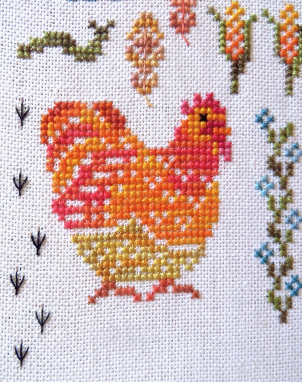 17 апреля 2023 Фото в этой части - не для процесса Сегодня понедельник, день отчета по петухам и курицам В ожидании показа Еленочкиного хвоста покажу свое небольшое продвижение. У меня появились на свет петушок, две курочки, два цыпленка (каждой курочке -- по ребятенку ) три бабочки и желтопопая пчелка Впечатления от дизайна превосходные! Продолжаю наслаждаться каждым перышком! Особенно понравились красавчик-петушок (наверняка счастливый папаша обоих цыпляток ), аппетитная тыковка и подорожник. Хочу показать, какие еще изменения я внесла (указала стрелочками): Обратите внимание, что на отшиве для превью не вышит целый элемент, зеленая травка! Не поняла наличие в оригинале двух красных крестиков на цыпленке. Если предположить, что это два глазика, то тогда они по логике должны вышиваться черным цветом, а что должны означать два крестика красного цвета, я не знаю. У цыплят двух клювиков не бывает, если, конечно, цыпленок не монстр. Еще мне не понравилось, что черные следы петушка (слева на дизайне) вышиты для обложки набора с большими протяжками, которые очень заметны. Я не поленилась закреплять ниточки, вышивая каждый след по-отдельности. Так сэкономишь 5 минут, а потом будешь сожалеть весь остаток жизни Фотографии для процесса "Куриное подворье" оленек, kreolka, nata2017 и 15 других сказали спасибо Поделиться сообщением Ссылка на сообщение