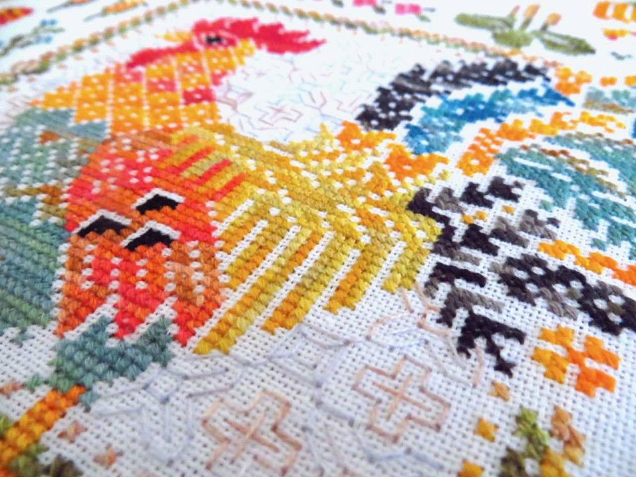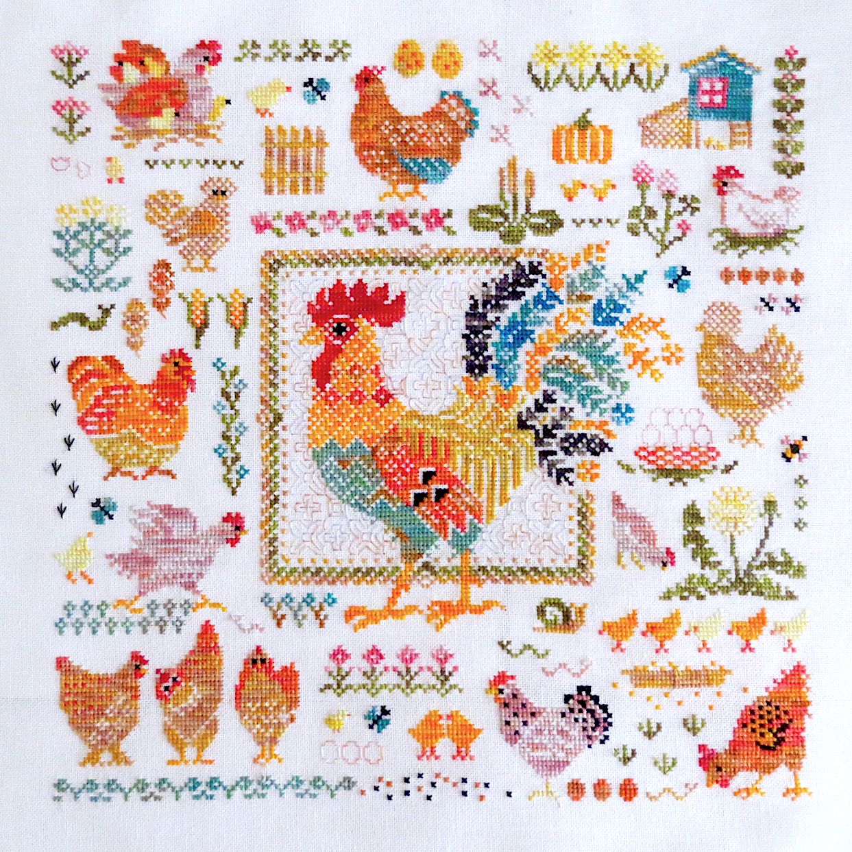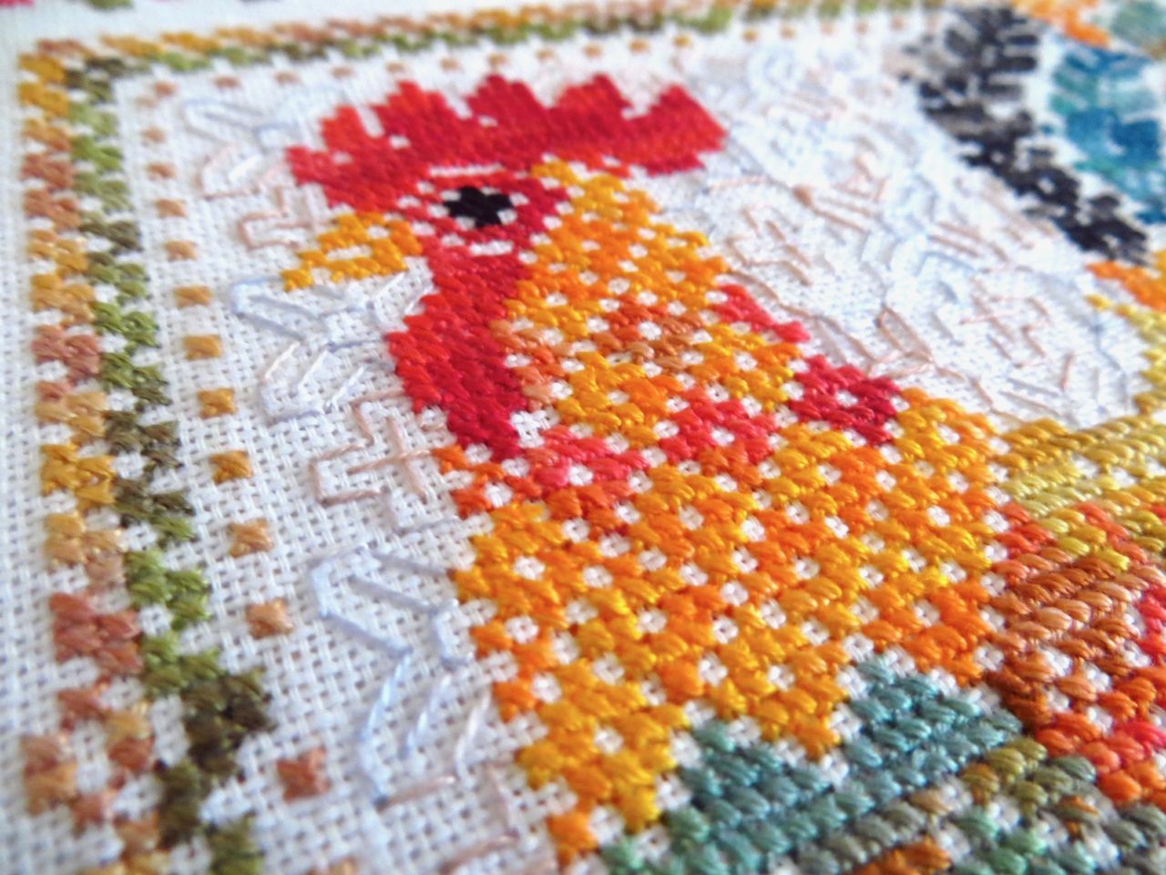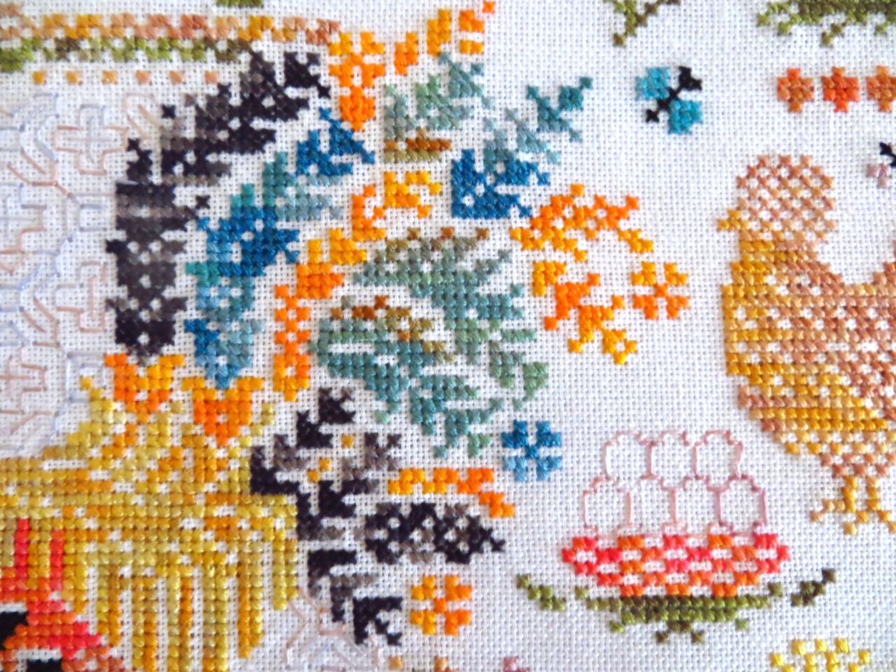 14 мая 2023 19 часов назад, феня777 сказал(а): С интересом наблюдаю за продвижением куриного подворья твоего и Еленочки, Светуля, спасибо, что нашла возможность написать Хорошего тебе отдыха! А между тем, я дошила сэмплер! Несмотря на то, что отчетный день в нашем совместнике -- по понедельникам, решила подвести итоги сегодня, в выходной, когда времени больше. Эмоции переполняют! Вышито 14 разномастных курочек и петушков, 19 действующих и 20 будущих (яйца то есть) цыплят, а также бабочки, пчёлки, червячки и разнообразная растительность. Каждая животинка — со своим характером и особенностями. Очень понравились травинки, одуванчики, подорожник. Заодно почитала о разных породах кур. Мне кажется, что вот эта — одна из пород хохлатых курочек. Точно породу затруднилась определить. Посмотрите, какие красавицы среди них водятся: русская хохлатая китайские шелковые гудан голландская белохохлая павловская польская хохлатая. Процесс доставил громадное удовольствие! Сюжет сам по себе очень добрый и уютный, а вышивать нитками ручного окрашивания — неописуемое удовольствие! Сейчас смотрю даже на обычные схемы с прицелом, можно ли в них использовать подобные нитки. Только посмотрите, какие интересные названия у ниточек для этой схемы Повторюсь, что вышивала не оригинальными нитками, а купленными в группе в ВК, специально окрашенными для этого дизайна. С одной стороны, нитки неплохие, цвета в основном соответствуют оригинальным ниткам из набора. С другой стороны, есть нюансы: нитки желтого цвета настолько бледные, что просто сливались с основой, в результате чего ими почти не вышивала. Подобрала другие из выигранных в той же группе косичек из ниток ручного окрашивания. Также пару раз заменяла один из красных цветов. Местами он был скучноват и невыразителен. Заменила также ниточку, предназначавшуюся для вышивки фона (показалась толстоватой) хотя она по толщине полностью соответствовала оригинальному Perle № 8. Плюсом считаю то, что черные нитки оказались тоже секционного окрашивания в отличие от оригинального набора, где черный — это просто чёрный. Ну и экономия средств, конечно же, имеет для меня немаловажное значение. В запасе есть еще наборы и схемы «Совиного леса». Подумаю над тем, покупать ли все же оригинальные нитки, так как ПНК в той группе в ВК девушка больше не красит. С недавних пор на комбинате «ПНК им. Кирова» используют другой хлопок, что отрицательно сказалось на качестве мулине. А мулине Luca-S, которое окрашивает сейчас хозяйка группы, получается дороже. Оформила сэмплер, как и планировала, в наволочку для подушки. Ткань покупала заранее. Шила вчера (не без косяков, конечно), фотографировала сегодня. С удивлением обнаружила, что это первая моя наволочка с вышивкой. Вот они, мои любимые курочки. Хвост у центрального петуха такой роскошный, что затмил всех вышитых до этого момента петушков и куриц Фотографии для процесса Фотографии не для процесса Примеряла подушку на диван , но не очень понравилось. Есть у меня дома любимое местечко, своеобразный ретро-уголок -- старый мамин сундук, покрытый половичками, сотканными моей двоюродной бабушкой. Тут же -- балалайка от одной бабушки и старинные прялка и радио -- от другой. Местечко крошечное, но очень уютное. Вот для этого уголка и предназначена была подушка с курочками Всем добра, мира и уютных курочек!