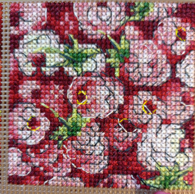 17 июля 2023 За выходные вышила-таки малину, хотя сердце, честно говоря, у меня к ней лежало не совсем (не для гаечки). Бэк местами исправила, ягоды вместо неаппетитно-зелёных у меня стали светло-розовыми. Видеть собранную малину зелёной не хочу даже вышитой. Раньше, когда у родителей был садовый участок, малину собирала и поедала с огромным удовольствием. Зеленые ягоды даже с куста сорвать сложно. А вот нежно-розовые иногда попадались в мою баночку-собирушку (так посуду для сбора ягод называла ещё моя бабушка). Мулине подобрала снова из китайских аналогов. Совпадение не на 100% точное, но старалась подобрать как можно ближе к оригиналу, а для одного символа даже бленд сочинила, чтобы получилось правдоподобнее. Светлый бэк, кстати, и на черешне, и на малине вышивается вовсе не белыми нитками, как можно было бы подумать, а светло-розовыми. Вместо серых ниток для бэка снова взяла чёрные. Мне кажется, так ягодки стали чуть выразительнее. В общем, сделала всё, что могла. Оля Гало4ка, спасибо за ценные советы и участие, пусть и косвенное, в моём процессе! Совместное фото (не для гаечки). Жду следующую схему в СО. Хочется поскорее увидеть арбузик, а ещё интереснее узнать то, какую схему дизайнер приготовила для нас четвёртой. Если она будет не в красно-розовой гамме, а, скажем, в жёлтой или синей, это будет удар под дых (как говорят англичане, The black sheep in the family, или «В каждом стаде есть своя чёрная овца») Кстати, дизайнер вроде бы собирается посетить наш фестиваль «ВышФест» в Екатеринбурге через пару недель. Фотографии для процесса. Татьяна Шарова, "Сладкая малина". Превью оленек, Хозяйка смешных зверей, АлёNка и 15 других сказали спасибо Поделиться сообщением Ссылка на сообщение
