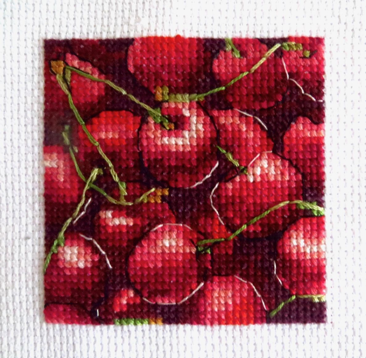 17 июля 2023 16 часов назад, Raduga777 сказал(а): Еще совсем забыла выпороть непонятные буро-зеленые крестики в самом низу у черешенек, видимо, призванные олицетворять черенок, но забыла. Зачем они там? Вышила автоматически, не подумав. Хочу зашить их в цвет черешни. На черешне ничего лишнего не бросается в глаза, вполне аппетитно. Пошла сравнивать. Raduga777, 19199707770, Tata44 и 1 другой сказали спасибо Поделиться сообщением Ссылка на сообщение