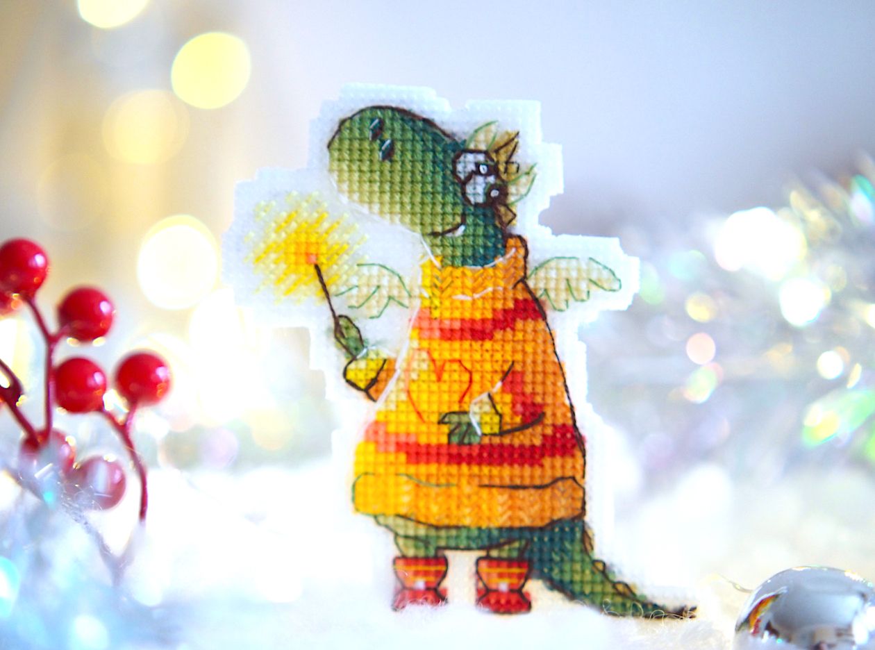 23 января 2024 У меня неожиданно появился на свет Дракоша! Если бы ещё пару месяцев назад мне сказали, что я буду вышивать дракона, я бы только рассмеялась. Тема совершенно не моя, слабости к этим животинкам никогда не питала, восторгов по поводу множащихся в геометрической прогрессии перед Новым годом дизайнерских схем с драконами всех мастей и окрасов не испытывала. И вдруг… я неожиданно, как всегда, пролистывая в обед ленту в ВК, увидела ЕГО! Это милейшее, добрейшее и по-хорошему наивнейшее существо с волшебной палочкой-огоньком сразу растопило моё сердечко! Тут же приобрела схему, но вышить удалось только на прошлой неделе. Ну ничего, утешаю себя тем, что Новый год по восточному календарю наступает 10 февраля. Дракошенька вышит на пластике, сзади — фетр. Ниточки — снова китайский аналог DMC. Не стала вышивать светло-зелёные фрузелки на мордашке и хвостике (это фото автора: ) Почему-то показалось, что они не будут смотреться. Зато очень понравился дизайн свитерка. А эти ангельские прозрачные крылышки! Получился умилительный, очаровательный и невероятно обаятельный символ нового года ростиком 10 см! Поставила его на деревянную подставку. Волшебная палочка Дракошеньки, кстати, уже сработала: я получила сертификат от «Рукоделова» на 500 руб., снова войдя в тройку победителей в фотоконкурсе — на этот раз уже зимнем. Фотографии для процесса. Алина Игнатьева (группа "Моя вышивка" #51162). "Дракоша с огоньком". Превью: Sky026, svetlana62, nata2017 и 16 других сказали спасибо Поделиться сообщением Ссылка на сообщение