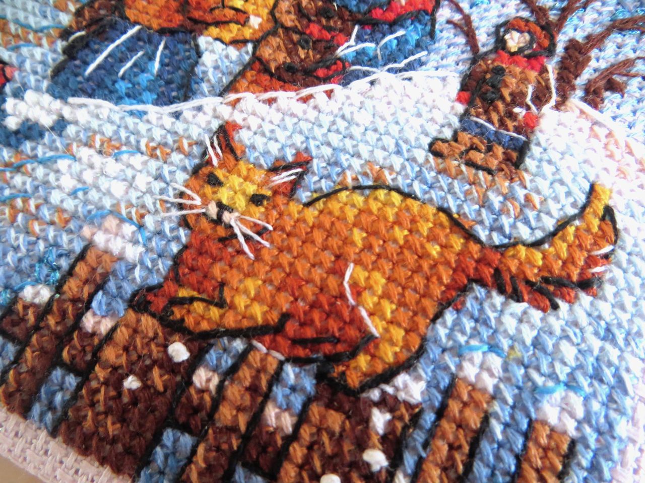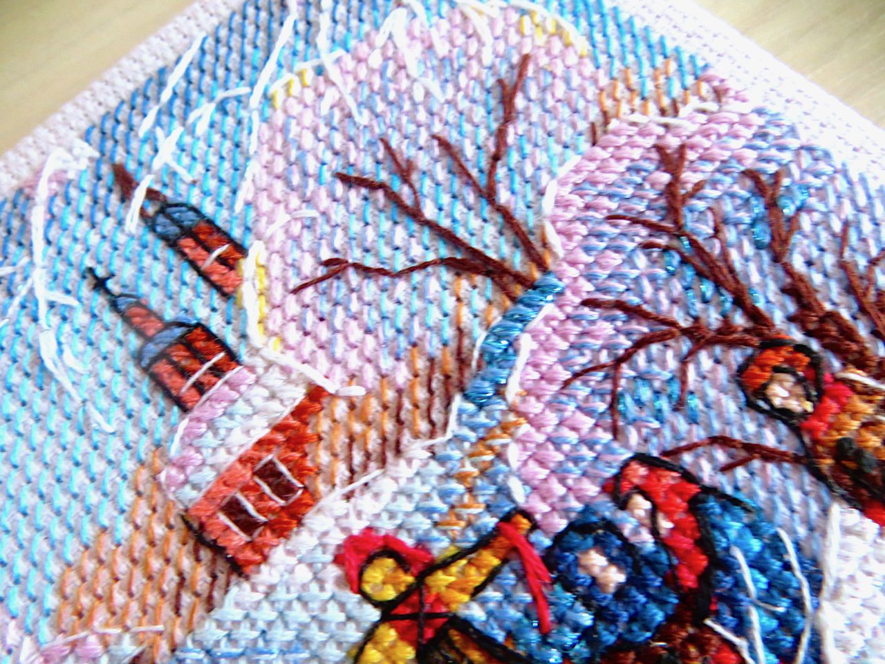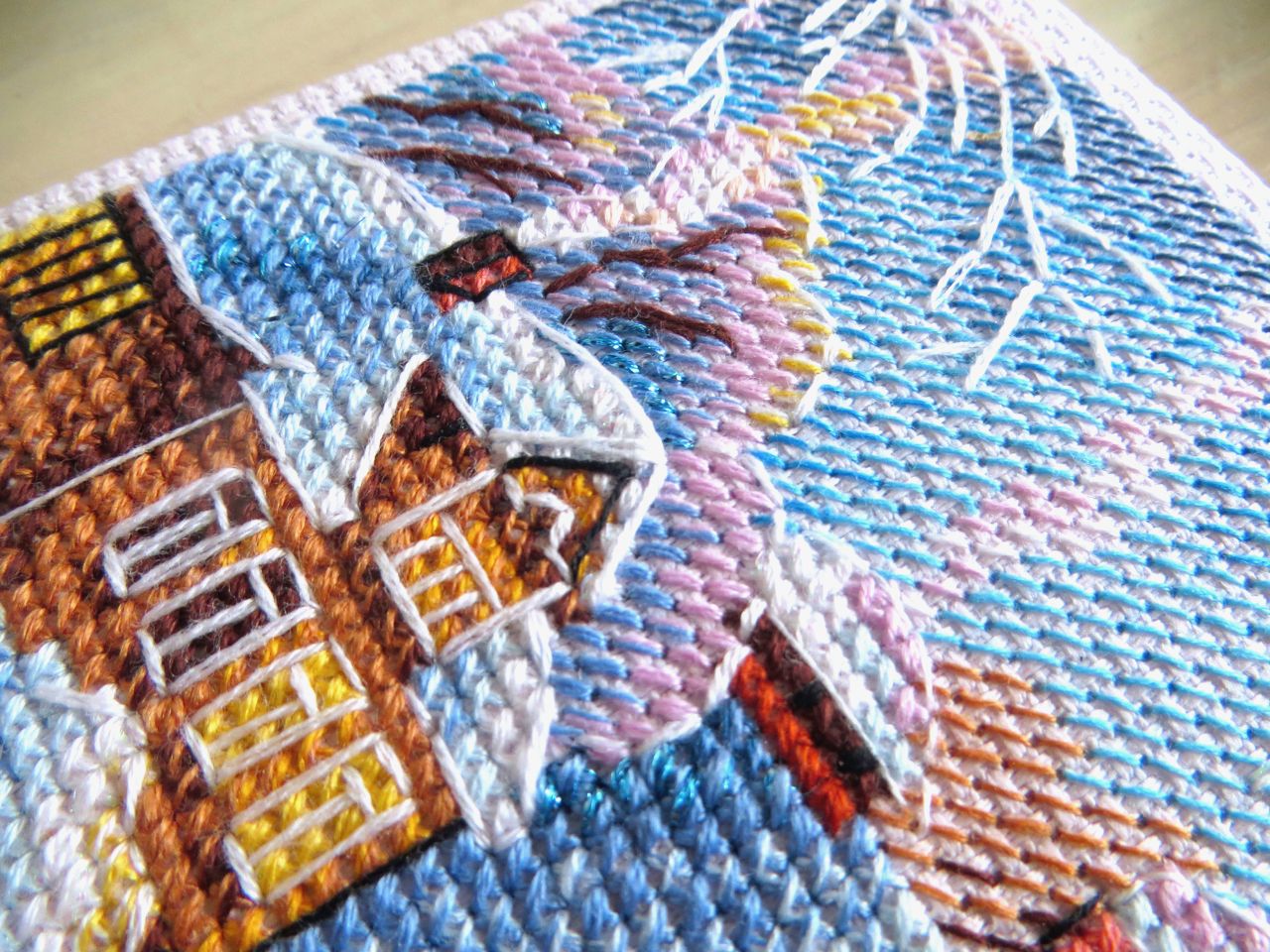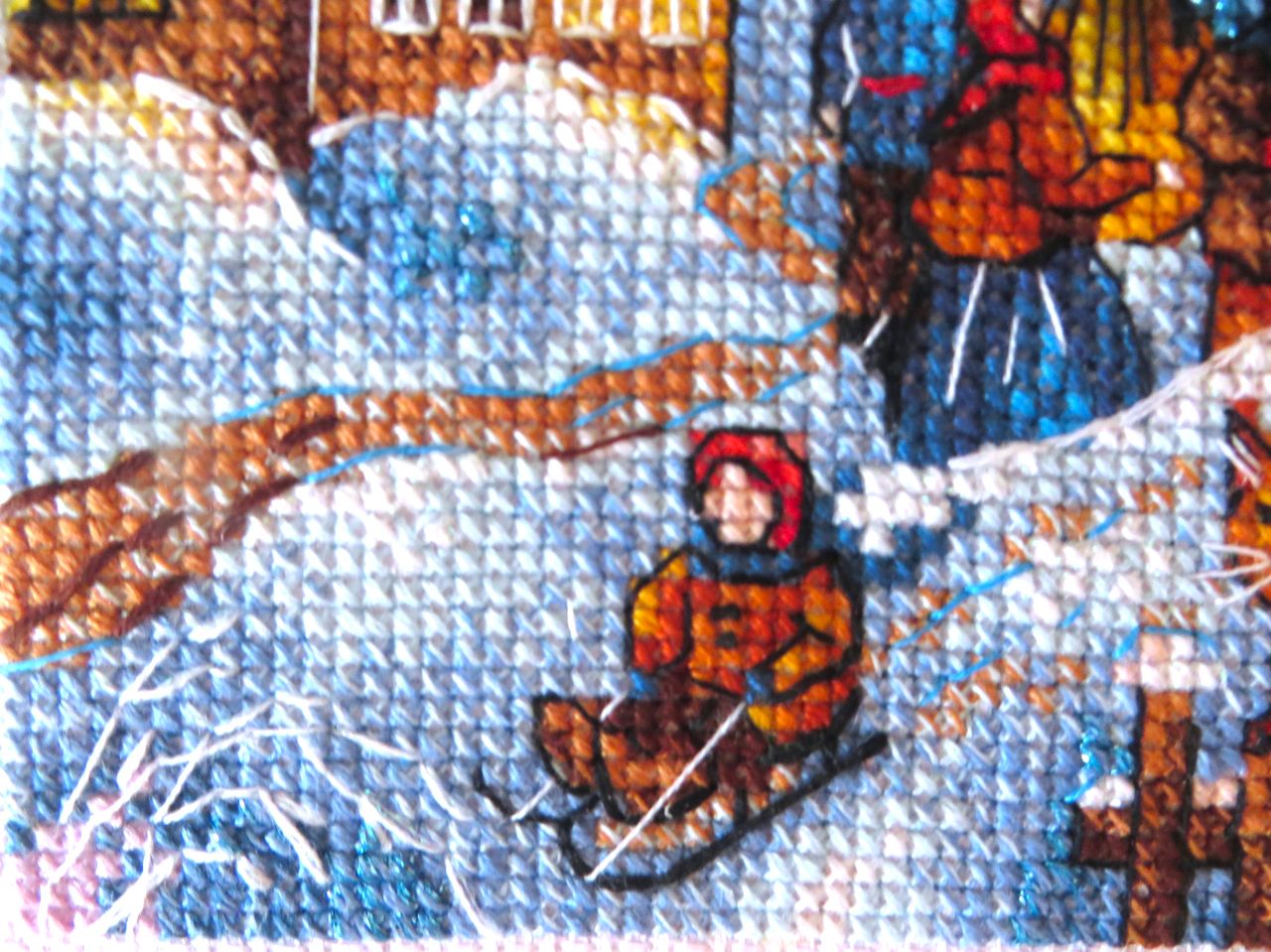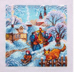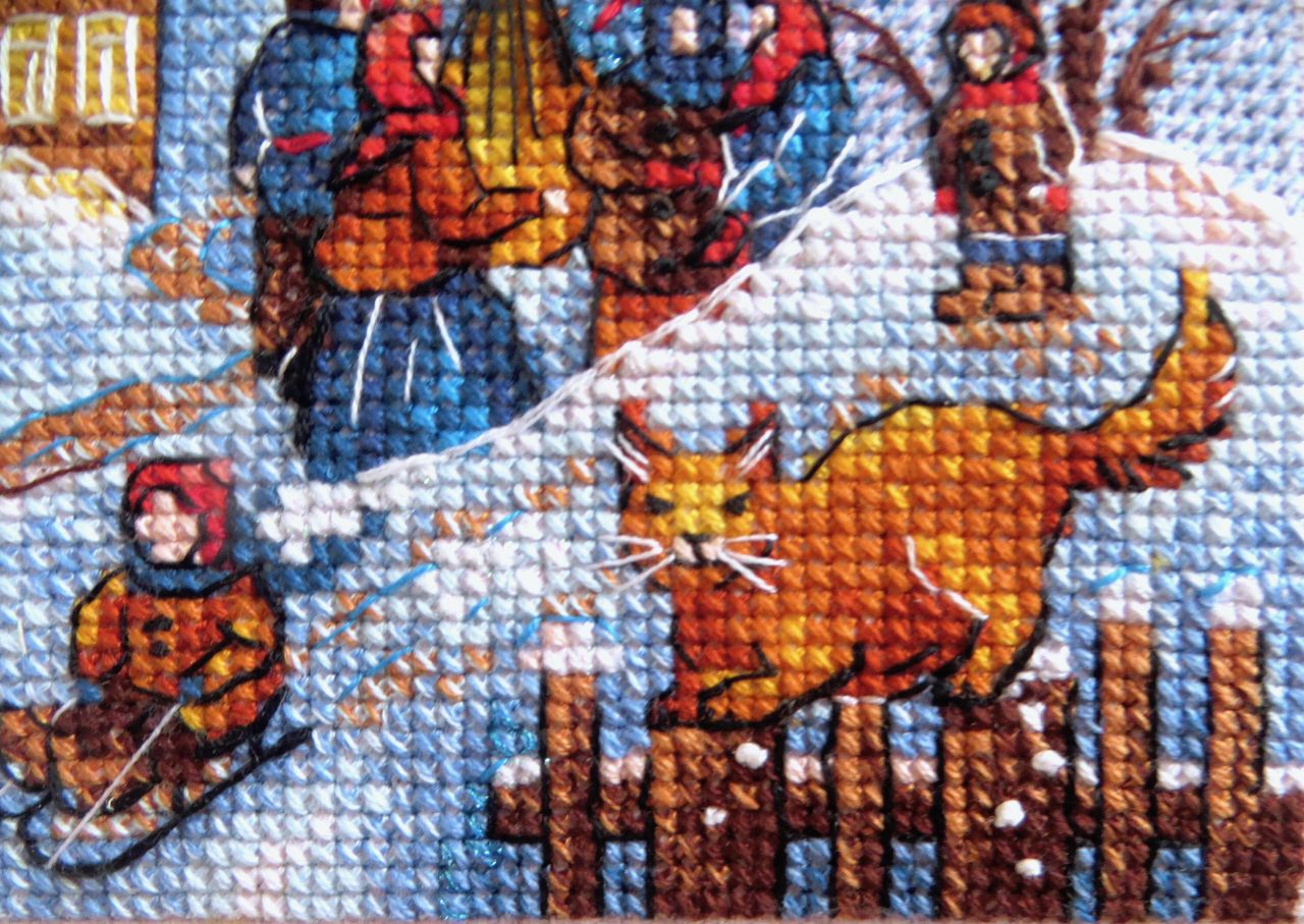 5 апреля 2024 31.03.2024 в 21:02, Raduga777 сказал(а): Бэкала я, бэкала и наконец добэкала! Мечтала к Масленице закончить небольшую, вышивку, но не тут-то было! За неделю до праздника выудила из закромов наборчик «Масленица у ворот!» (производитель — «Двое из ларца»). Думала, что успею хотя бы к концу блинной недели, но куда там! Сам набор оформлен довольно добротно: плотная картонная упаковка, красивое фото (правда, не отшива, а скрина). Схема отпечатана на плотной бумаге, но то, что с обратной стороны ключ напечатан бэк, просто убивает. Мне приспичило начать в выходные, и бежать куда-то делать копию схемы не хотелось. Ключ мне удобнее отрезать, так как схему я для удобства сгибаю. И вот пришлось откромсать ключ, с обратной стороны которого была схема с бэком, а потом, когда настала очередь бэка, приклеивать всё это богатство обратно скотчем. Ставлю жирный минус за это. Канва — Gamma 14 каунта светло-сиреневого цвета, в меру жесткая, вышивать удобно, колом не стоит, дырочки крахмалом не забиты, как у некоторых. Однако канва оказалась не совсем равномерной: вышивка должна была быть размером 11,5х11,5 см, но получился недоквадрат, две стороны которого были больше двух других сторон на 7 мм Мулине — ПНК им. Кирова 21 цвета. Два цвета были плохого качества: рвались, казалось, от одного взгляда на них. На некоторых нитках были катышки. Сами ниточки тусклые, жиденькие. Кроме чистых цветов — 10 блендов. Также использовались 2 цвета металлизированной нити (вроде бы Kreinik), которые в процессе потрясающе блестели и переливались. Синий металлик в результате на картинке жвивую заметен, а вот перламутрового совсем не видно. Надо ли говорить, что на фотографиях блеск не виден совсем! Обидно, ведь было так красиво! Рамочку купила на маркетплейсе за 200 руб. Покрасила её в белый цвет и затонировала синим. Стекло не стала вставлять, так как картинка предназначена для сменной экспозиции. По периметру пришлось дошивать 2-3 ряда (напомню, что квадрат оказался вовсе не квадратом). Вроде справилась. Мне очень нравится сюжет, живой и динамичный! Это настоящая сценка из жизни русской деревеньки, празднующей Масленицу. На небольшом кусочке канвы разместились и дома, и церквушка, и чучело Масленицы, а также три беседующие кумушки, один мужичок, два катающихся с горки ребятенка и крупным планом кот! Судя по дыму столбом, на улице ещё морозец. Как всё это удалось разместить — загадка! Деревца, вышитые полукрестом интересными блендами, выглядят кружевными. Крестиком вышивала 5 вечеров, а бэкала шесть! И ни конца и ни края ему, разноцветному бэку, не было видно! Я думала, что умом тронусь, пока его при закончу. Наконец он был побеждён, и я смогла полюбоваться результатом (если что, это я не себе, любимой, пою оды, а дизайнеру). Мне безумно нравится то, что получилось! Я и так неровно дышу к деревенским сюжетам, а тут всё — в самое сердечко: и шумный праздник, и весёлая, уютная деревенька, и горка с рыжим котиком! У котика, кстати, чуть подправила хвостик и ушки, иначе он мне напоминал белочку. И усики вышила белыми нитками (схемой для половины усов предполагался чёрный цвет — см. превью). Очень душевный, родной сюжет! Как ни старалась сфоткать вышивку под разными углами, чтобы словить блеск металлика, но это не удалось Фотографии для процесса: «Двое из ларца», «Масленица у ворот!» А-031 , счетный крест. Превью: Кстати, о н