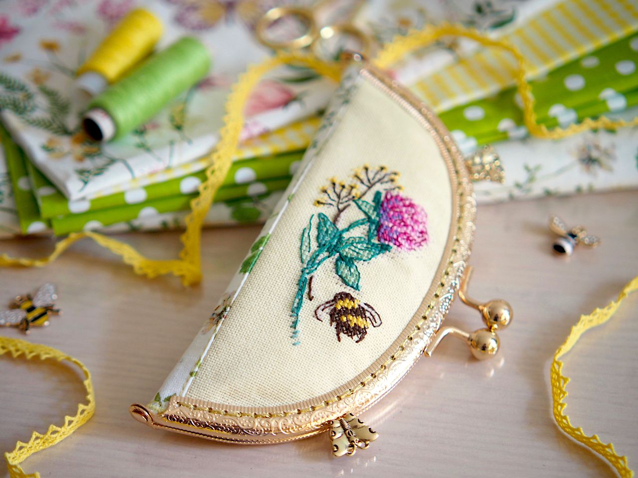 1 июля 2024 В прошлом месяце нечаянно сшила два органайзера Участвовала в совместном пошиве на основе схемы Натальи Юркевич. Цель -- сшить органайзер с фермуаром. Схемой упитанного шмелика и сочного клевера была настолько очарована, что вышила дважды , так как хотелось посмотреть, как будет смотреться отшив на равномерке разных цветов (оба кусочка красила сама уже давненько, и наконец-то они пригодились). Это на ткани, окрашенной луком: (про второй вариант расскажу ниже). Лимонный цвет канвы немного перевран фотоаппаратом. Решила не останавливаться на вышитом двойном шмелике и оформить тоже дважды. Первый вариант получился солнечным и лучезарным. Подготовка: Органайзером с золотистым фермуаром очень хотелось передать атмосферу лета, залитого солнышком луга и умиротворённого жужжания пчелок. Даже ткань, как уже заметила в процессе пошива, оказалась с изображением клевера. На задней части органайзера стежку выполнила в виде цветочка. На обратной стороне органайзера – тематический шармик в виде пчёлки. На фермуар посадила двух бабочек: они «дырку на стене закрывают маскируют отверстия для цепочки . Немного изменила вид игольницы (для наглядности привожу органайзер автора проекта: ), пришила две пуговицы (на них можно вешать ниточки) и смайлик-пуговичку просто для настроения. Фермуар к ткани пришивала золотистым металликом (кто шил металликом, тот меня поймёт ). Несмотря на небольшой размер (16,5х7 см в сложенном виде), органайзер вполне функциональный и вмещает всё необходимое для небольшого процесса: ножницы, бобинки, игольницу, магнитик, нитевдеватель и другие нужные в вышивальном хозяйстве вещицы. Это моя первая в жизни вещица, сшитая с фермуаром. Фото для процесса. Наталья Юркевич. "Сочный шмель", счетный крест. Превью: (поставила свое фото, так как превью как такового нет). irisheckin, Dear_feya, Надежда Минск и 23 других сказали спасибо Поделиться сообщением Ссылка на сообщение