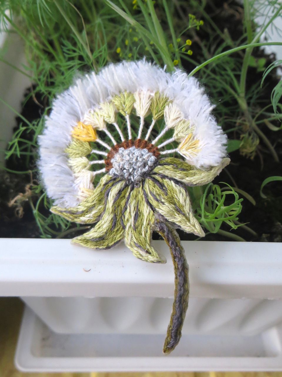 6 июля 2024 Итак, брошь "Одуван" Вышивала в новой для себя технике. Гладью вышивала второй раз в жизни, если не считать уроков труда в школе Помимо гладьевых, используется еще ряд интересных стежков. Стебелек получается очень рельефным, возвышающимся над поверхностью. На фетре тоже вышивала впервые, опять-таки, если не считать буцилловские новогодние сапожки, но в данном случае фетр нужно было запялить в пяльцы. Примечательно, что иголочка входит в фетр с интересным скрипом. Очень медитативно получается! Было страшно несколько раз: когда вырезала фетр для создания лучиков и особенно когда вырезала из фетра уже готовый одуван и боялась ножницами задеть стежки. А вот "стрижка" очень понравилась! Фото "до" (одуван растрепанный, непричесанный) и "после" -- уже с модельной стрижкой Очень нравятся разноцветные кисти и беленькая пушистая "шапочка" Конечно, есть недочеты, которые учту (хочу еще одуваны в другой цветовой гамме), но в целом очень довольна, что у меня есть такой хорошенький одуванчик ростиком 7,5 см В брошь оформлю в понедельник, когда получу булавки для задника. Несмотря на поздний час, устроила в десятом часу вечера фотосессию на скорую руку Интересно, можно ли завести процесс? Светлана Казаченко. Брошь "Одуванчик" (гладь, декоративные стежки). Превью: Фото для процесса: nogres, murgatroit, Забава_ и 24 других сказали спасибо Поделиться сообщением Ссылка на сообщение
