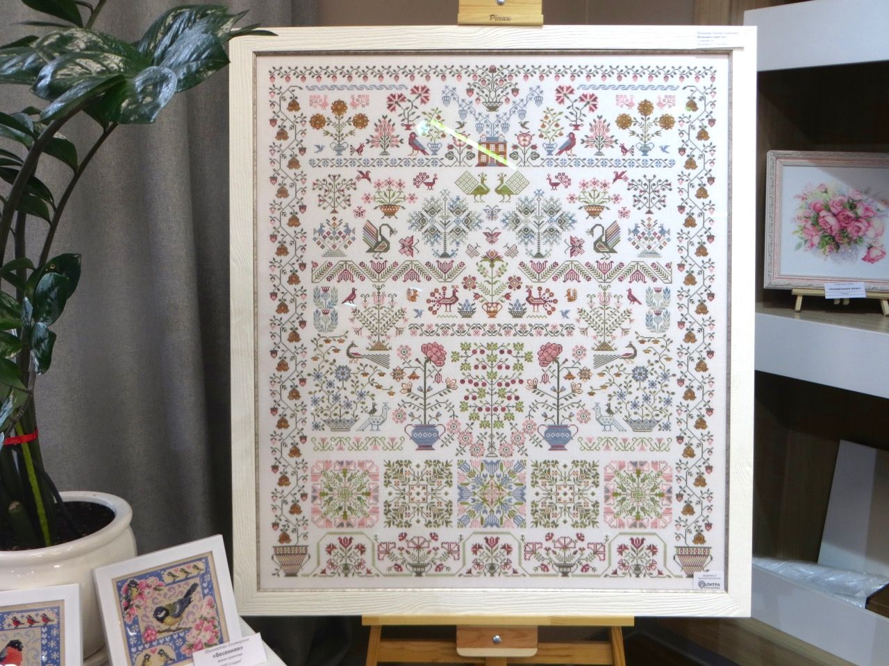 18 марта 31 минуту назад, makalicha1970 сказал(а): Спасибо, Наташа, что показала его в полный рост! Мне он очень нравился, и даже думала над покупкой. Ника, с этим сэмплером связано моё самое первое впечатление от этой выставки! Дело в том, что он расположен так, что, войдя в помещение, упираешься взглядом сразу в него! Я, едва переступив порог, просто остолбенела. Была настолько потрясена и ошеломлена его размером, что стояла несколько минут, осознавая происшедшее Размер в длину не меньше метра. Я специально сделала снимки ещё и из самого дальнего угла помещения, чтобы было видно, насколько он гигантский по сравнению с другими вышивками, но всё же на фотографии этот эффект не так впечатляет, как вживую. Глянула на сайте "Совиного леса" -- там дизайнеры деликатным манером предусмотрительно рекомендуют вышивать на 40-м каунте, чтоб, значит, вышивальщицы не так остро реагировали и за валерьянку не хватались Не, ну красиво, конечно... И вышито за какой-то фантастический срок. Наверное, это надо полностью только на нём сконцентрироваться. Была уверена, что сэмплер войдёт в число призёров, но этого не произошло. И причина всем давно понятна: 42 минуты назад, makalicha1970 сказал(а): и это опять многоцветки Хотя "ЭстЭ" на этот раз не было. А бутылочки, несомненно, хороши! Жаль, что незамеченной осталась изумительная скатерть от "Le Bonheur des dames" . Вот такая https://www.bonheurdesdames.com/en/6032-1416-tablecloth-flower-pots-and-yellow-grid.html#/537-dimensions-140_x_140 Она лежала в кроватке в свёрнутом состоянии с табличкой "Руками не трогать". 50 минут назад, makalicha1970 сказал(а): А тема была связана с цветами, я как-то не очень поняла ее... Я вот тоже не сразу поняла, что, оказывается, по согласованию, можно было принести вышивки на тему материнства и кухонной утвари. АлёNка, Tata44, makalicha1970 и 4 других сказали спасибо Поделиться сообщением Ссылка на сообщение