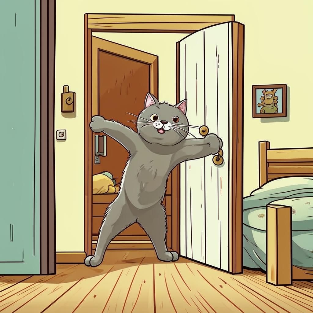3 июня 44 минуты назад, Raduga777 сказал(а): Попросила ИИ создать картинку на эту тему Запомнилось видео, где из-под закрытой двери просовывается лапа и пружинным ограничителем для двери делает громкий "бздынь" в дверь спящего хозяина. Lorans, Надежда Минск, Juliay и 3 других сказали спасибо Поделиться сообщением Ссылка на сообщение